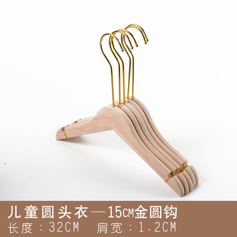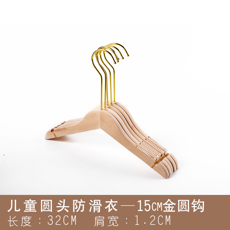 服装店实木衣架儿童女装衣挂原木本色无油漆厚款金钩木质衣撑裤挂