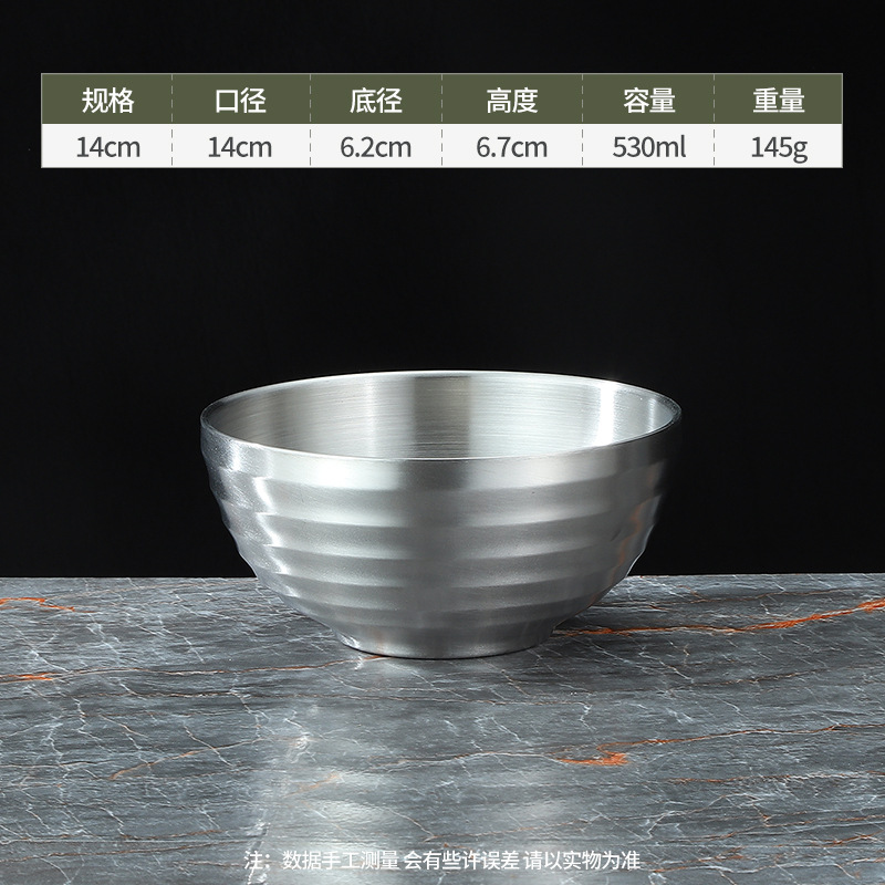 304不锈钢螺纹碗 双层儿童隔热米饭碗家用食堂汤面碗拉面碗斗笠碗