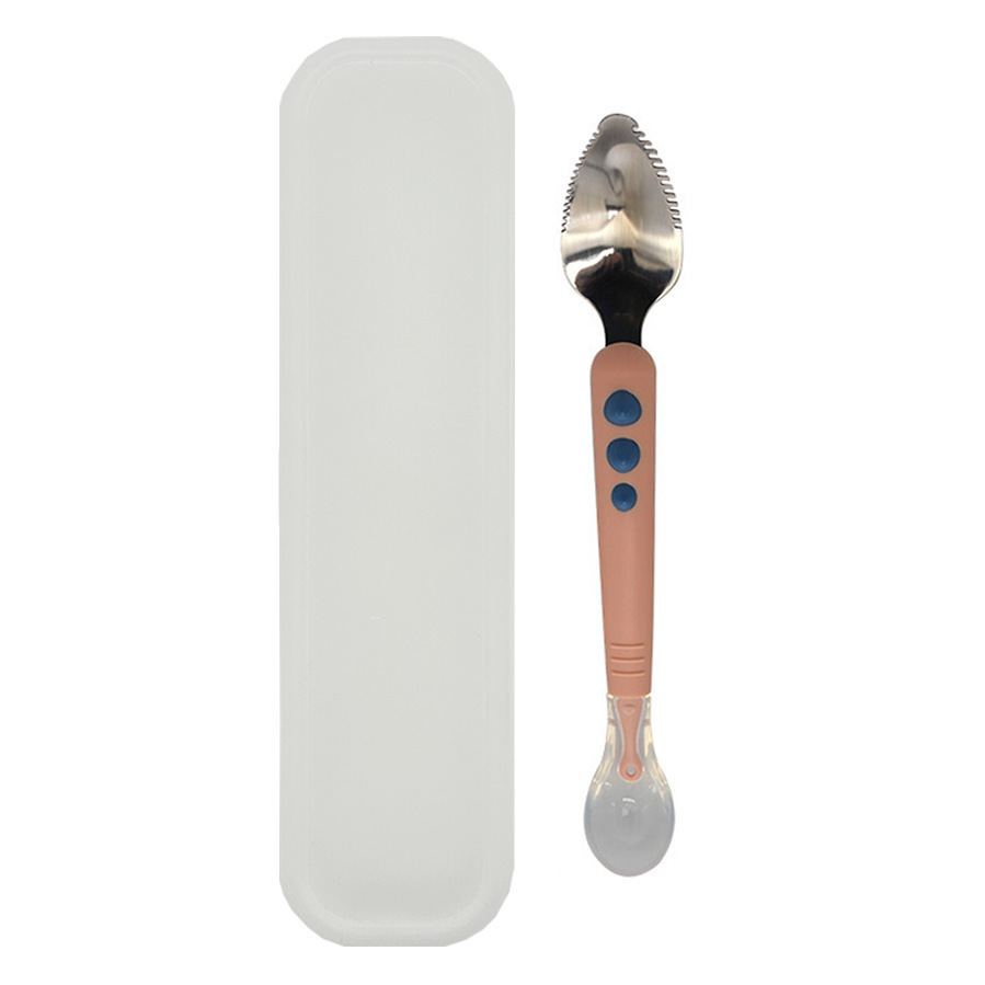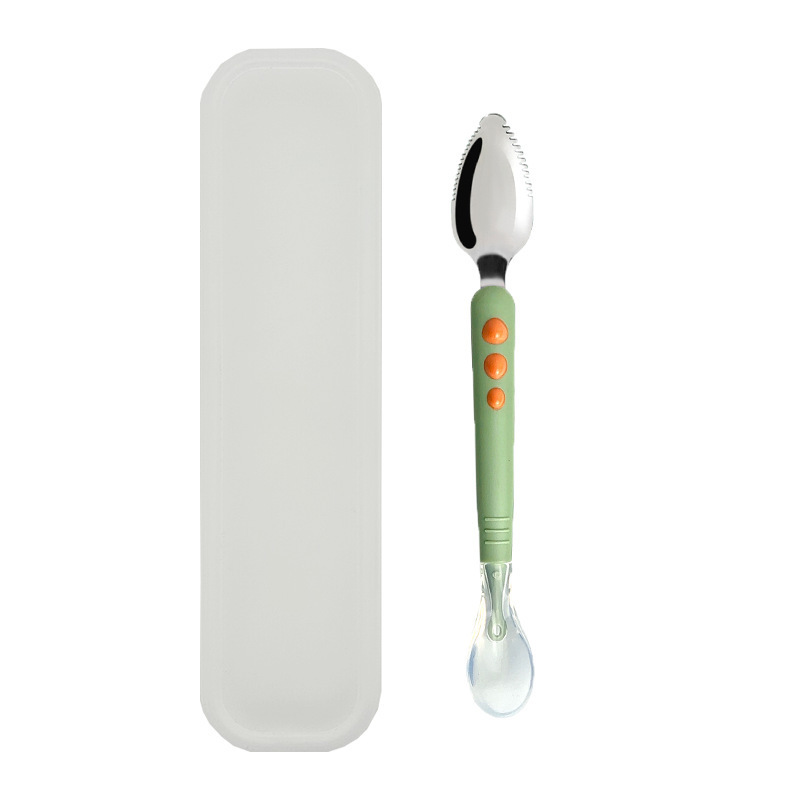 婴儿水果刮泥勺子宝宝勺不锈钢双头食品级水果辅食硅胶儿童餐具批