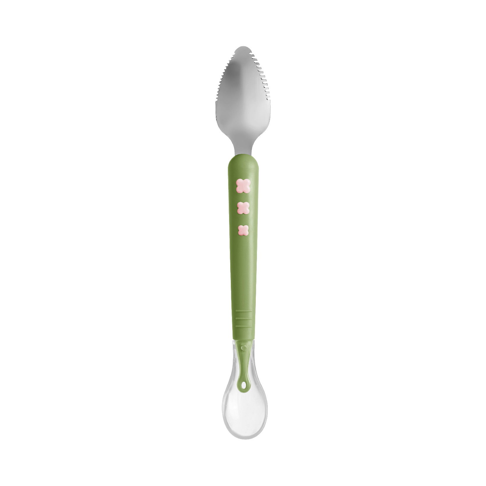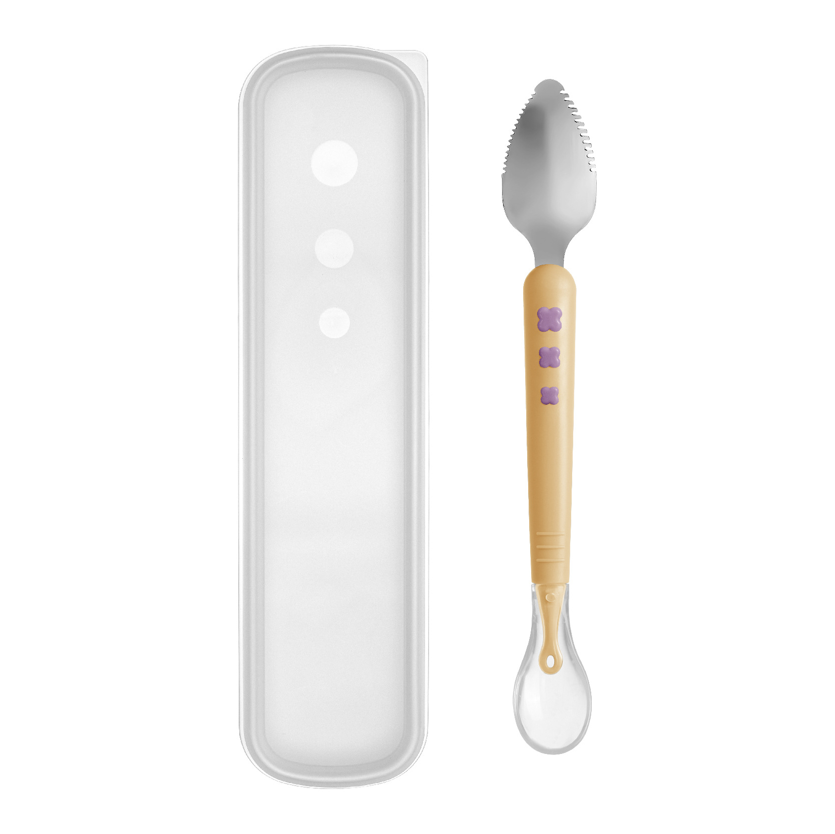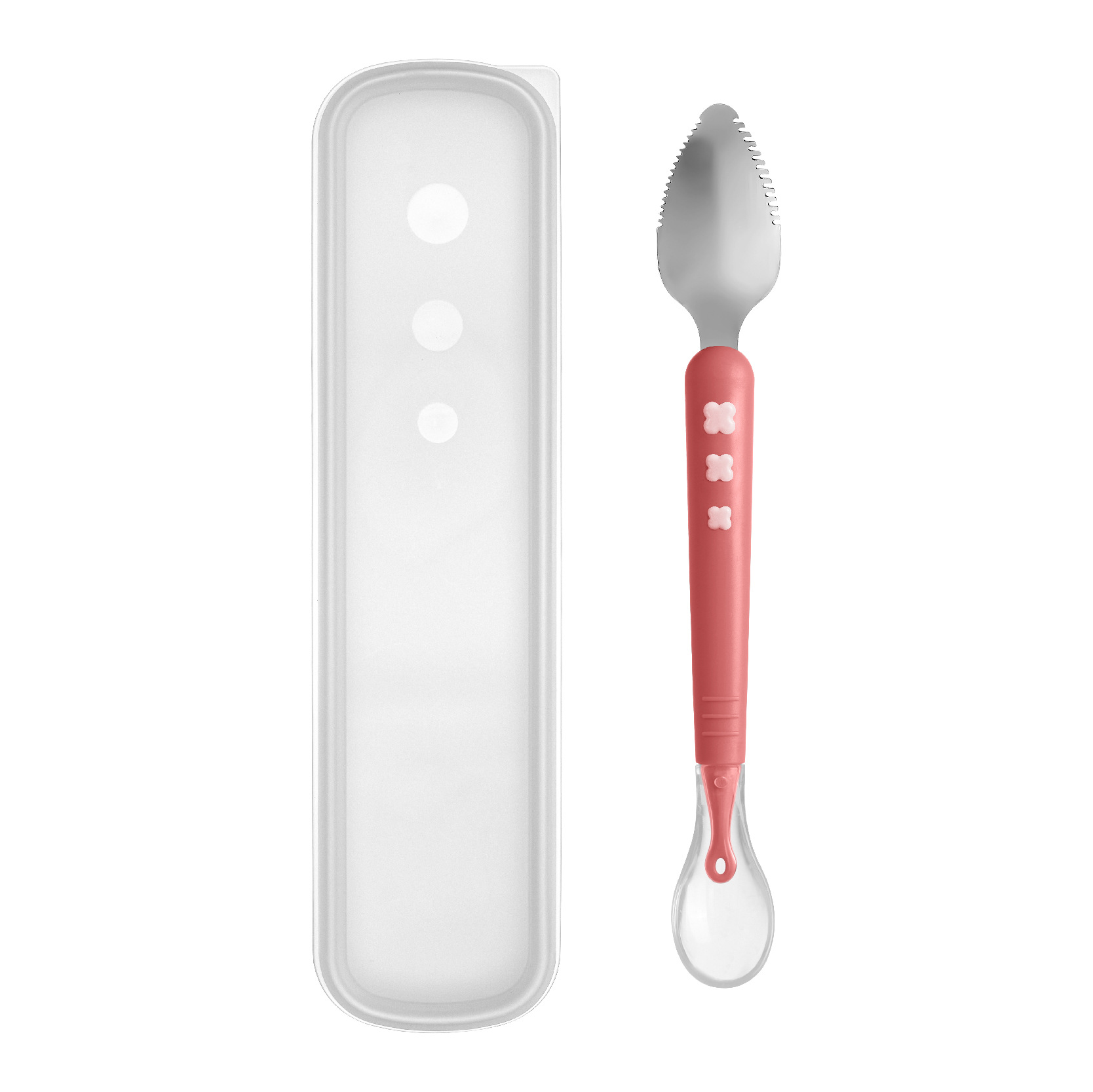 婴童双头水果刮泥勺 304 316不锈钢果泥勺 硅胶勺 含收纳盒辅食勺