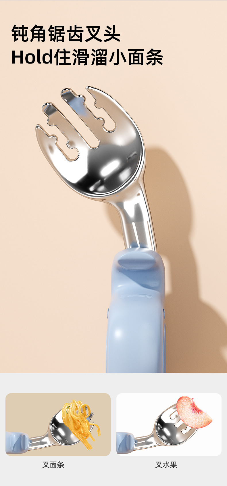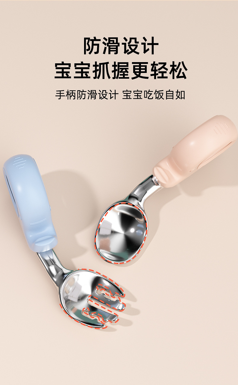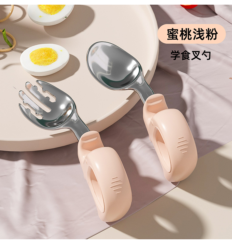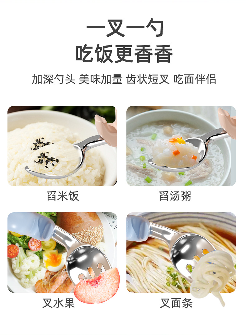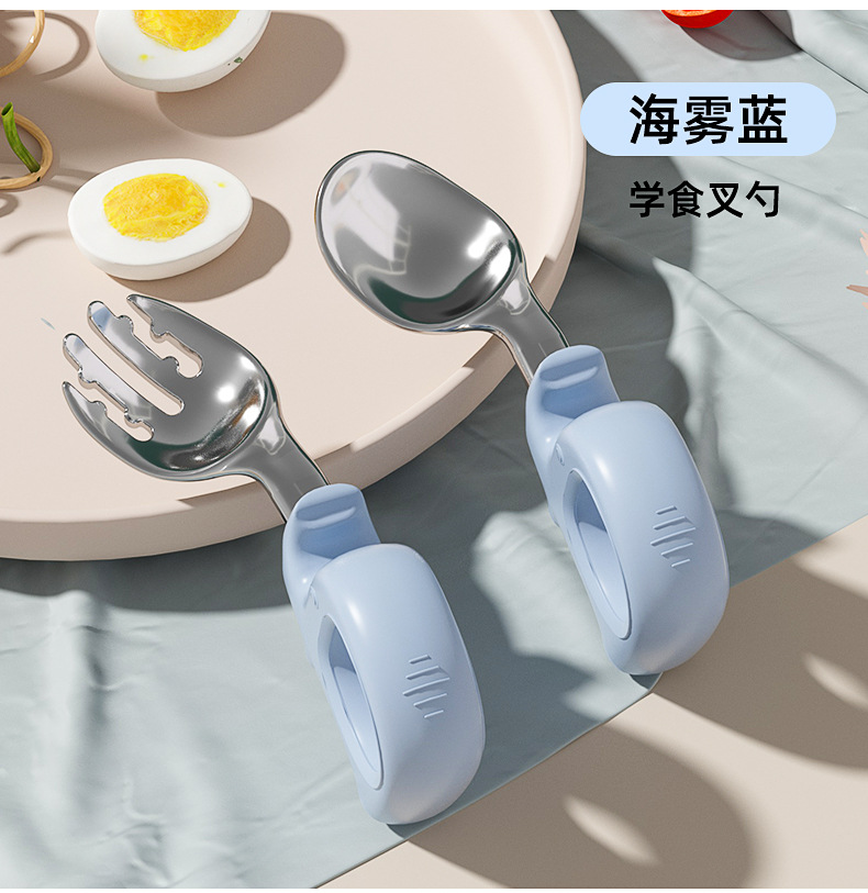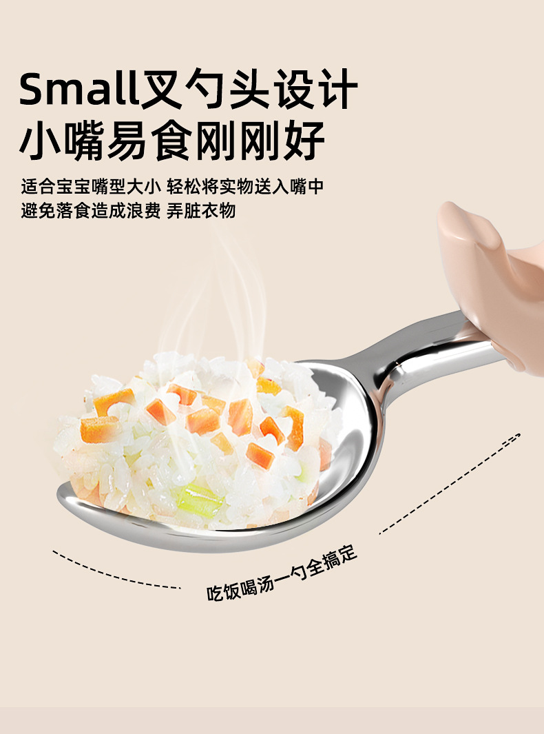 宝宝自主进食辅食勺子一岁婴儿学吃饭训练儿童不锈钢短柄叉勺