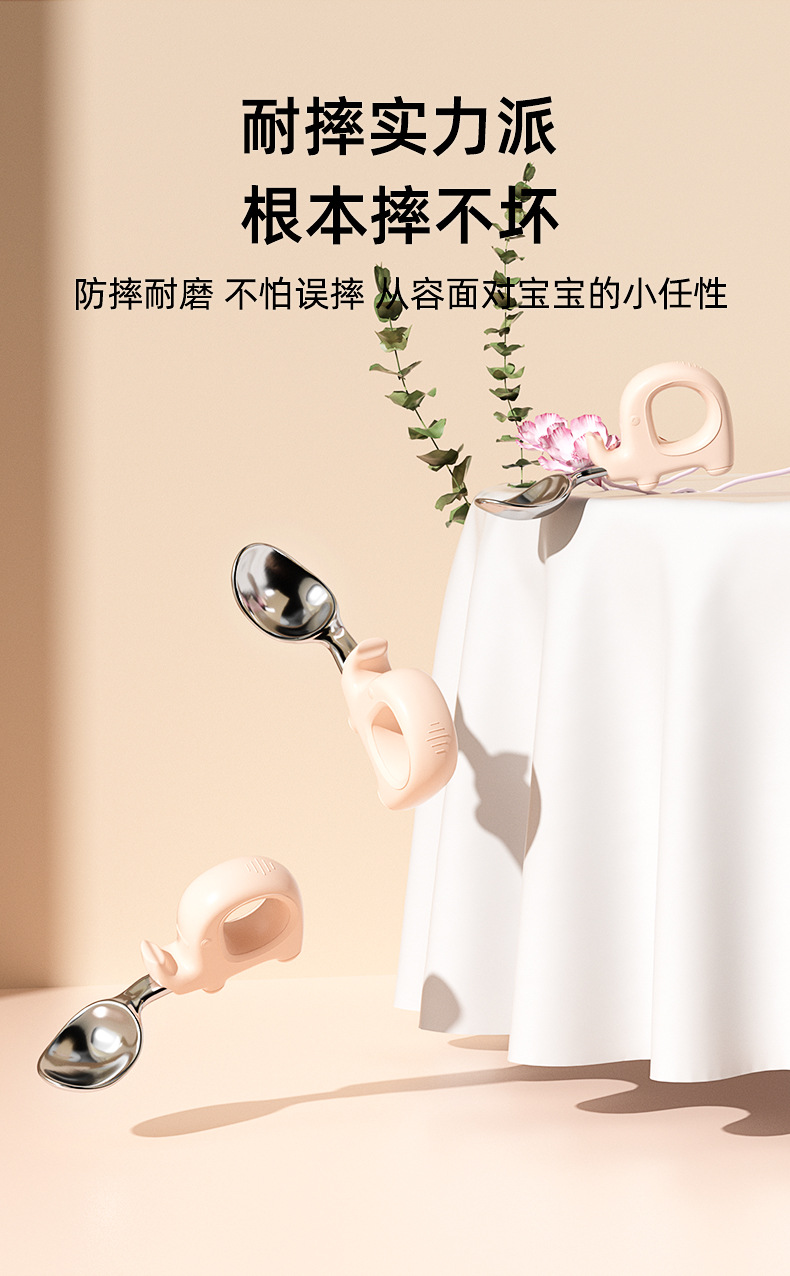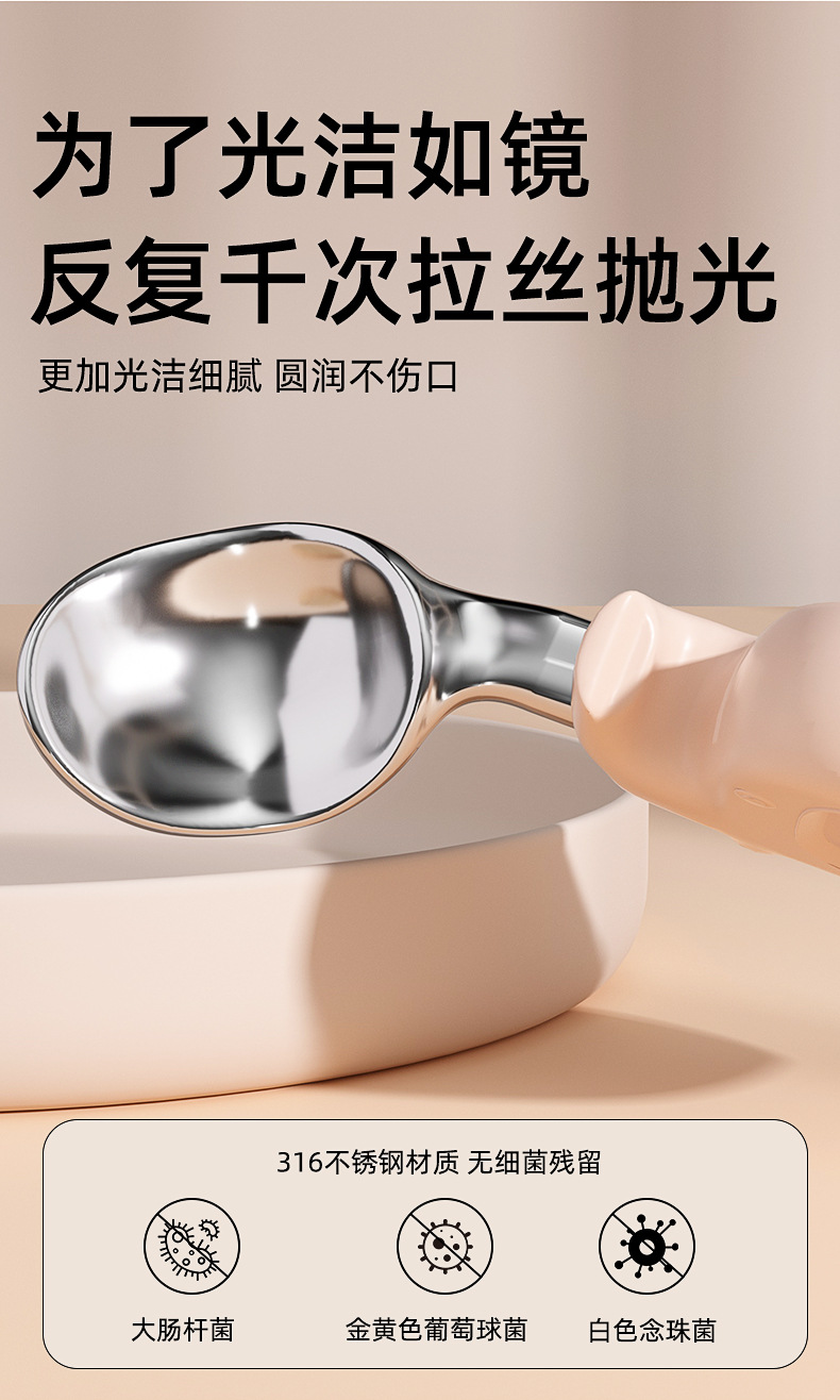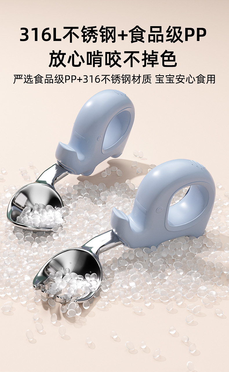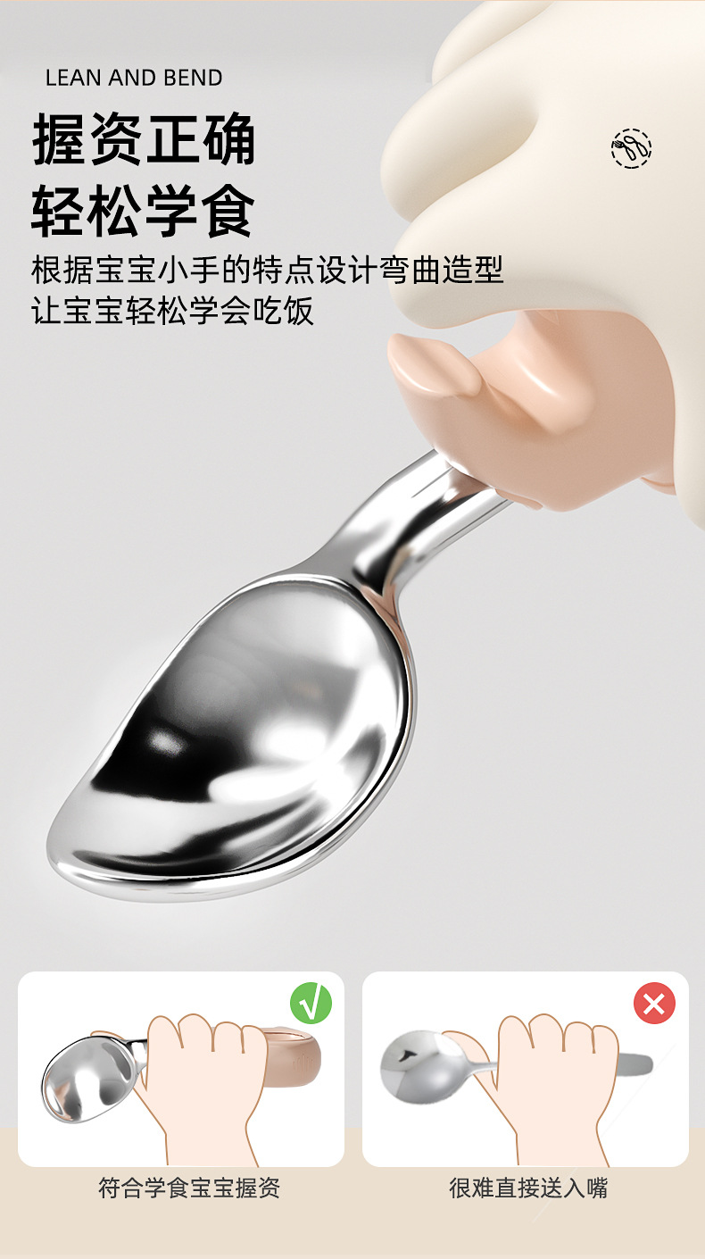 宝宝自主进食辅食勺子一岁婴儿学吃饭训练儿童不锈钢短柄叉勺