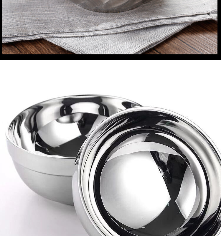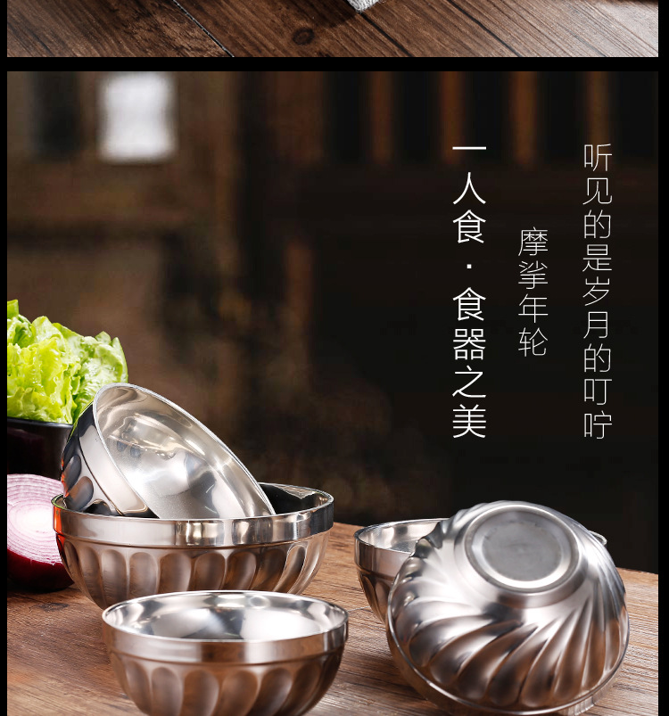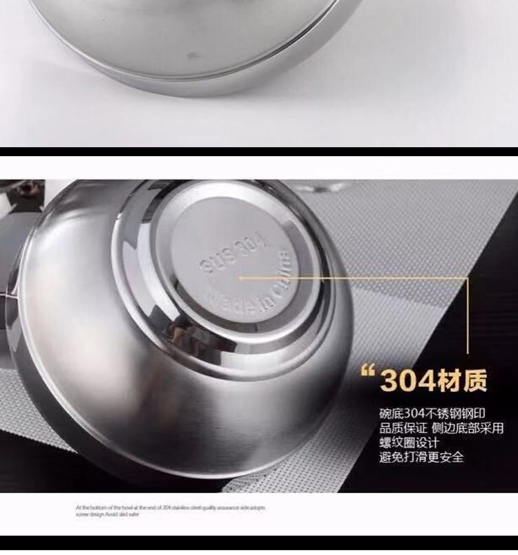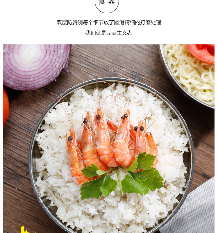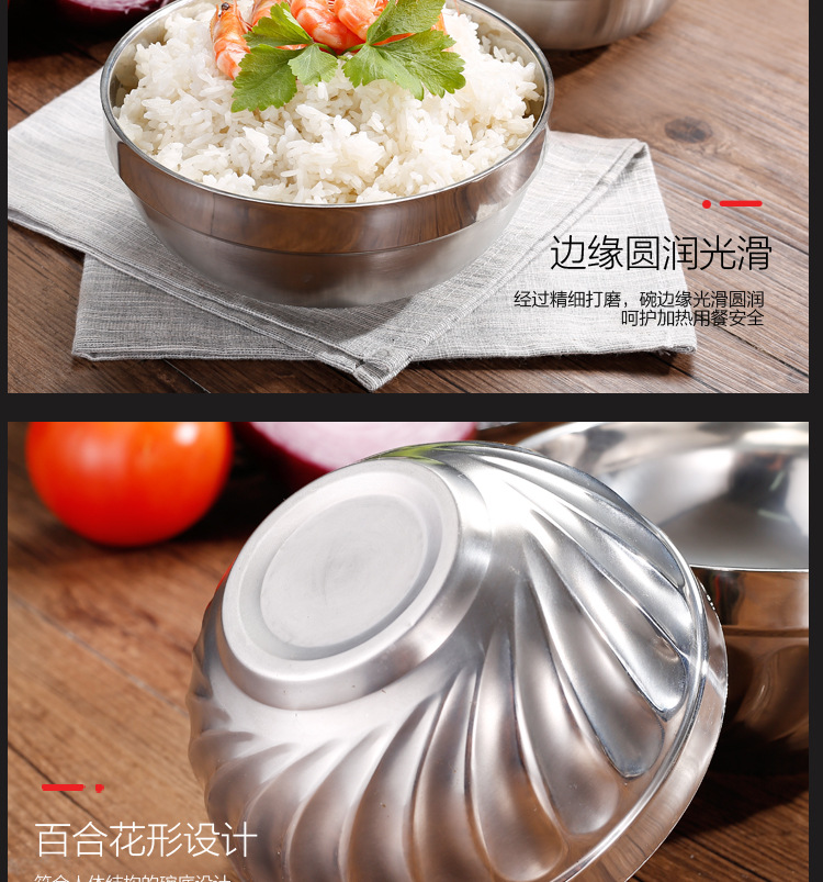 304不锈钢双层碗隔热米饭碗儿童铂金碗汤面学生食堂商用百合碗