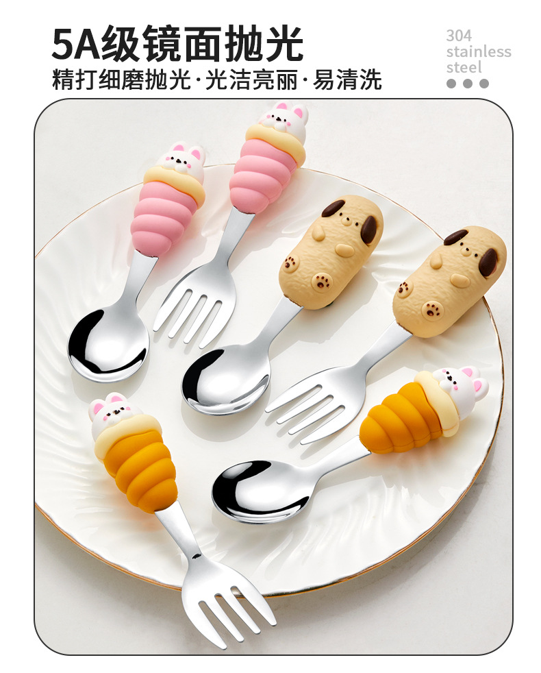 304不锈钢儿童餐具卡通勺子叉子家用宝宝喂养餐具儿童学吃饭勺叉