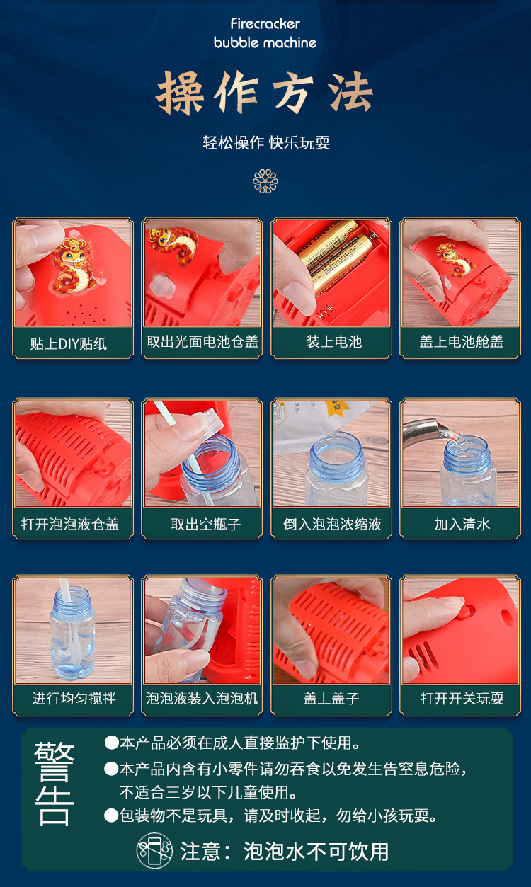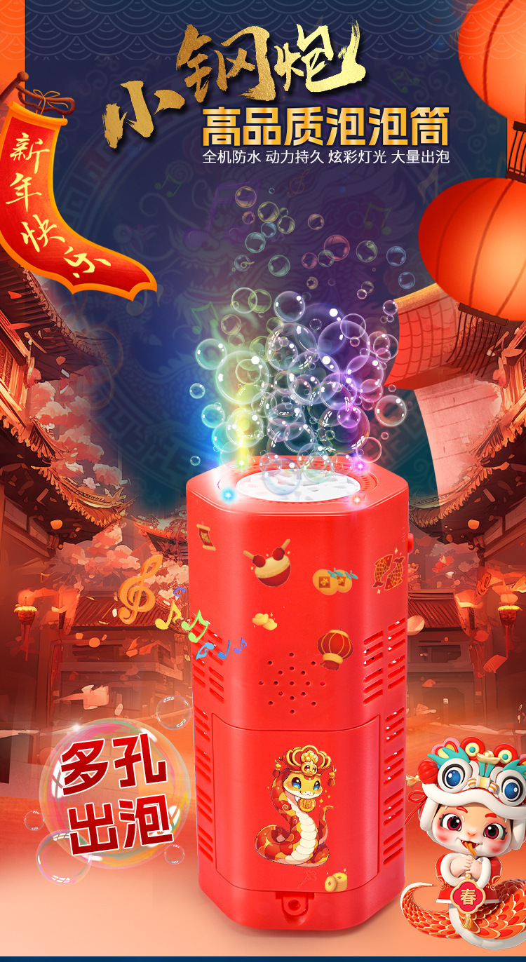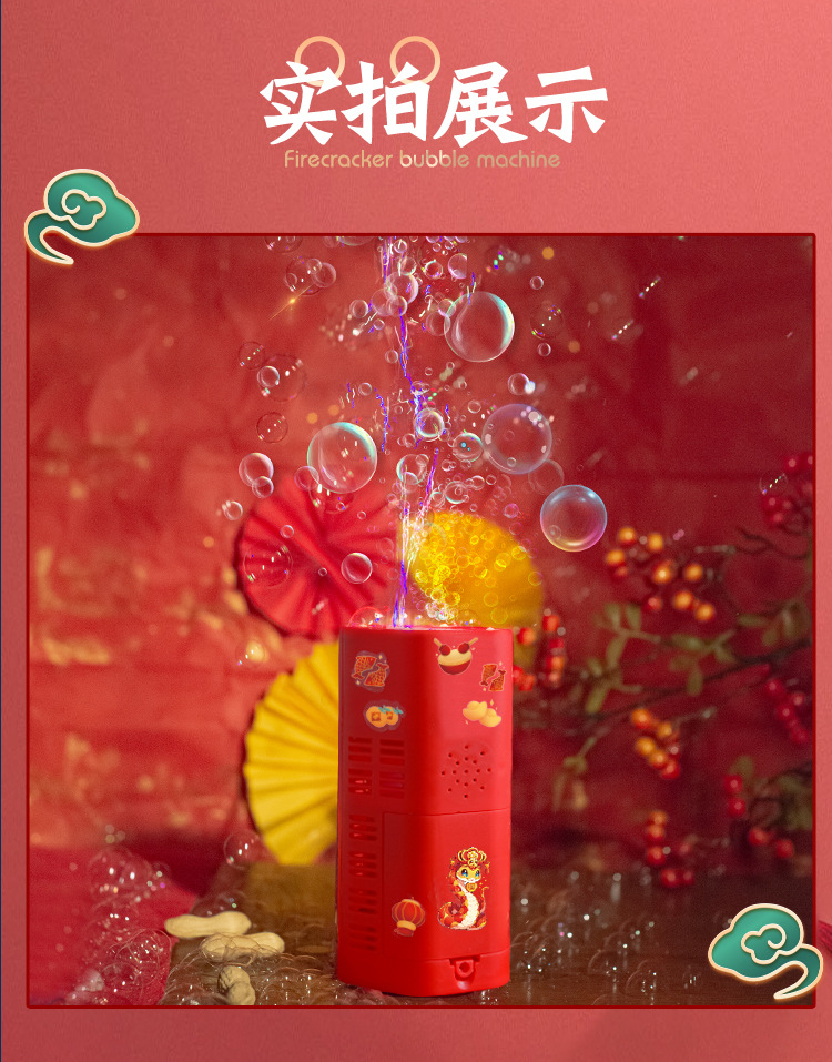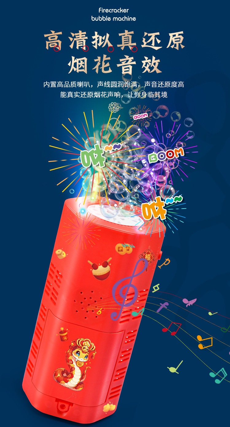 烟花泡泡机电动儿童全自动音效烟花新年喜庆蛇年泡泡枪地摊玩具