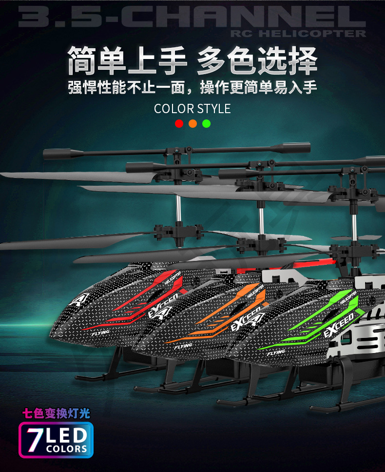 亚马逊热销遥控飞机儿童耐摔3.5通定高直升机带七彩灯飞行玩具