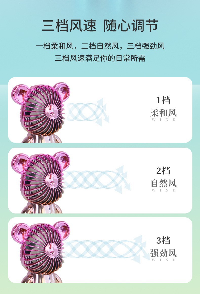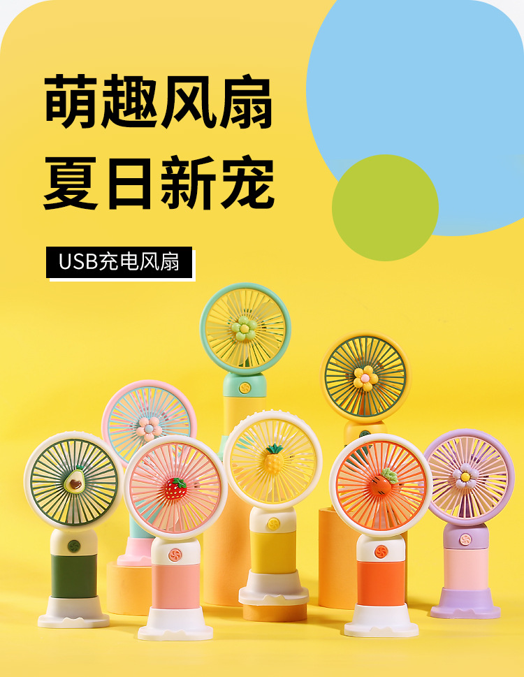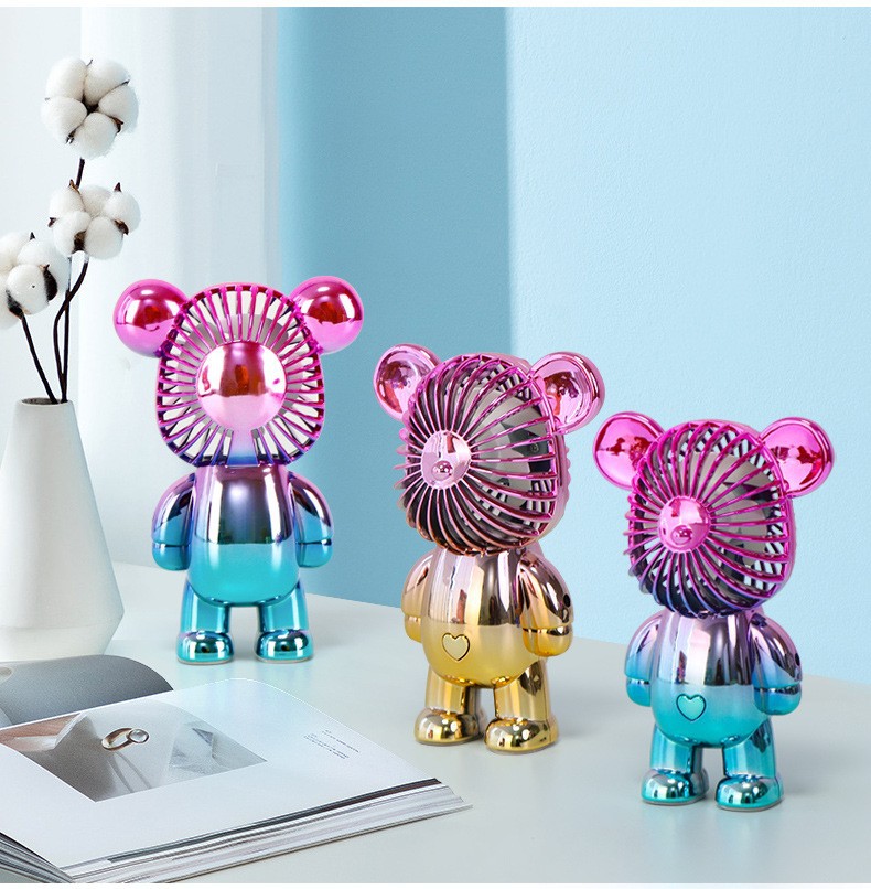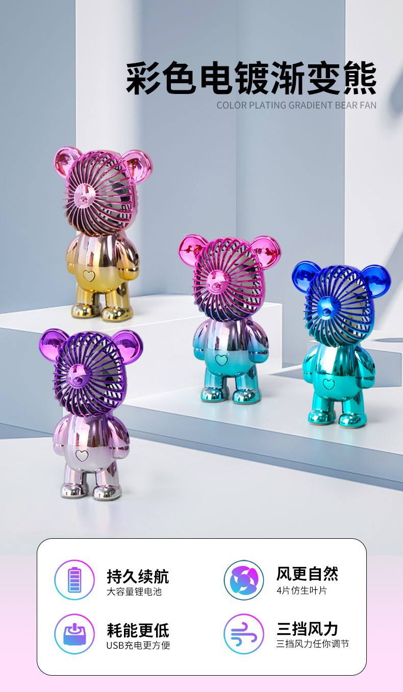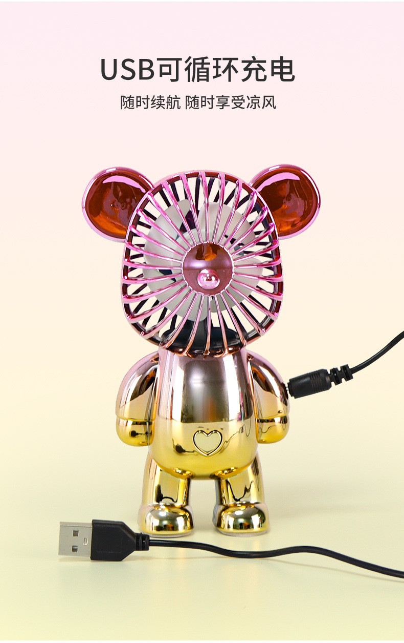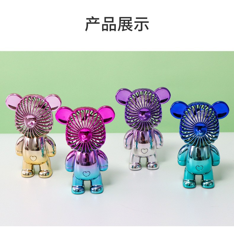 新款卡通萌趣水果花朵电镀暴力熊迷你便携式手持风扇手机支架礼品