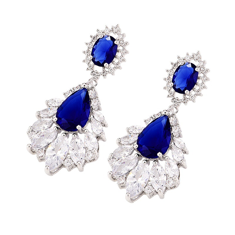 亚马逊爆款复古耳坠流苏耳钉宝蓝锆石925银针耳环婚纱首饰耳饰