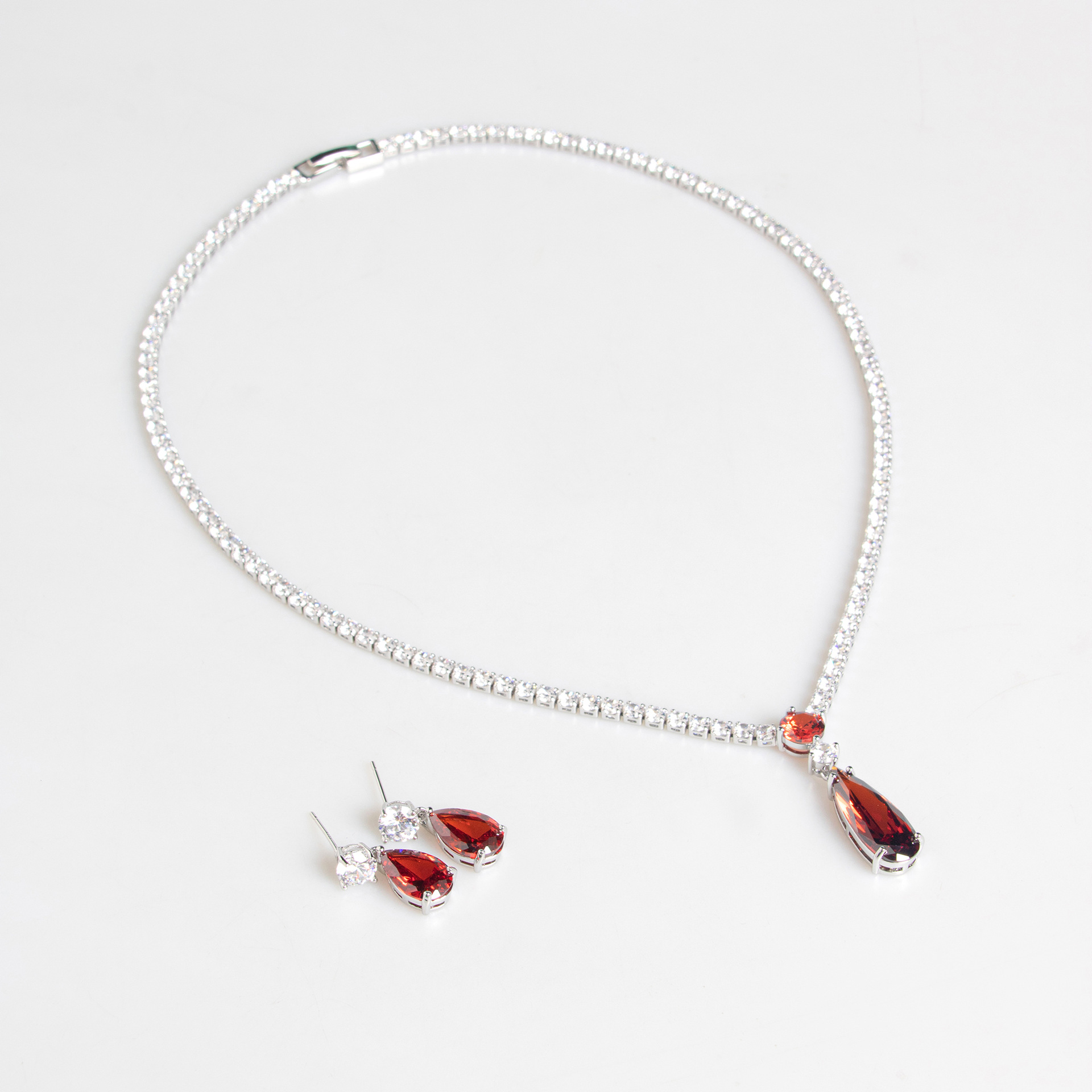 璀璨红宝石水滴新娘项链铜镶锆轻奢小众设计复古优雅简约锁骨链女