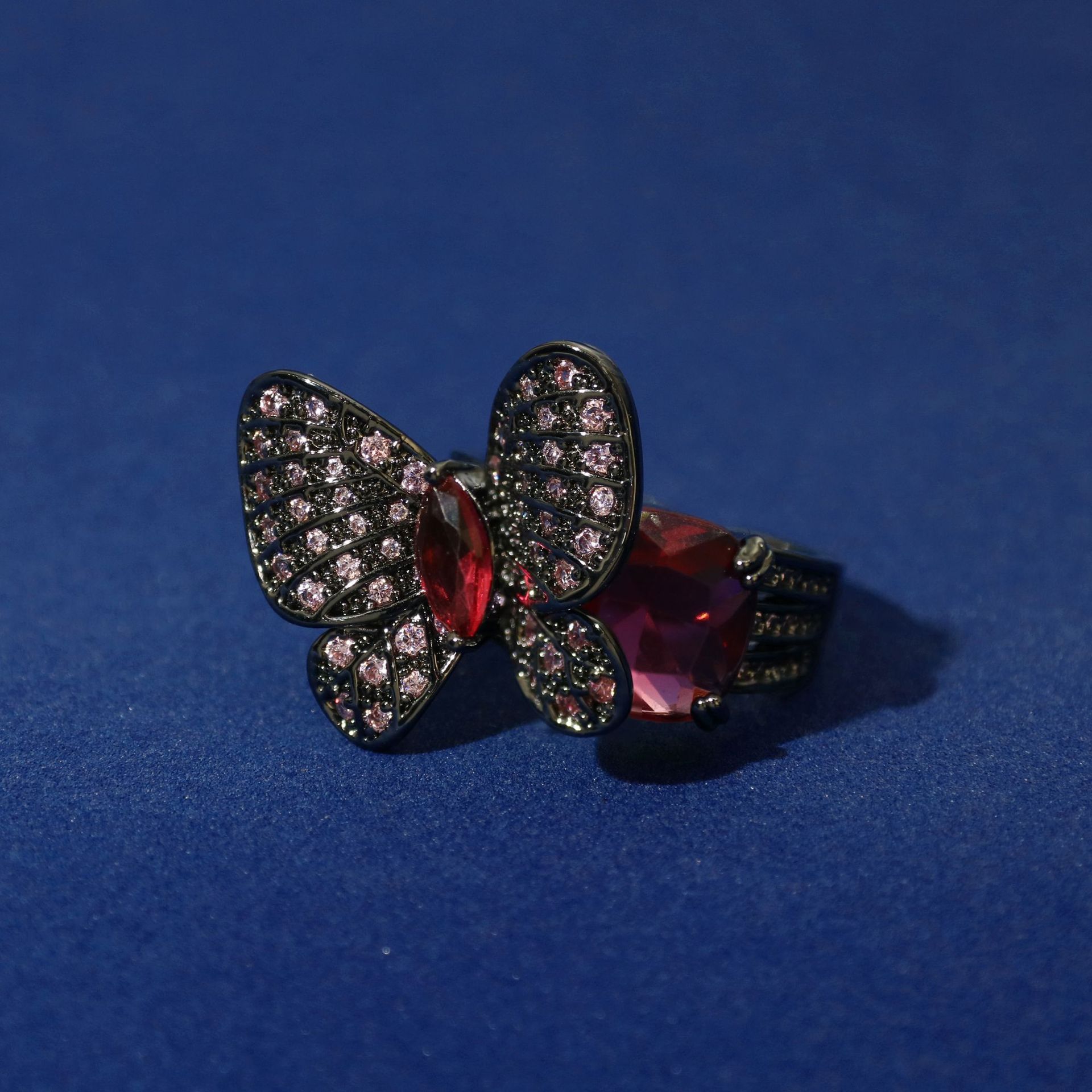 欧美锆石蝴蝶戒指轻奢不掉色小众高级开口食指戒ins简约气质指环