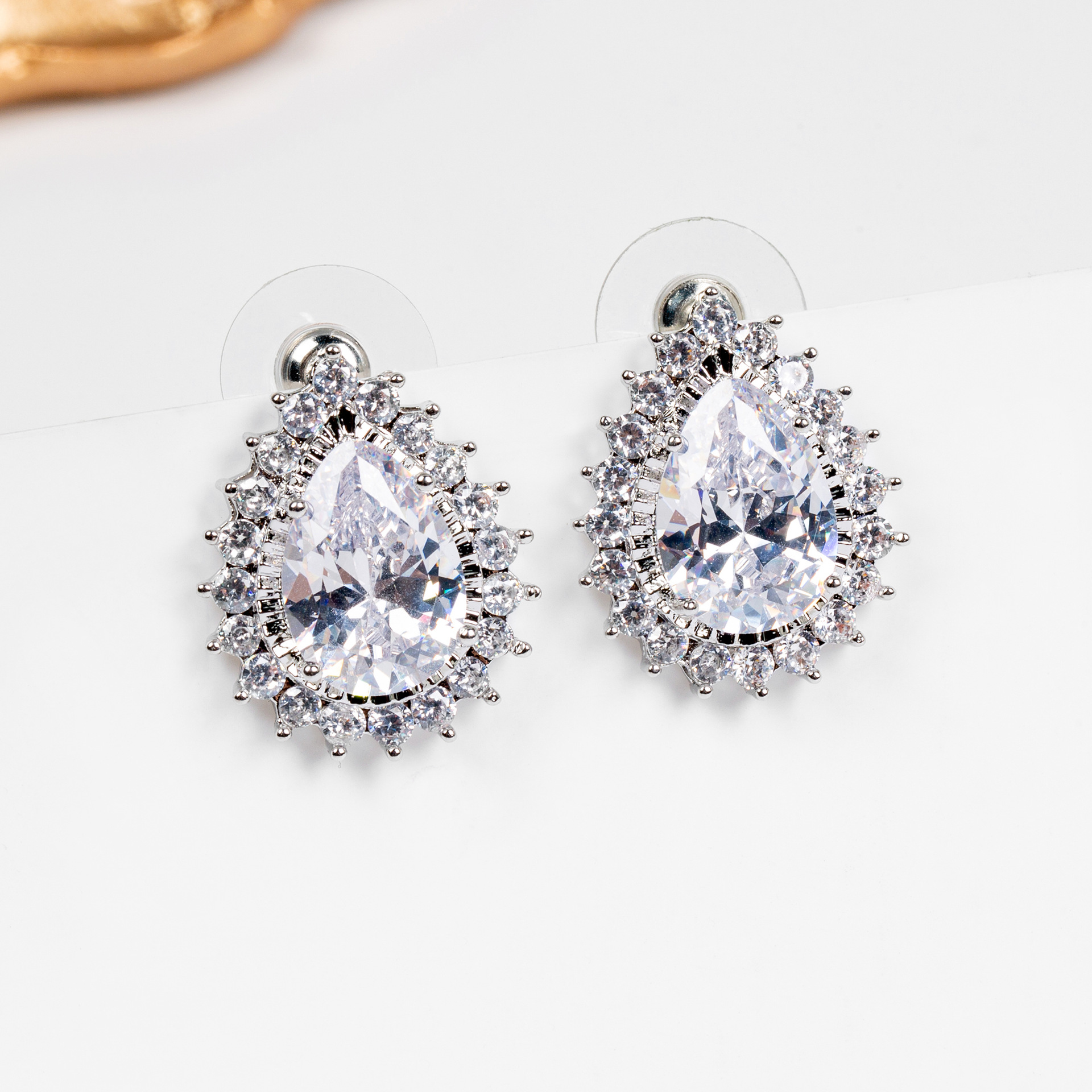 亮雅丽人爆款流行耳钉欧美风格水滴锆石耳钉一件代发货源闪耀