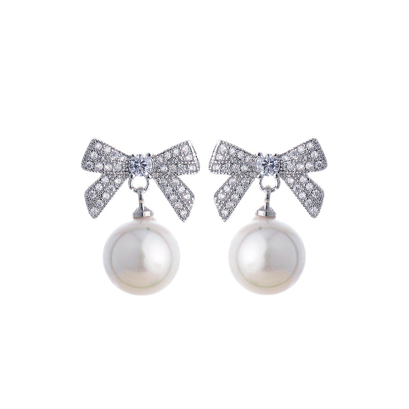 银针时尚高级感镶钻蝴蝶结珍珠耳环个性设计网红风耳钉潮流耳饰