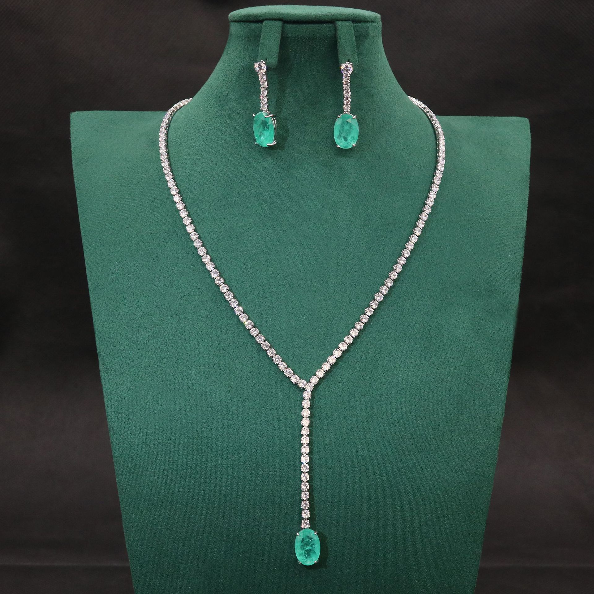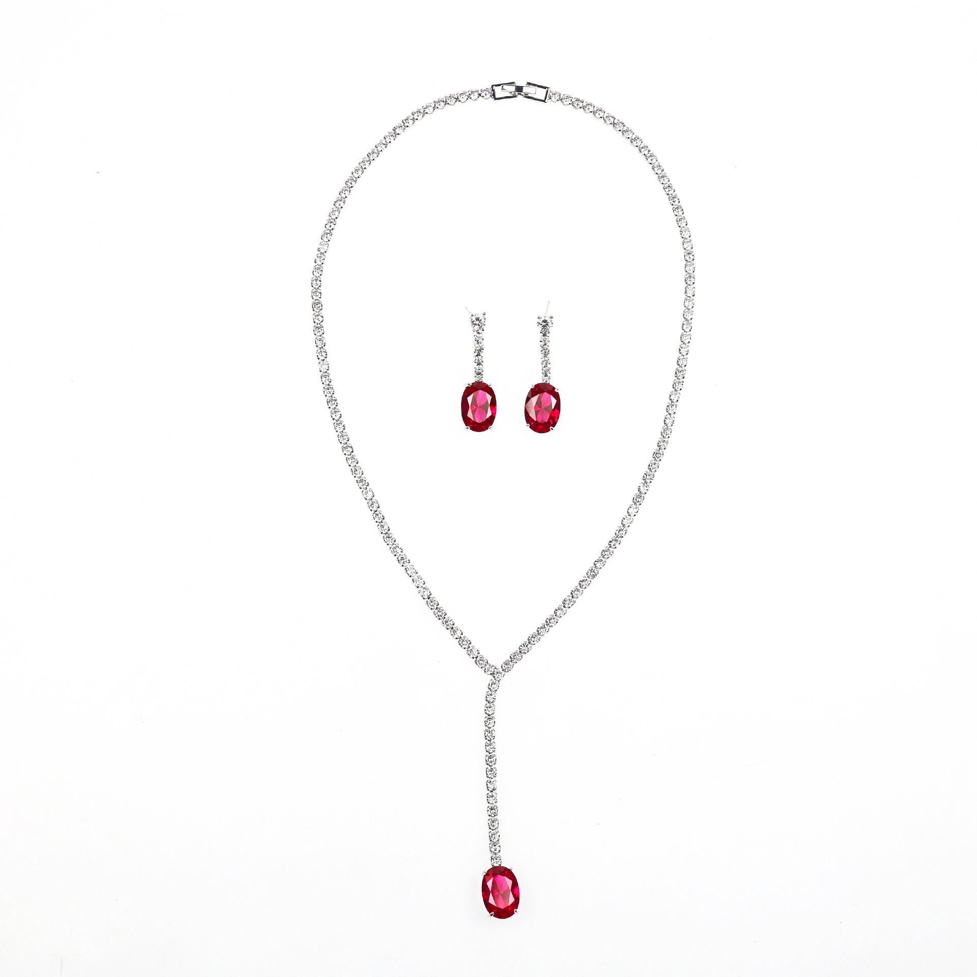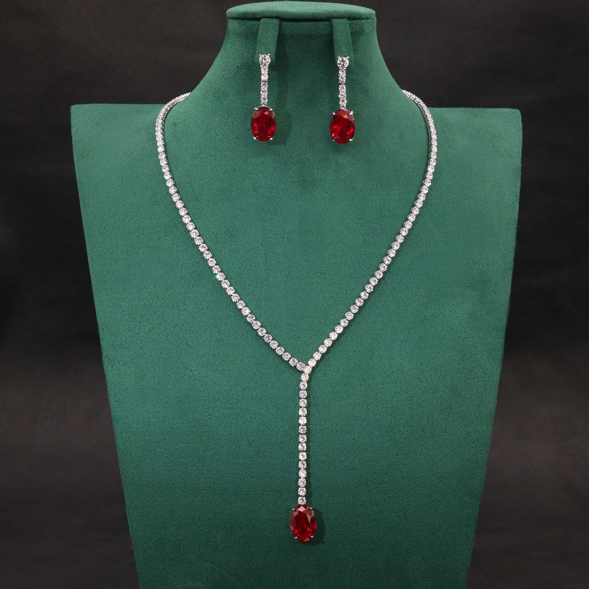 项链女彩宝新娘锆石项链耳环高级感首饰套装红宝石蛋面吊坠厂家批