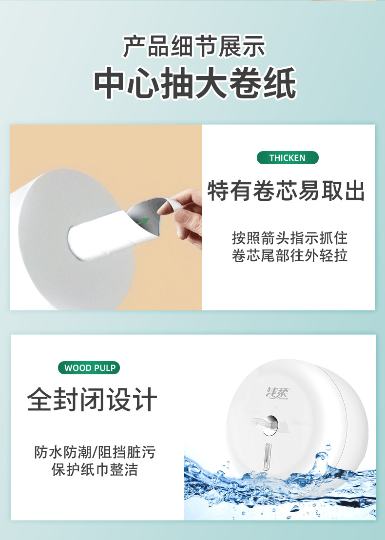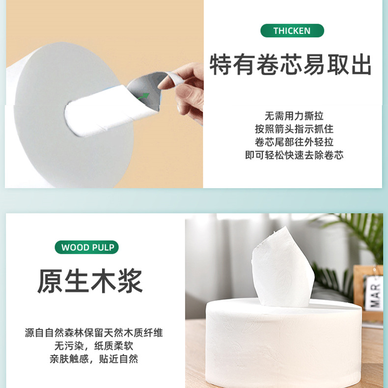 浅柔中心抽大盘纸抽取式专用卫生纸商用大卷纸速溶纸厕纸抽纸整箱