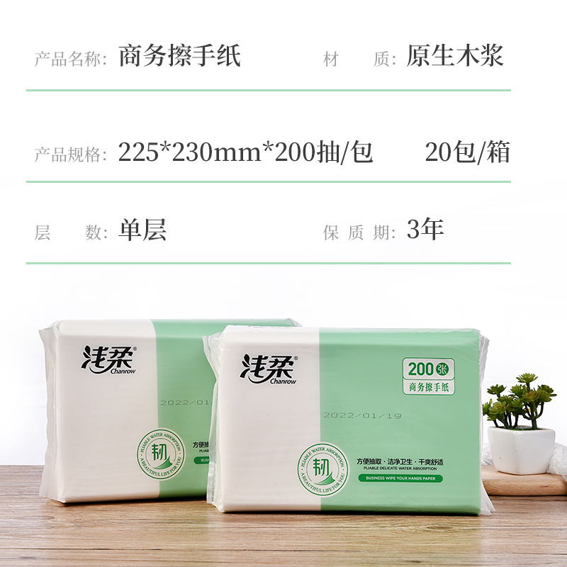 浅柔商用擦手纸200张三折酒店厨房洗手间抽取式纸卫生纸批发厂家
