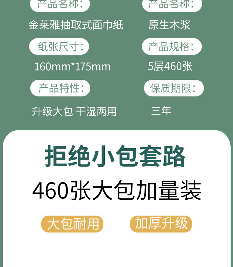 | ① jin laiya paper extraction 20 big bags(①金莱雅抽纸20大包) | USD $5.55 | 71173 carton available |