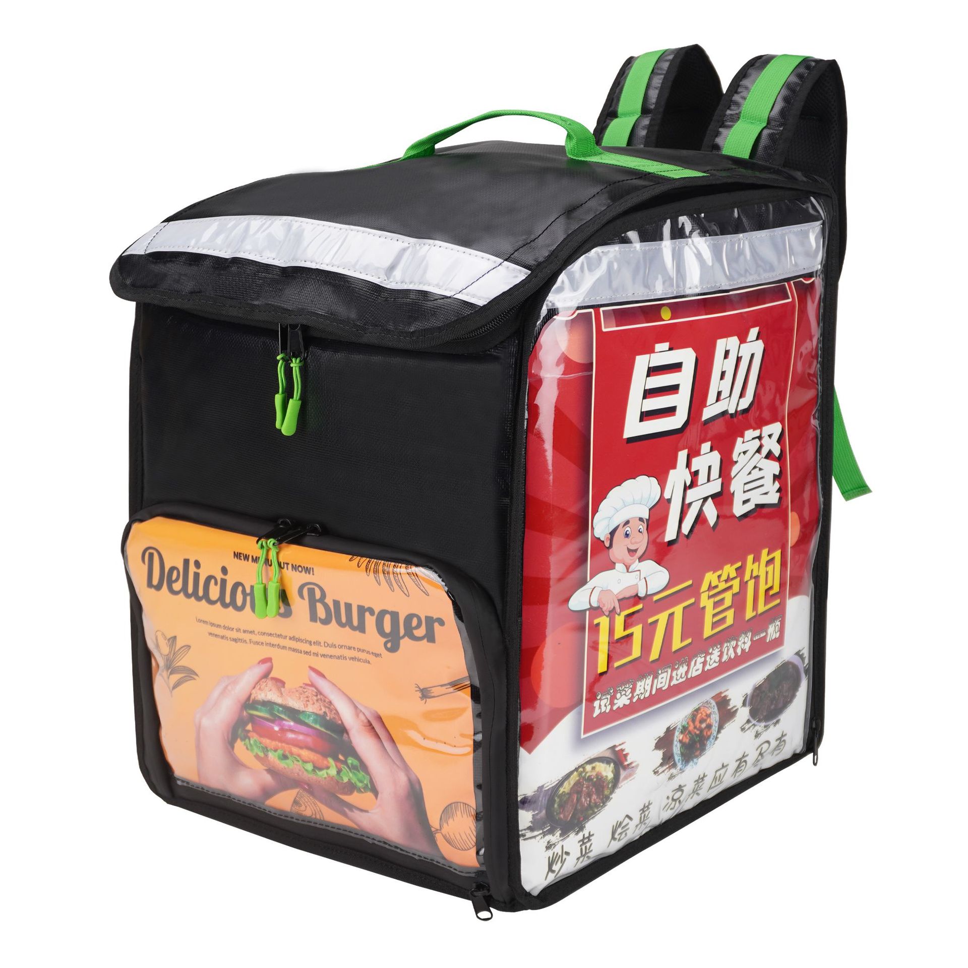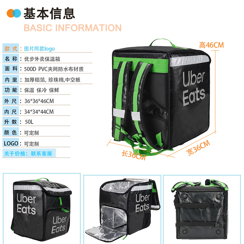 跨境优步Uber外卖保温箱500D夹网防水外卖箱双肩骑手车载送餐跑腿