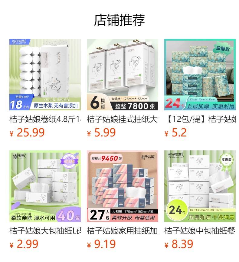 桔子姑娘挂抽悬挂式纸巾挂壁式抽纸底部抽卫生纸1000张整箱批发