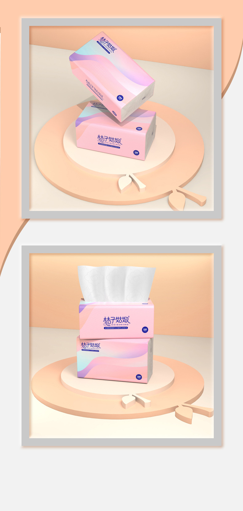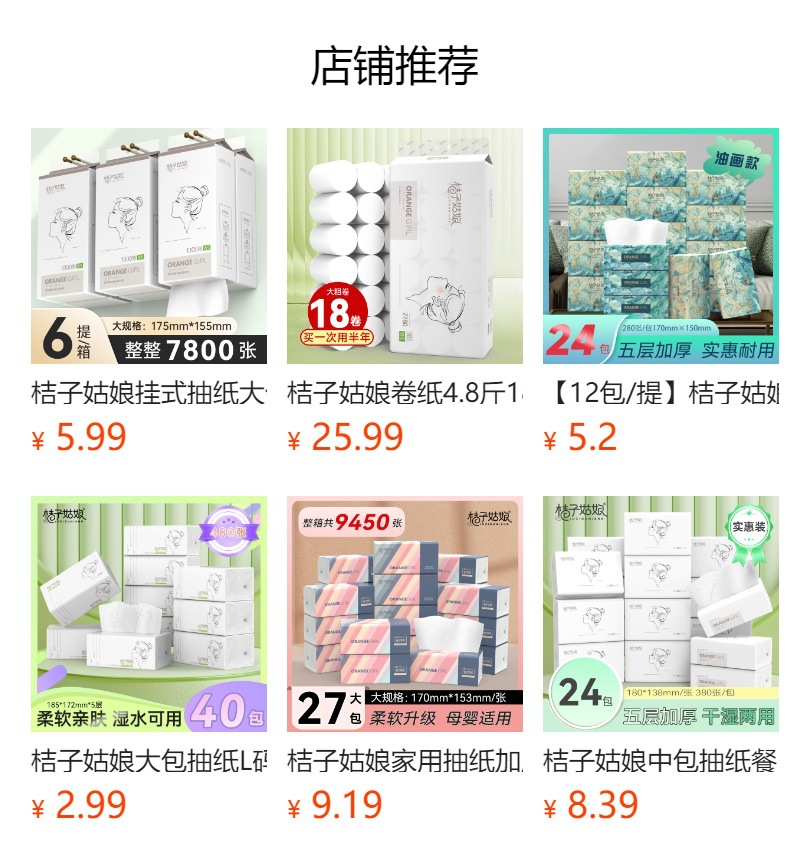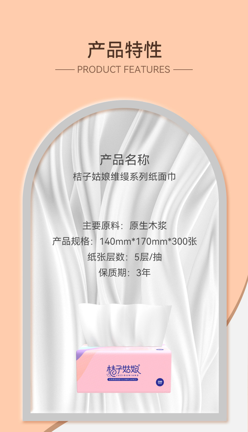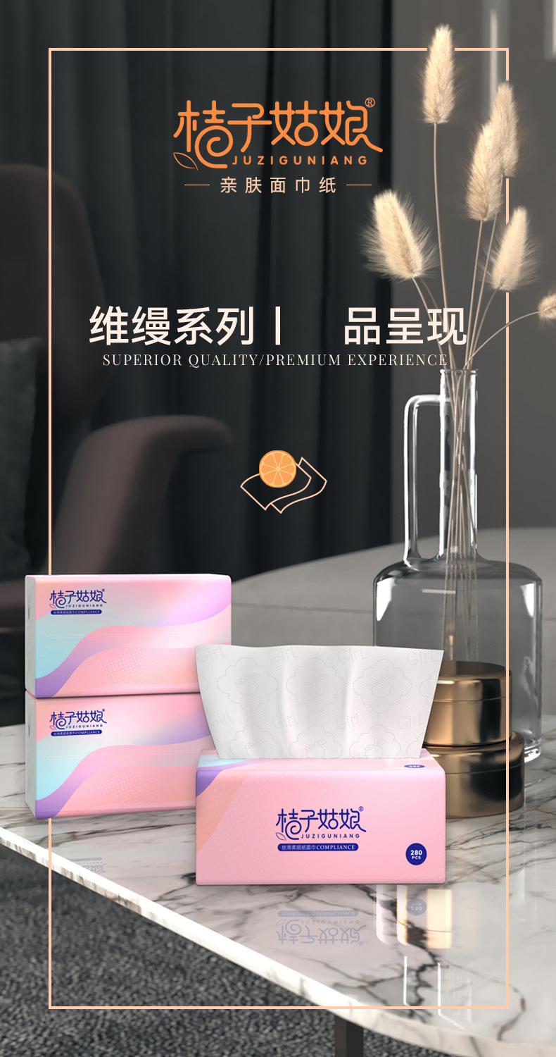 【24包】桔子姑娘纸巾抽纸整箱批发300张餐巾纸家用厕纸卫生纸包