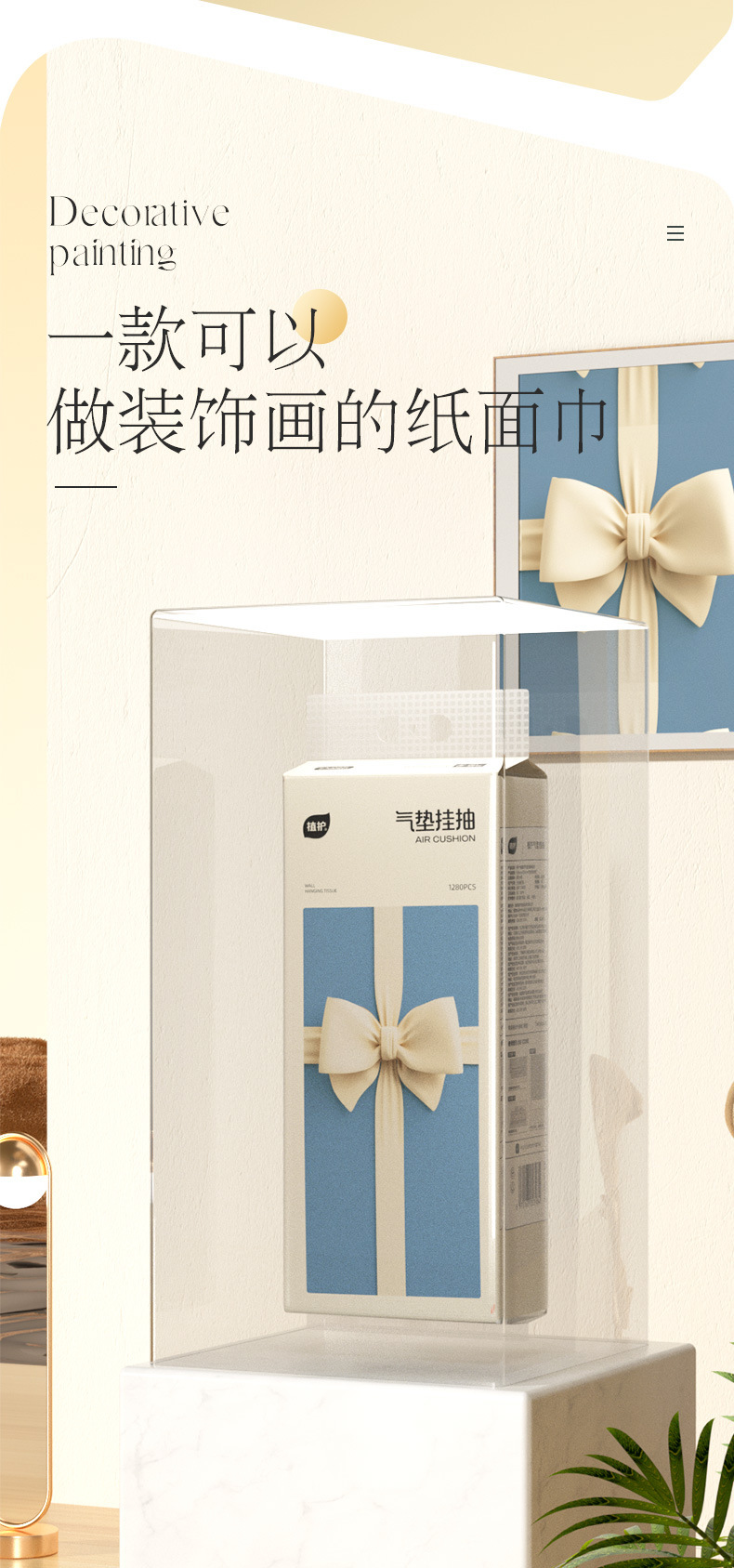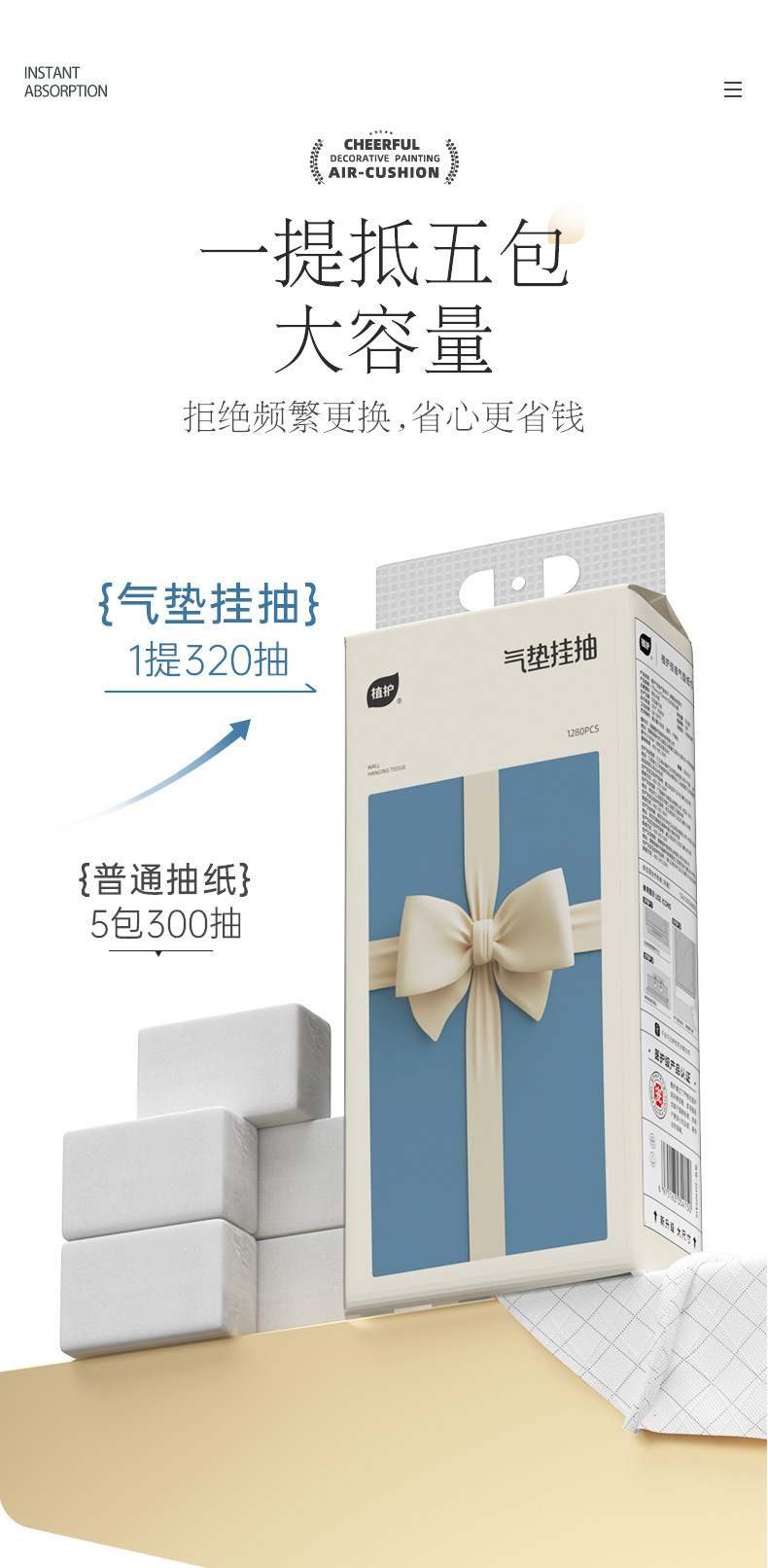 植护蝴蝶结挂抽6提/箱大包悬挂式纸巾家用商用餐巾纸4层印花面巾