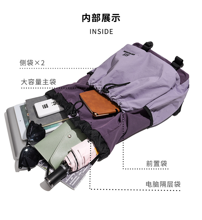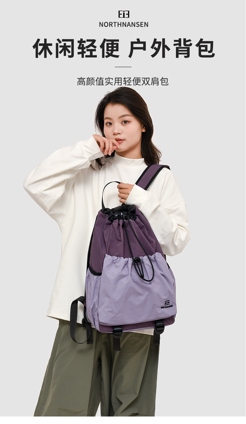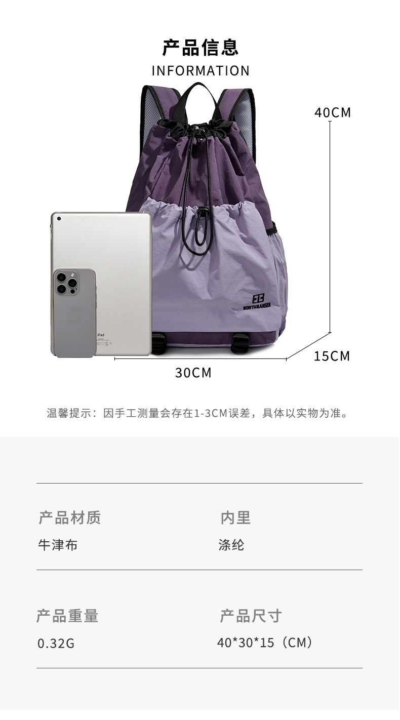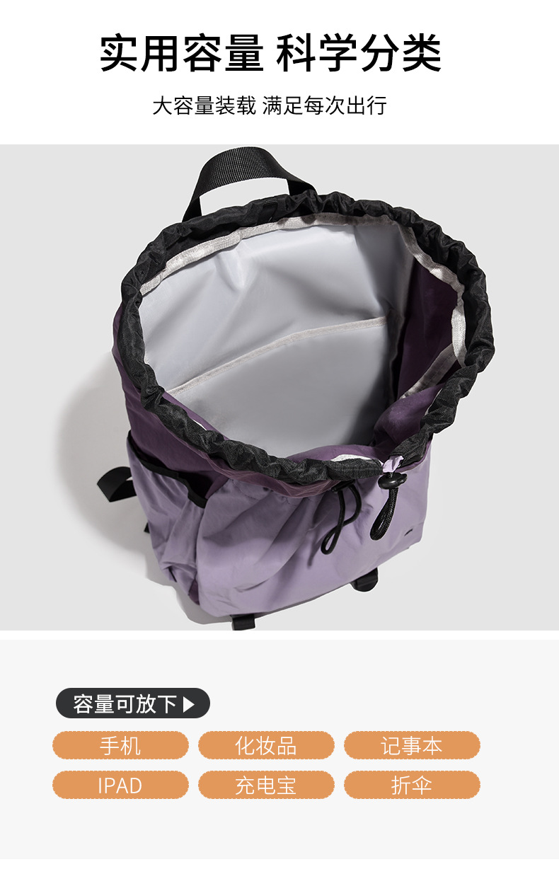新款户外露营休闲背包抽绳设计旅游登山轻便运动健身男女士双肩包