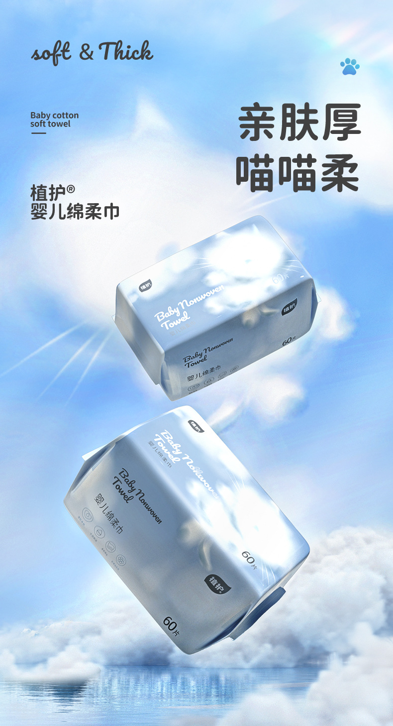 植护洗脸巾60抽婴儿绵柔巾一次性抽取式洁面巾干湿两用擦脸巾批发