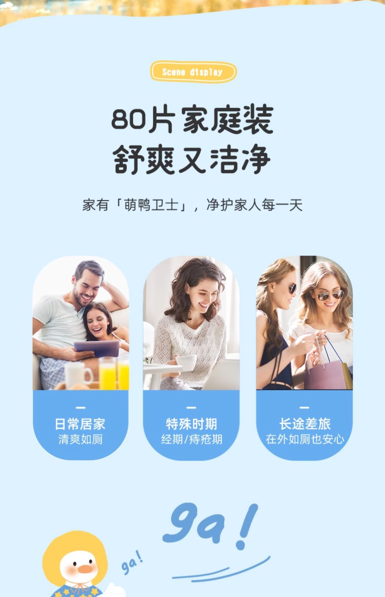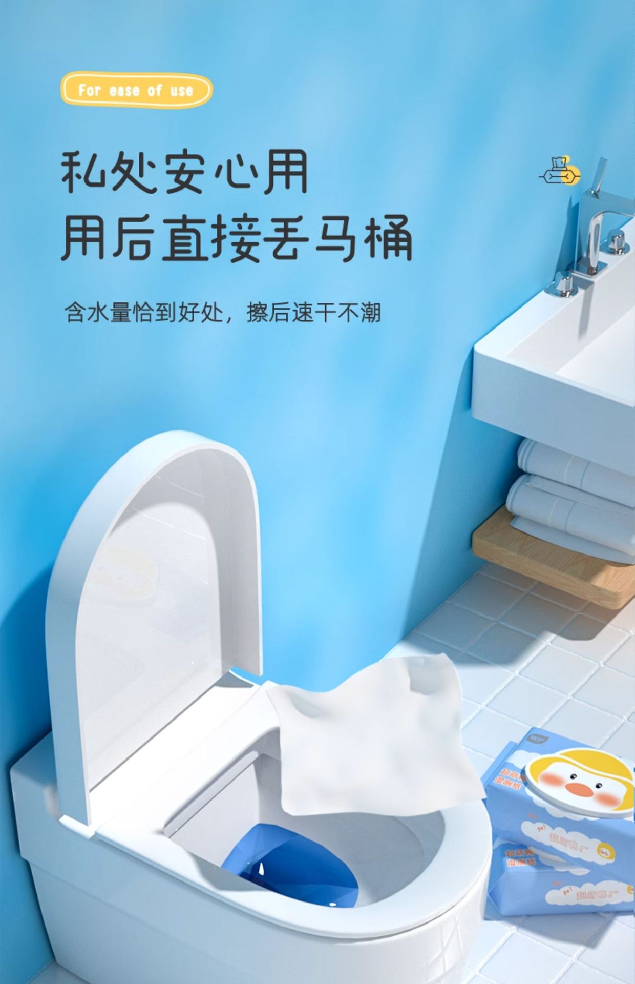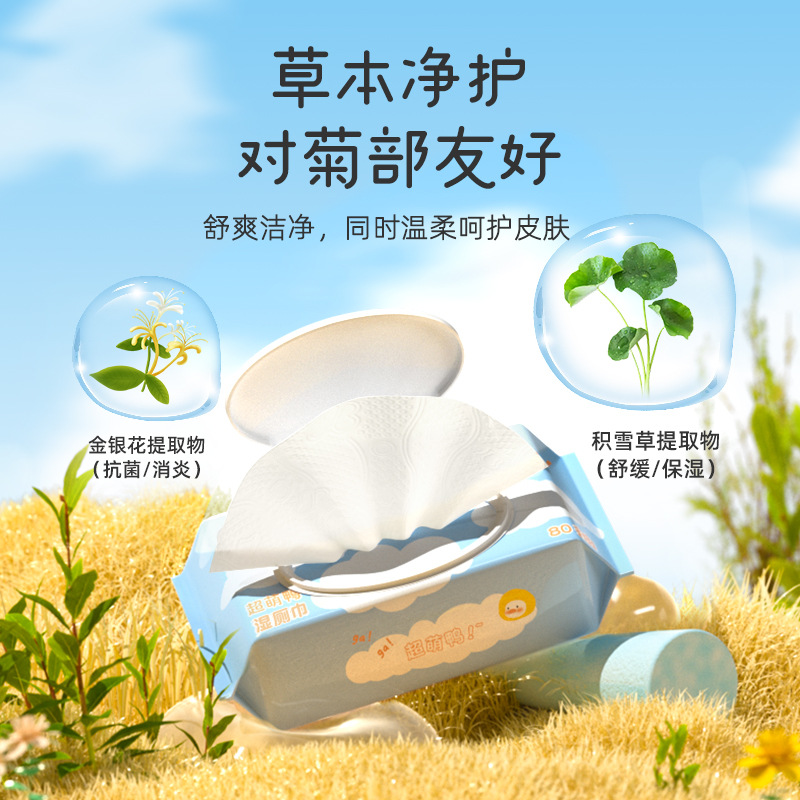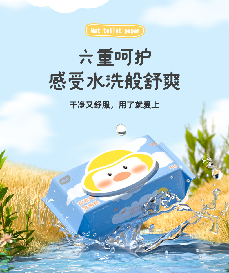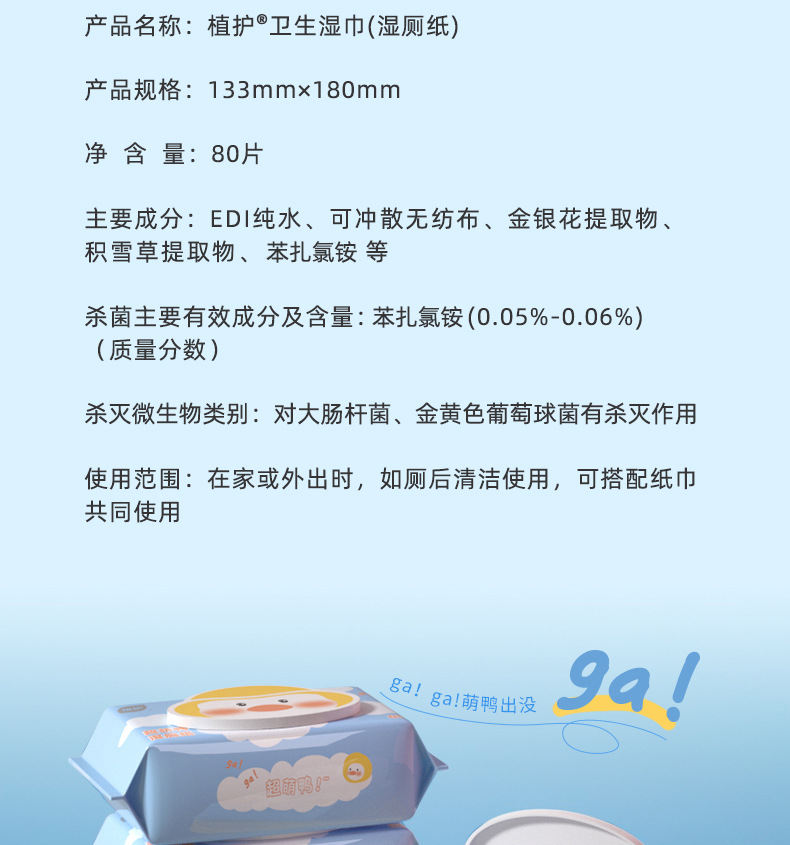 植护超萌鸭卫生湿厕纸家用超划算卫生湿纸巾80抽男女专用湿巾批发