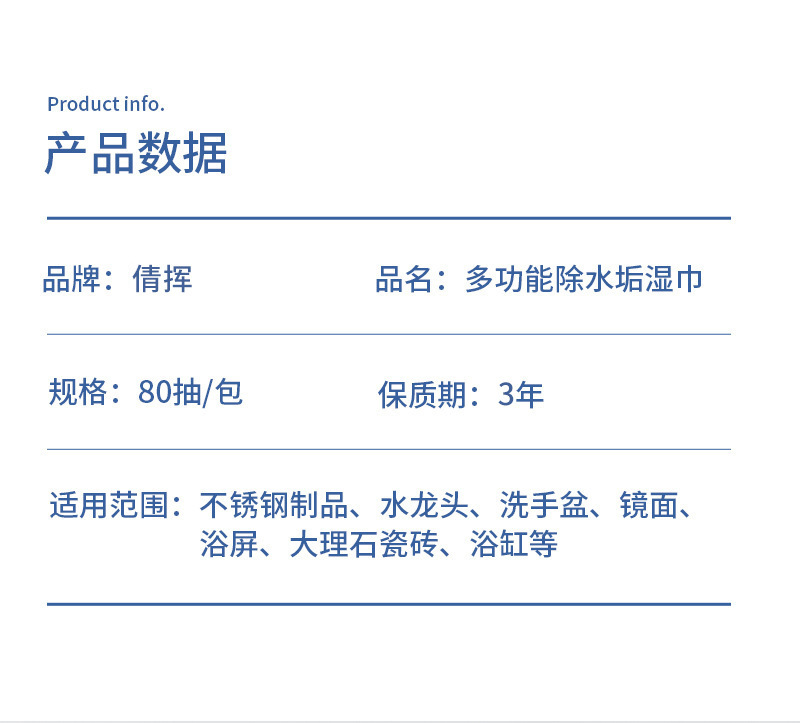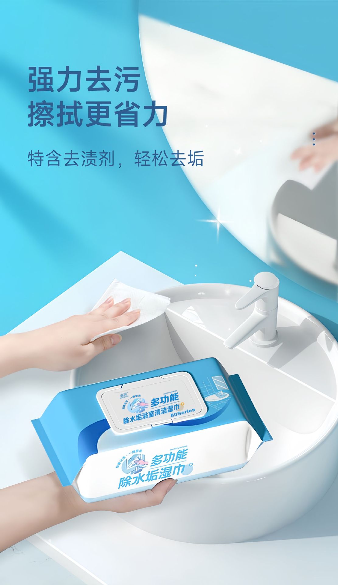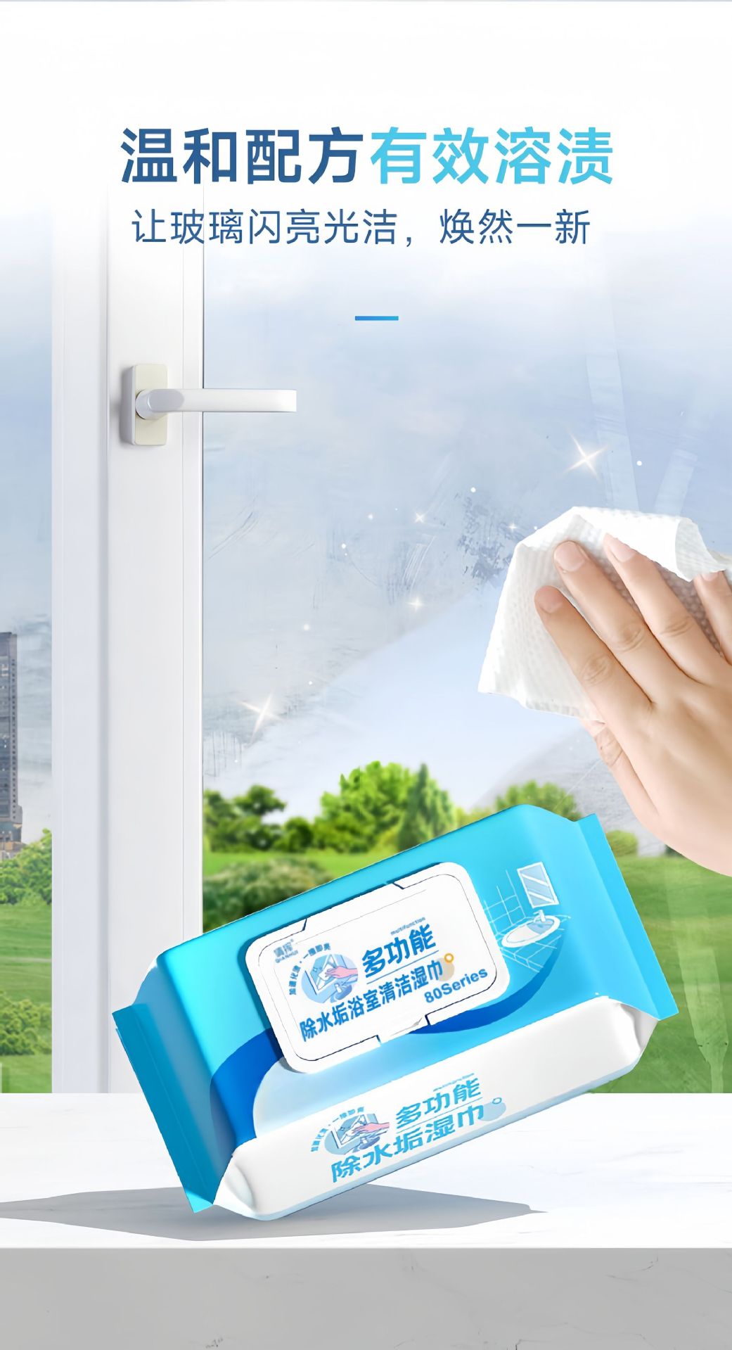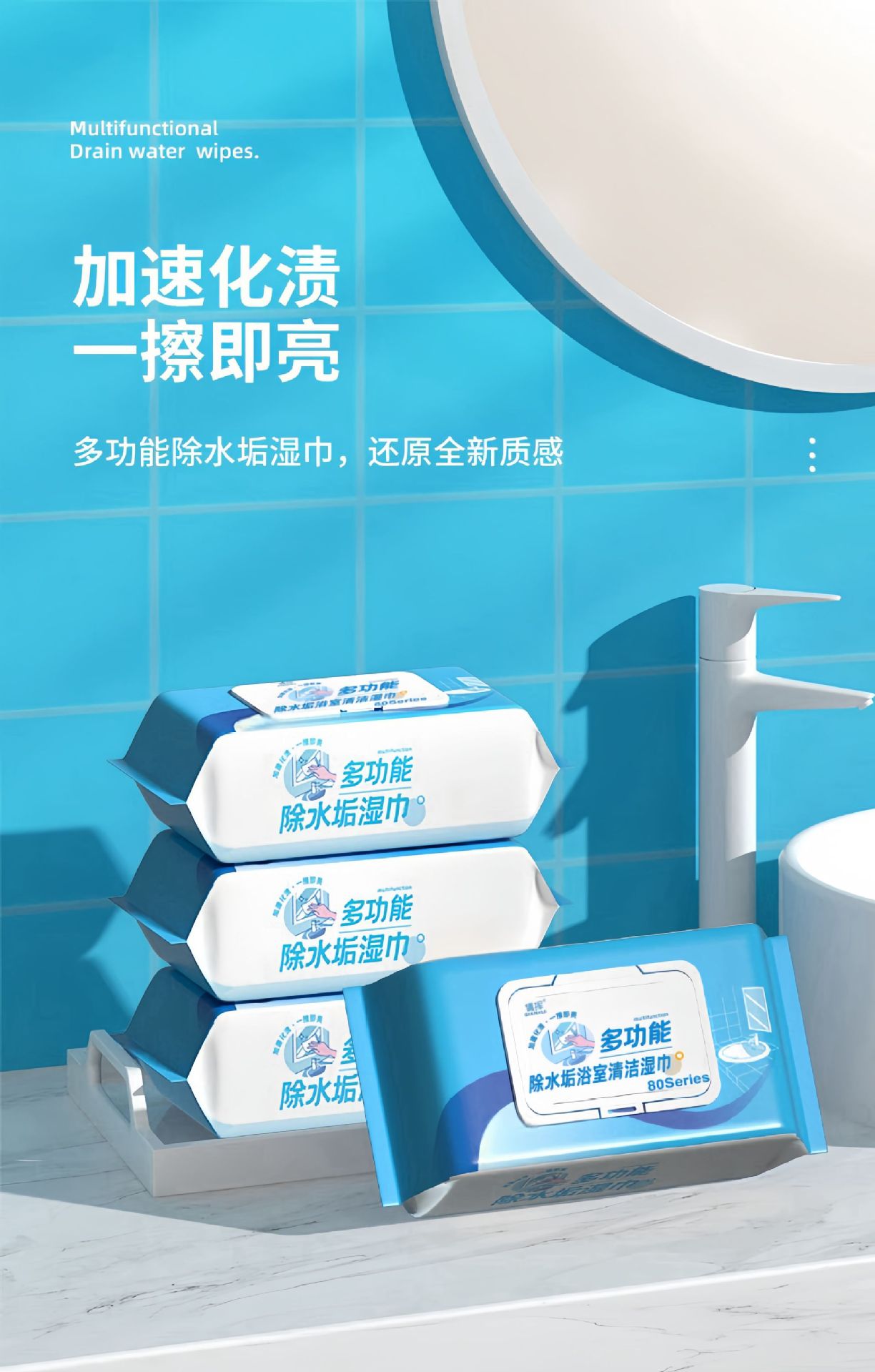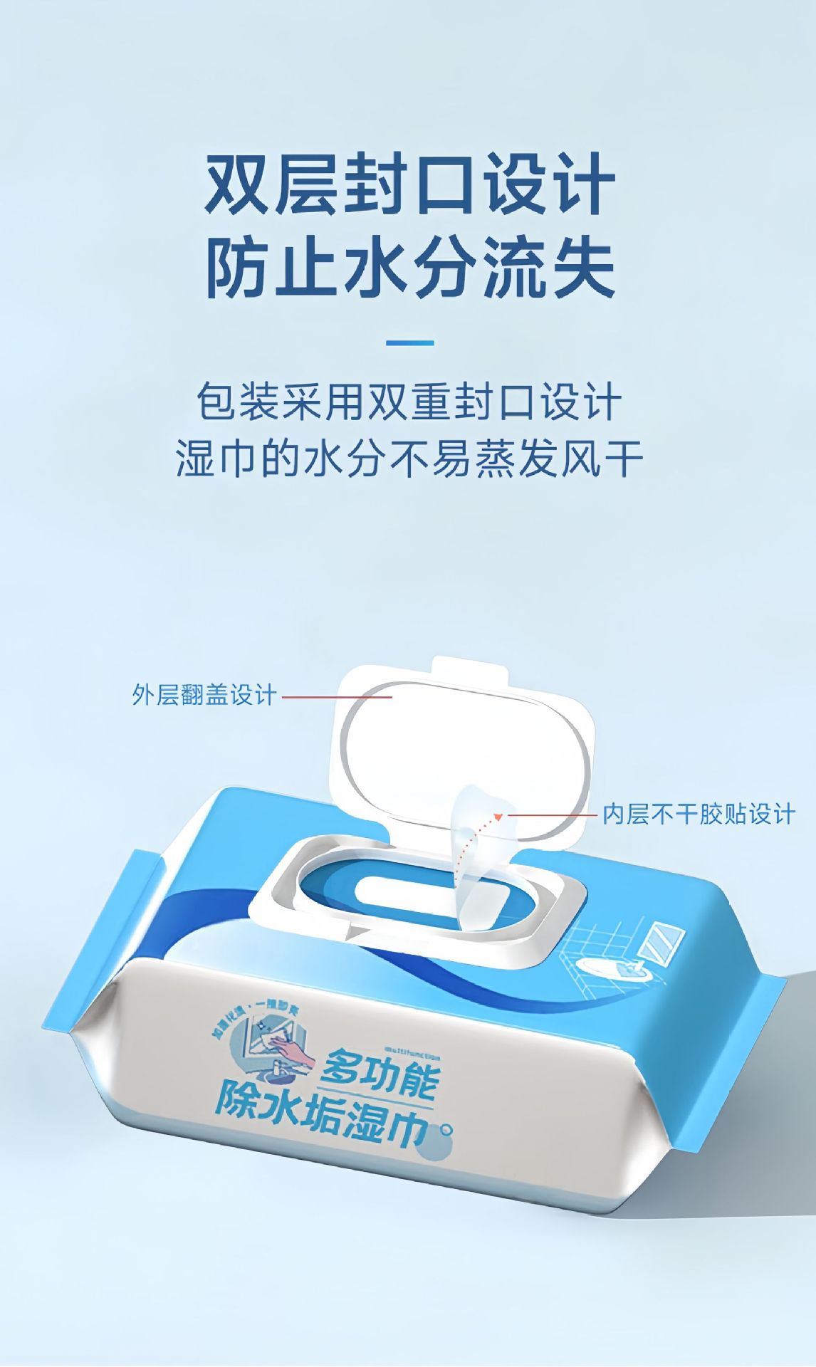 除水垢卫生湿巾 多功能厨房浴室玻璃瓷砖水垢清洁除垢家用 湿纸巾