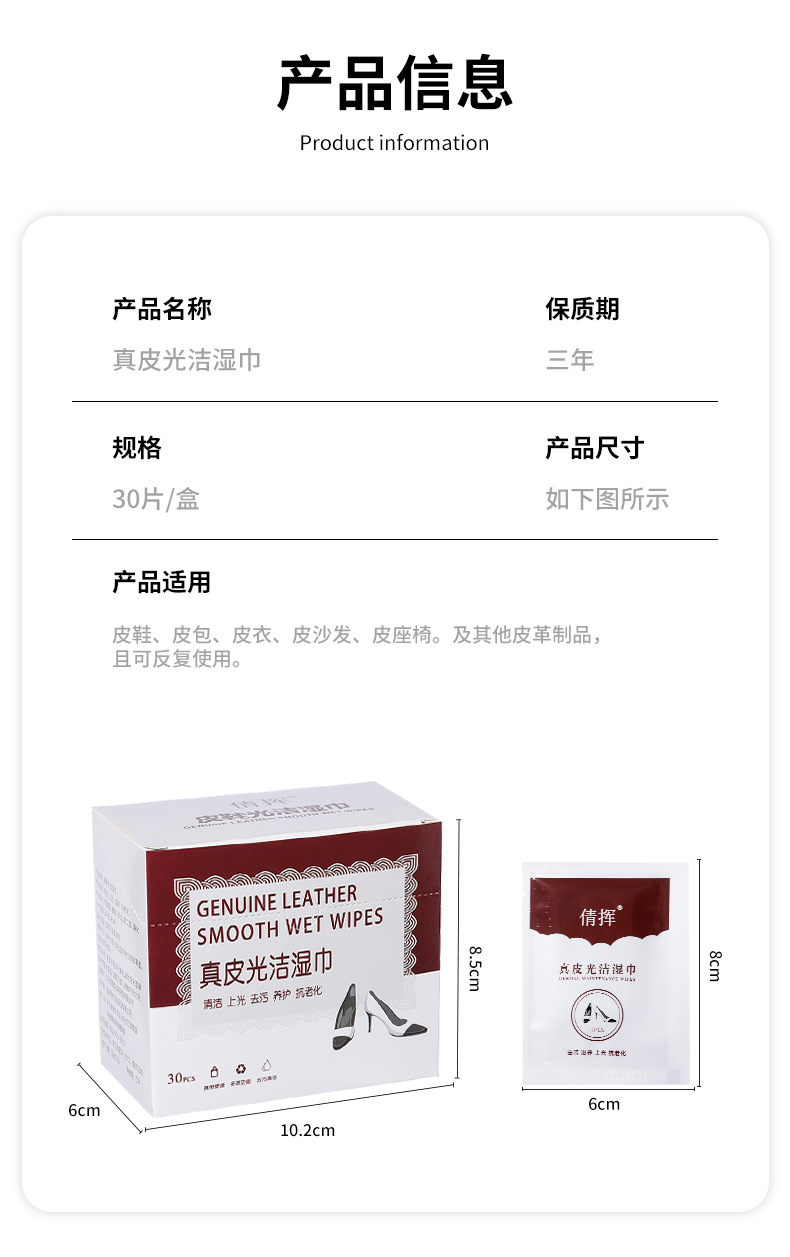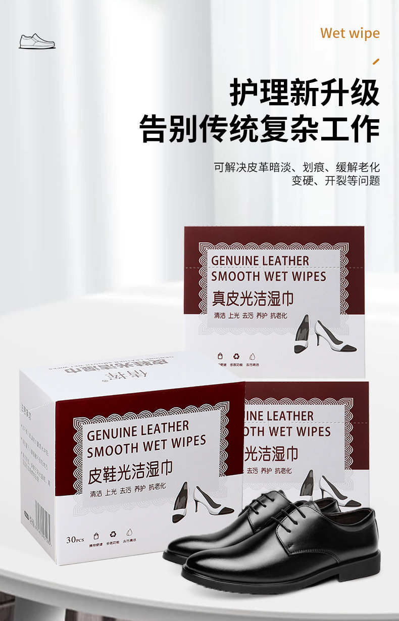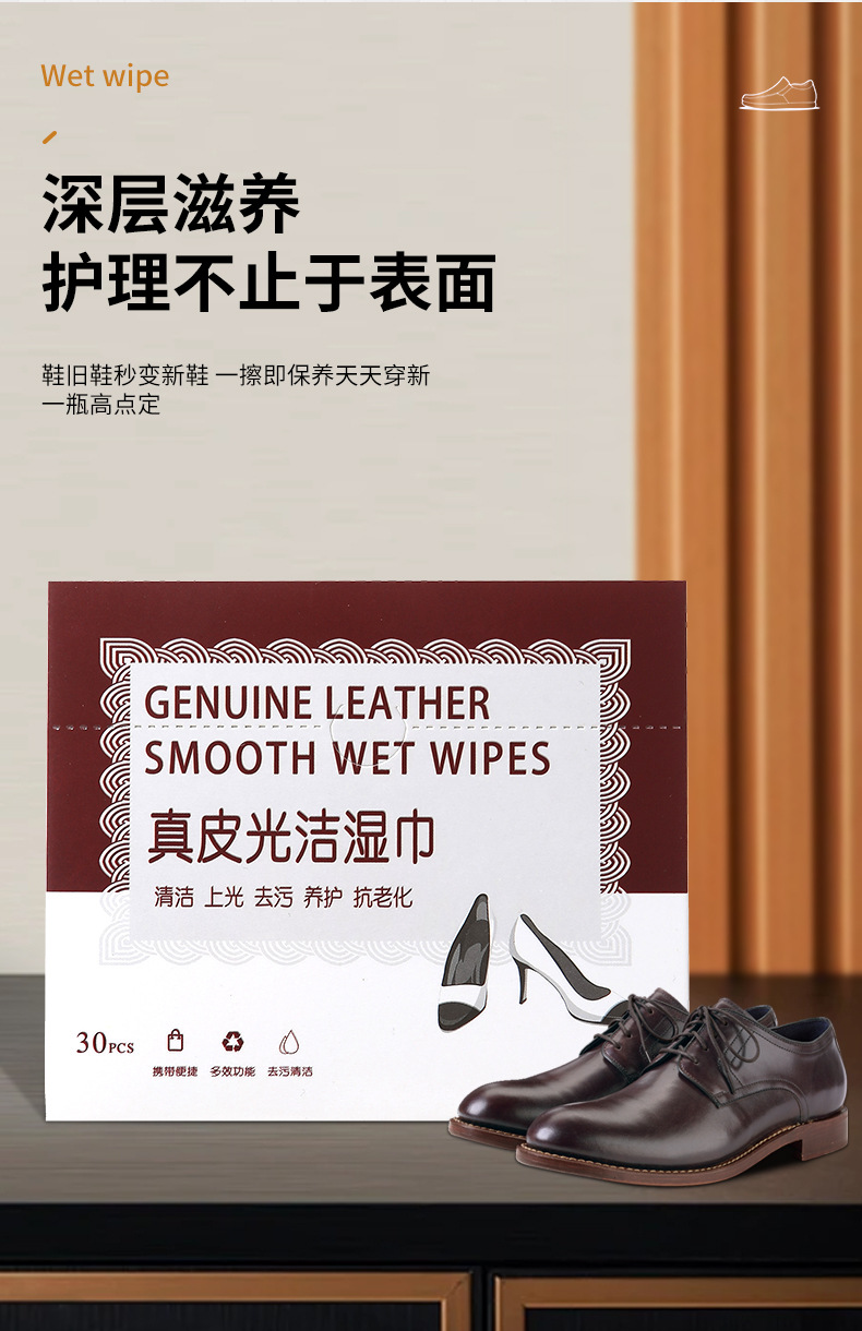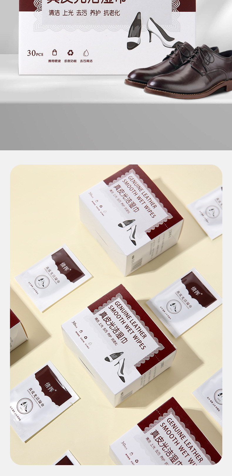皮鞋一次性光洁湿巾独立30片上光去污湿巾纸皮具清洁擦鞋湿巾批发