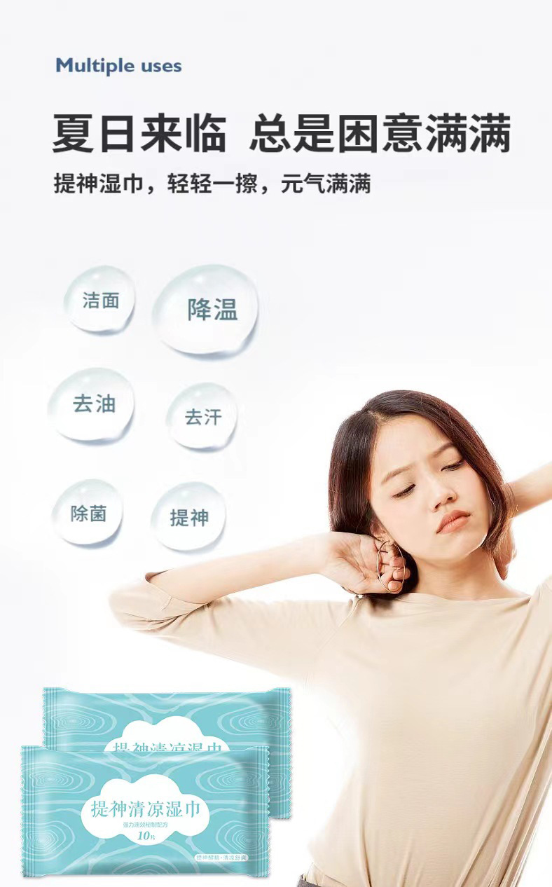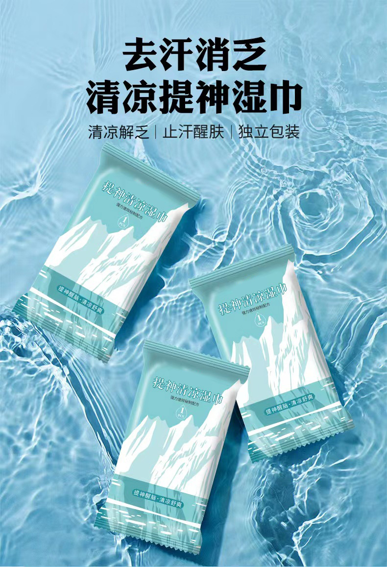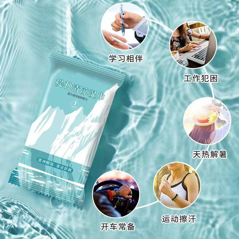 提神清凉湿巾冰凉降温擦汗擦脸去油洁面湿巾纸便携10抽学生军训用