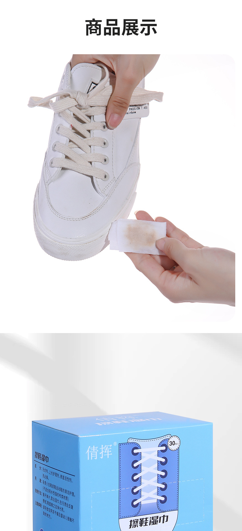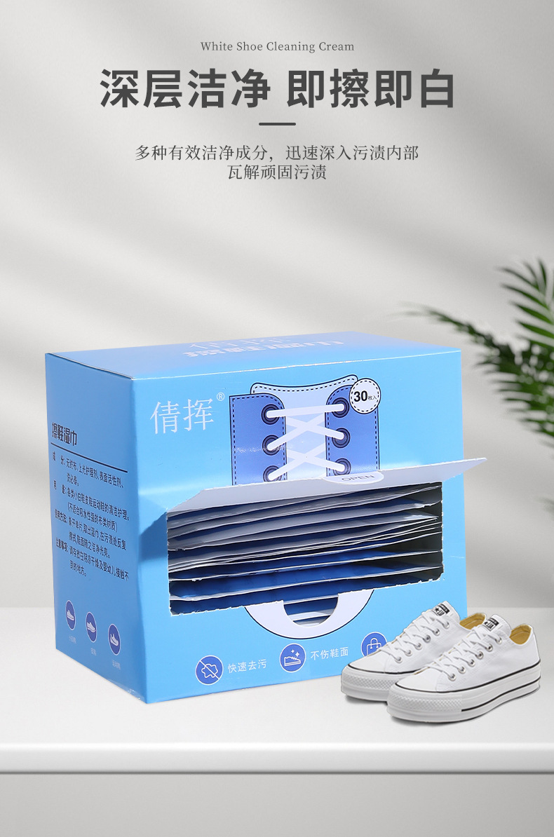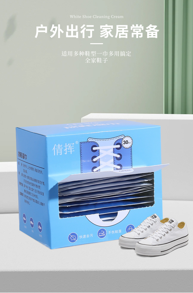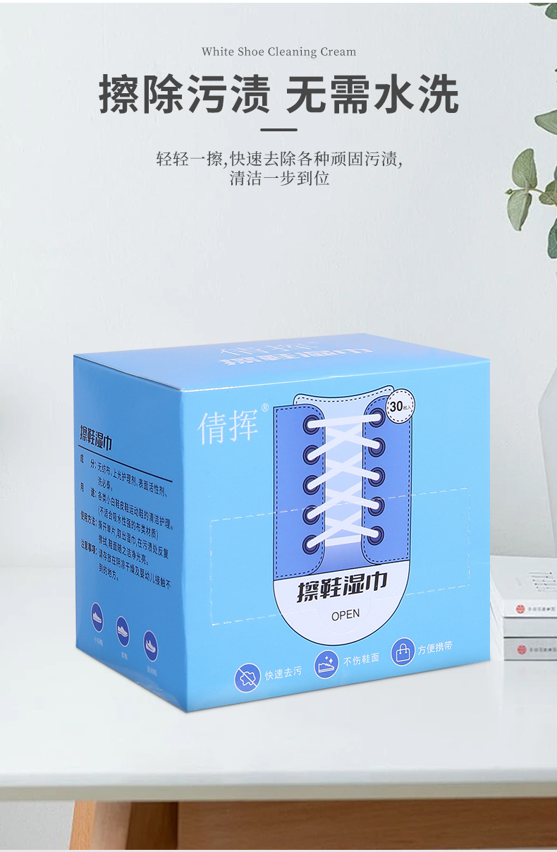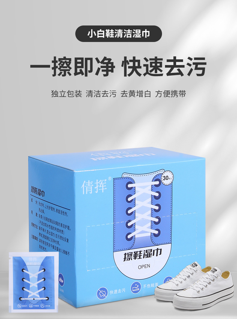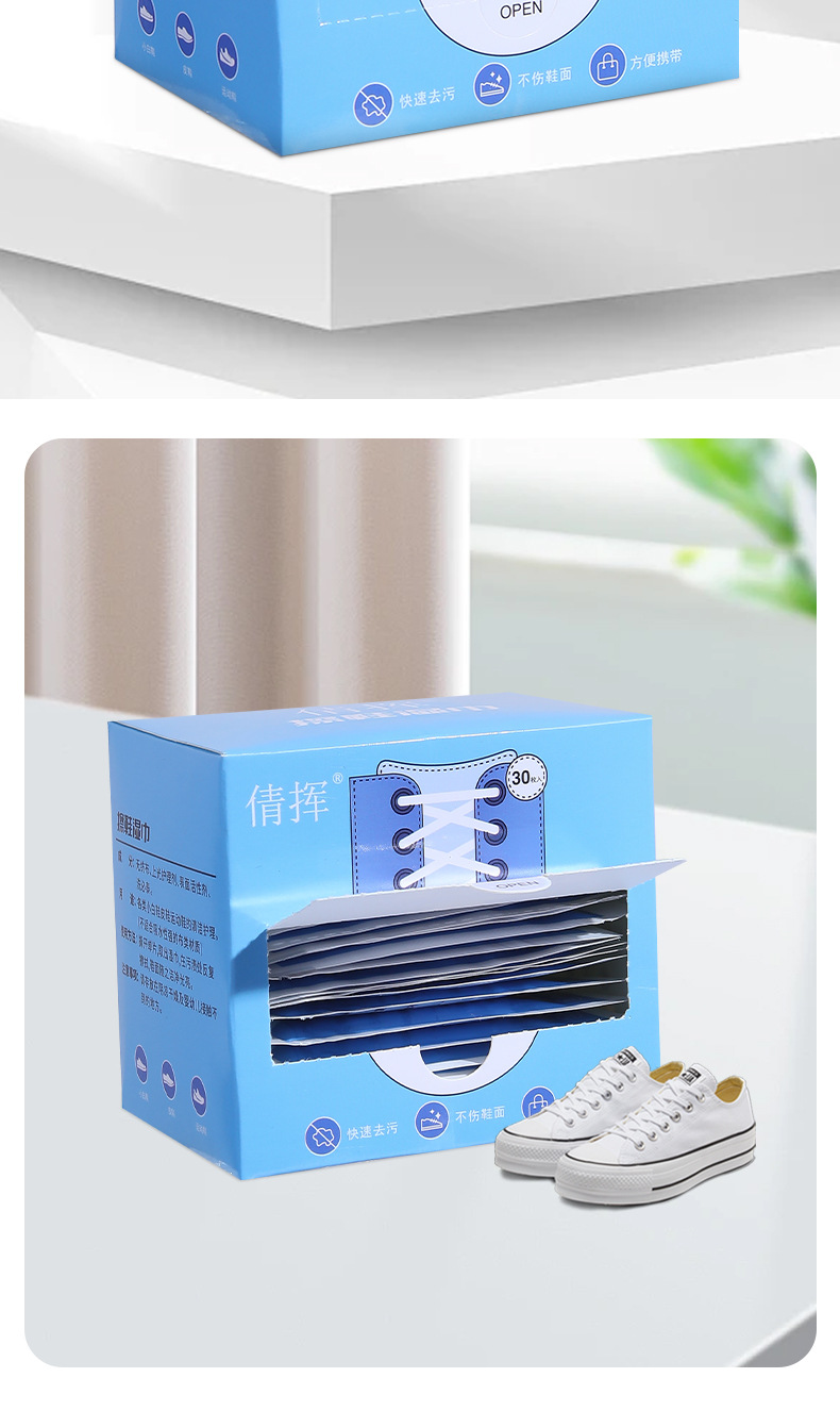 小白鞋清洁湿巾一次性盒装去污增白擦鞋巾运动鞋便携批发抖音网红