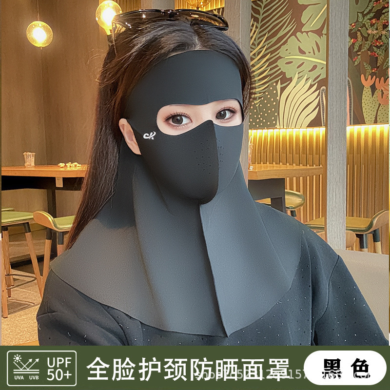 夏季冰丝防晒面罩女防紫外线户外骑行遮阳透气防晒面罩全脸护后脖