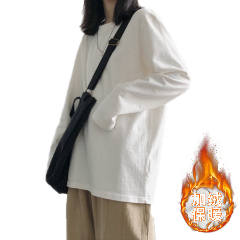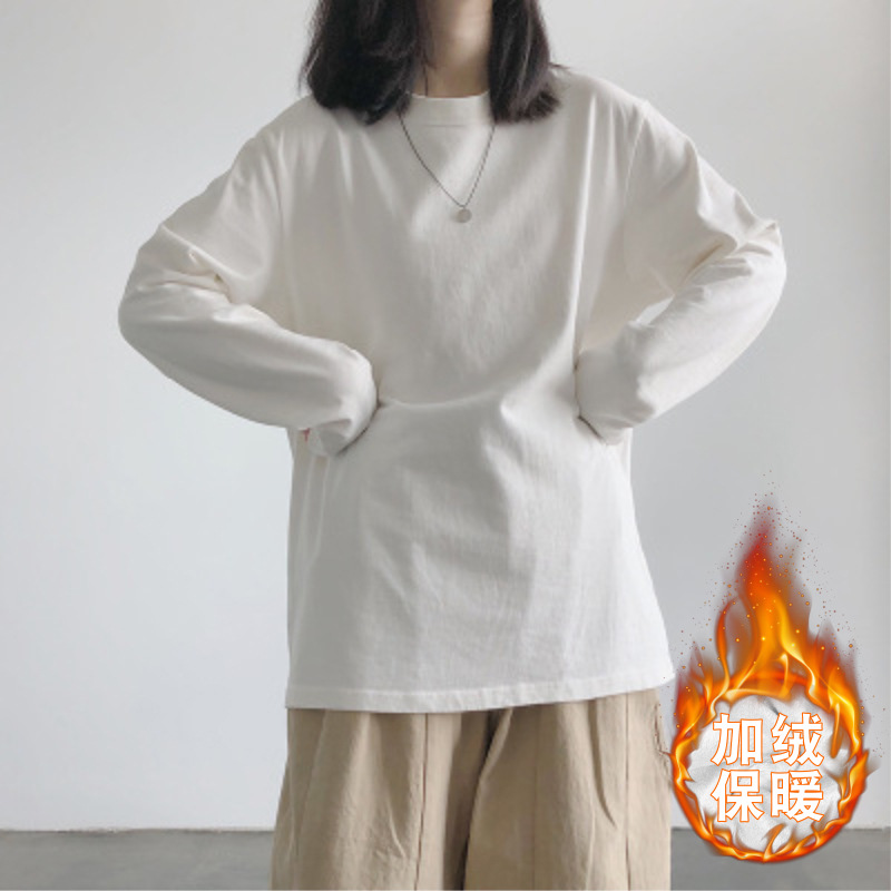 加绒长袖T恤女2022秋冬新款白色学生内搭保暖打底衫韩版上衣服女