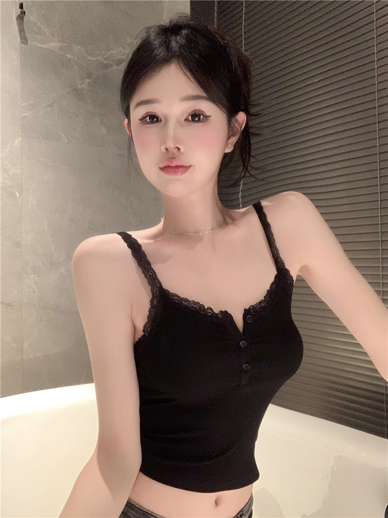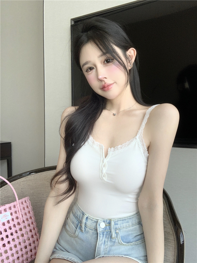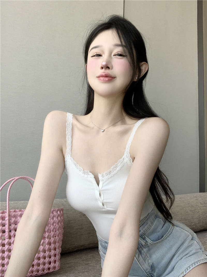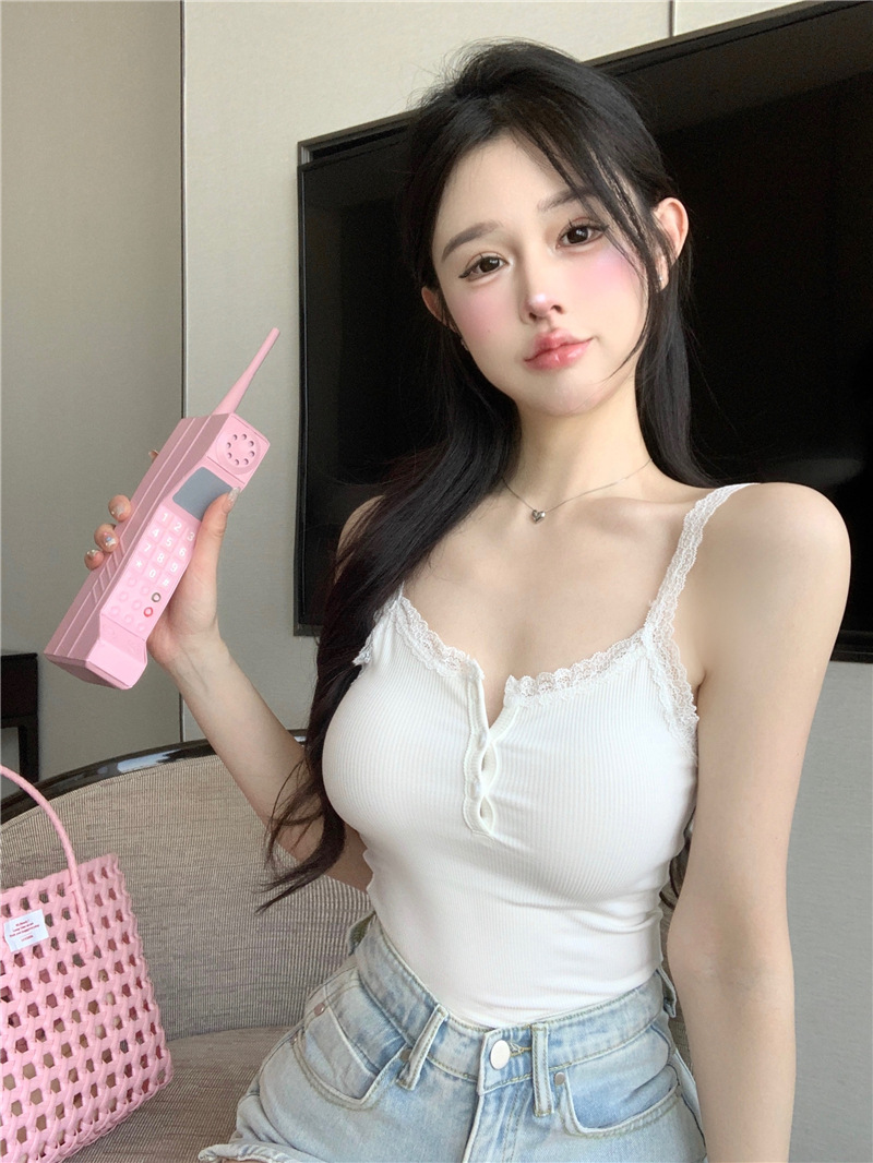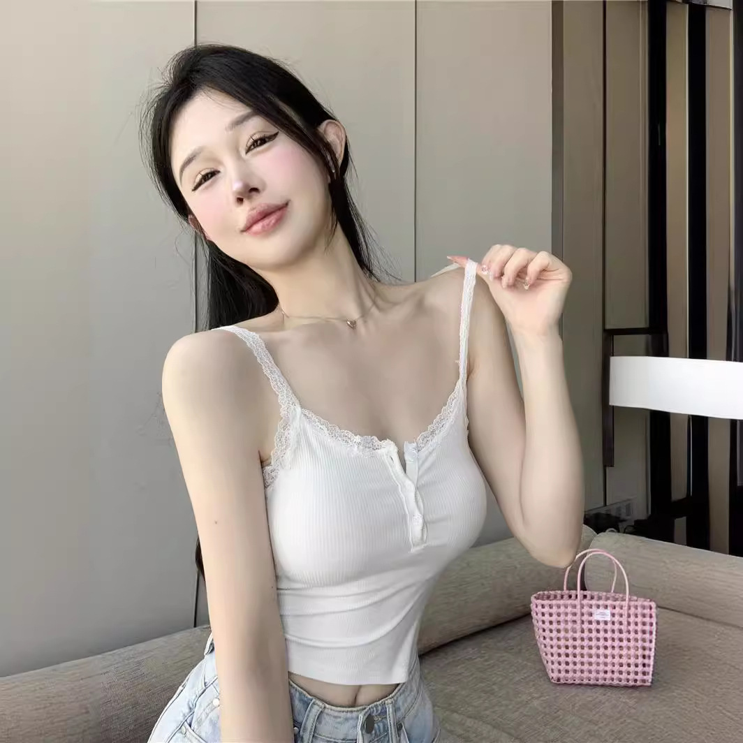 纯欲风白色吊带背心女2024夏季蕾丝花边修身显瘦性感内搭短款上衣