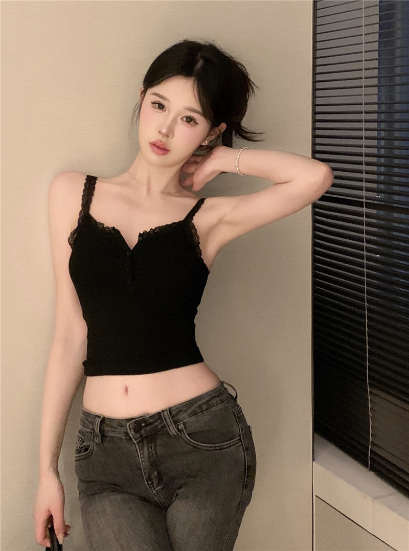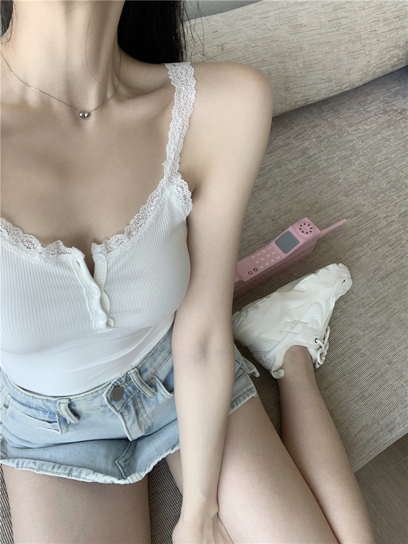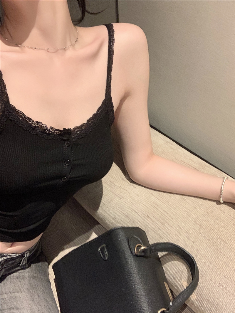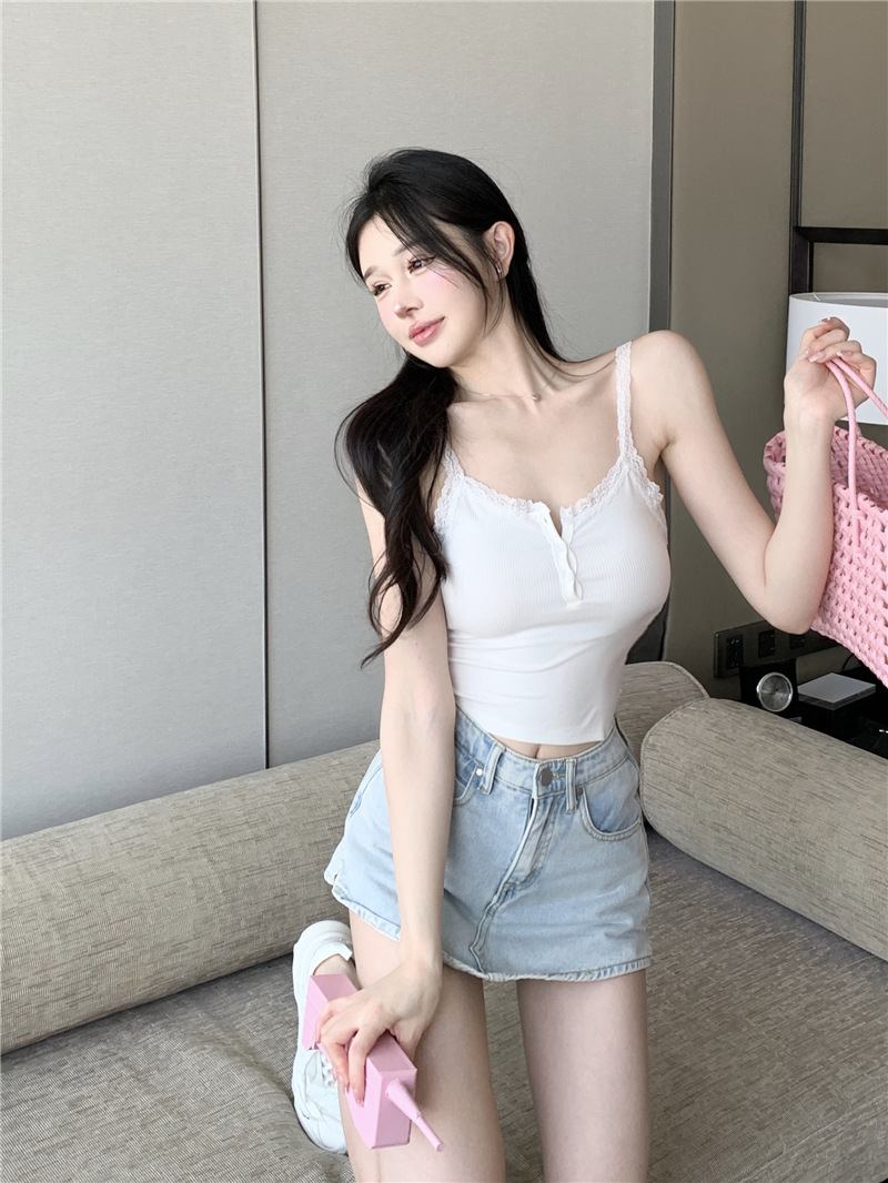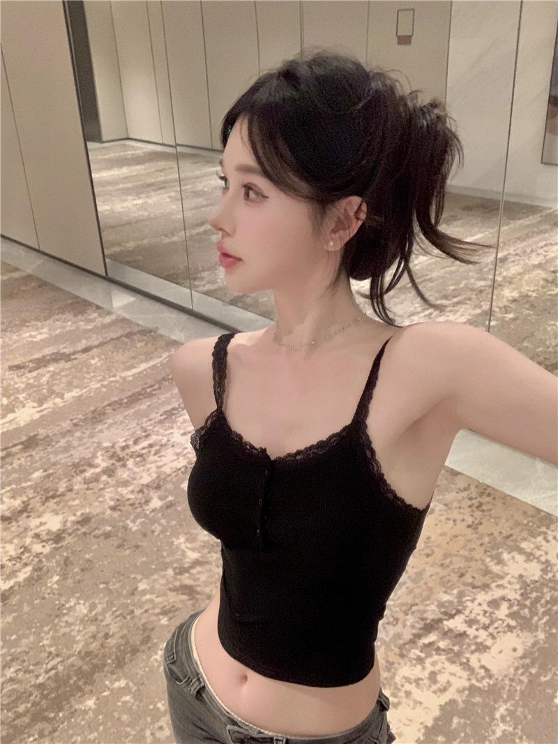 纯欲风白色吊带背心女2024夏季蕾丝花边修身显瘦性感内搭短款上衣
