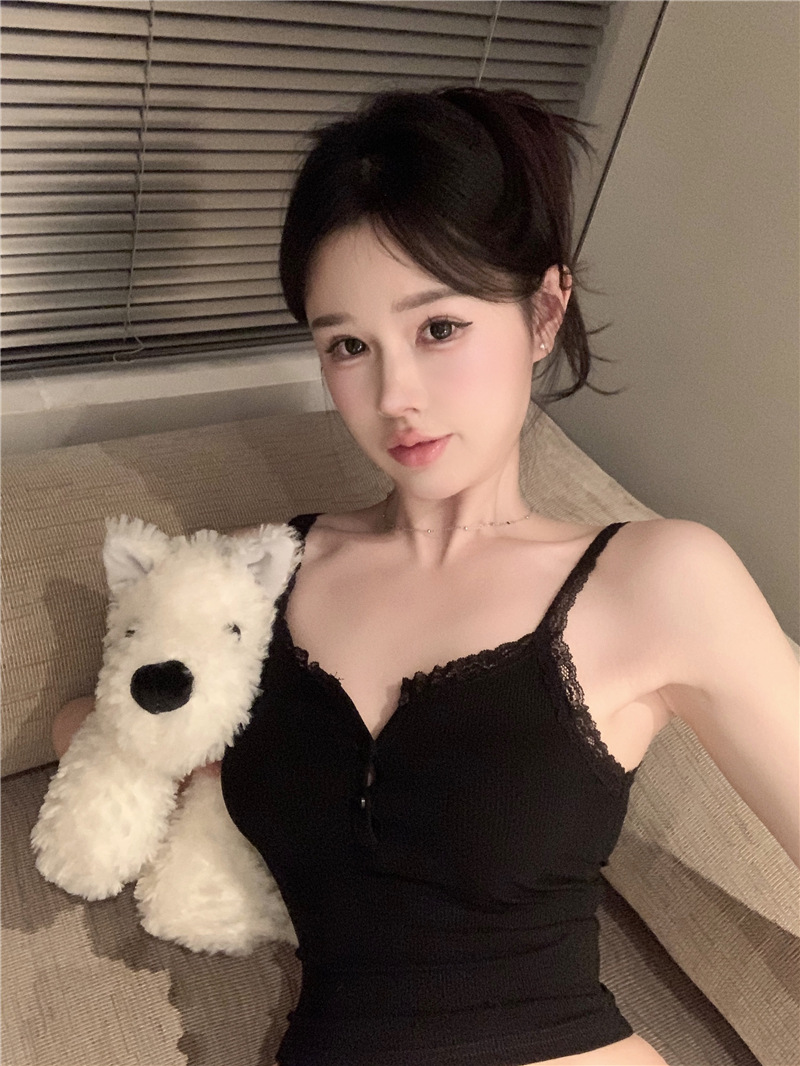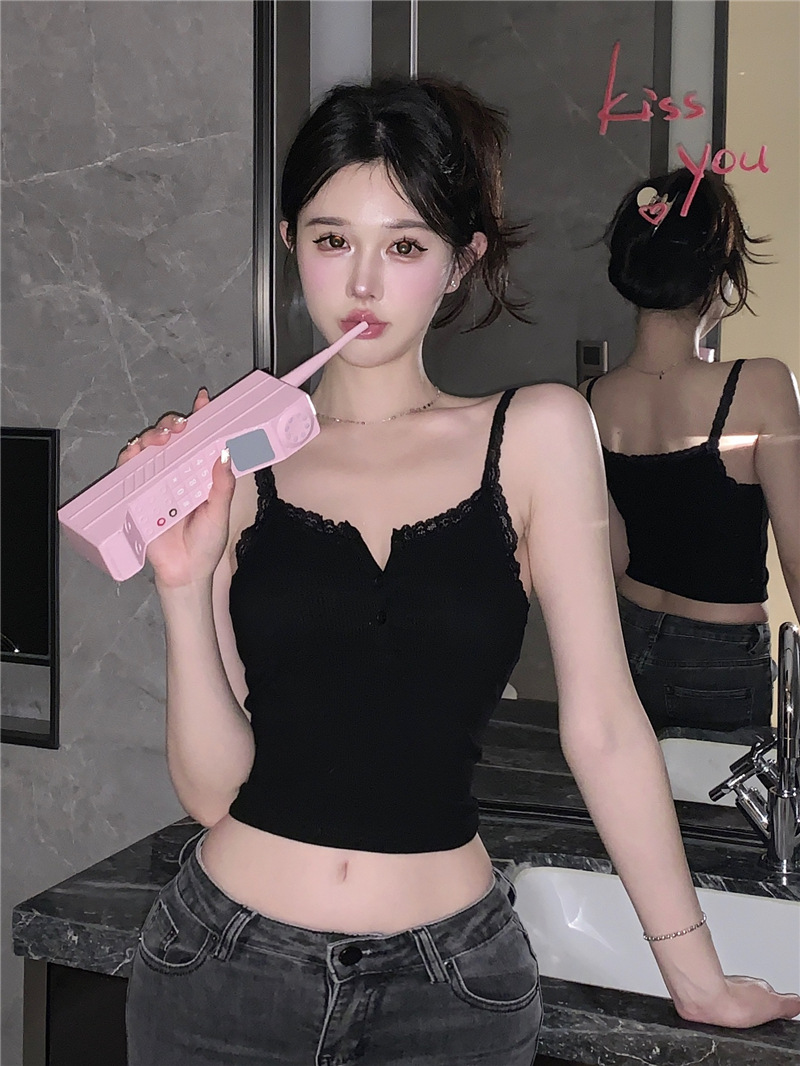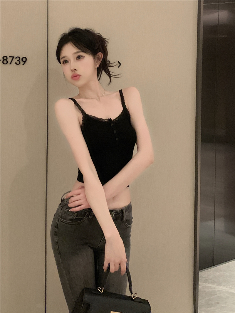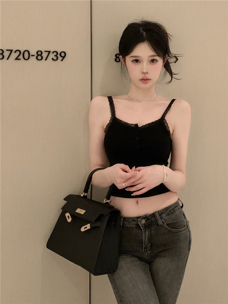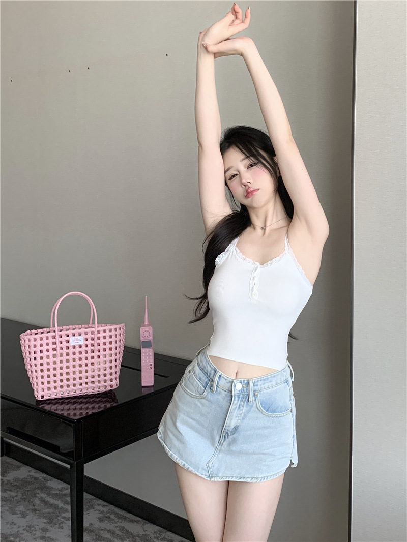 纯欲风白色吊带背心女2024夏季蕾丝花边修身显瘦性感内搭短款上衣