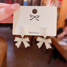 S925银针超仙气质套装花朵耳环女小清新简约滴油珍珠耳钉网红耳饰