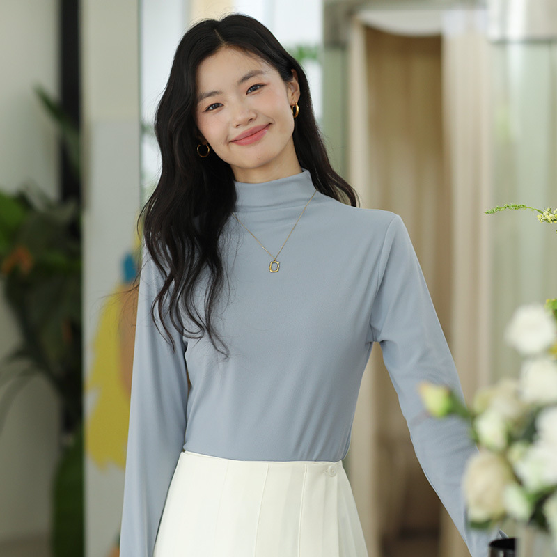 秋冬季膨体绒打底衫女内搭圆领上衣长袖T恤修身半高领休闲针织衫