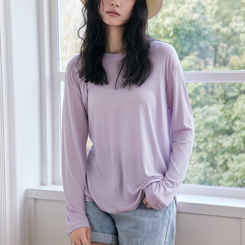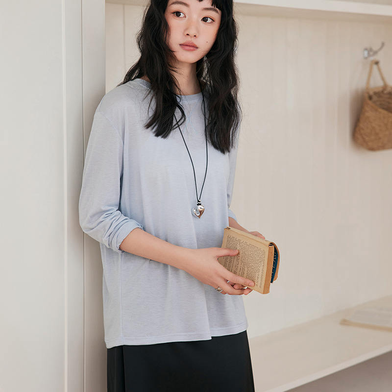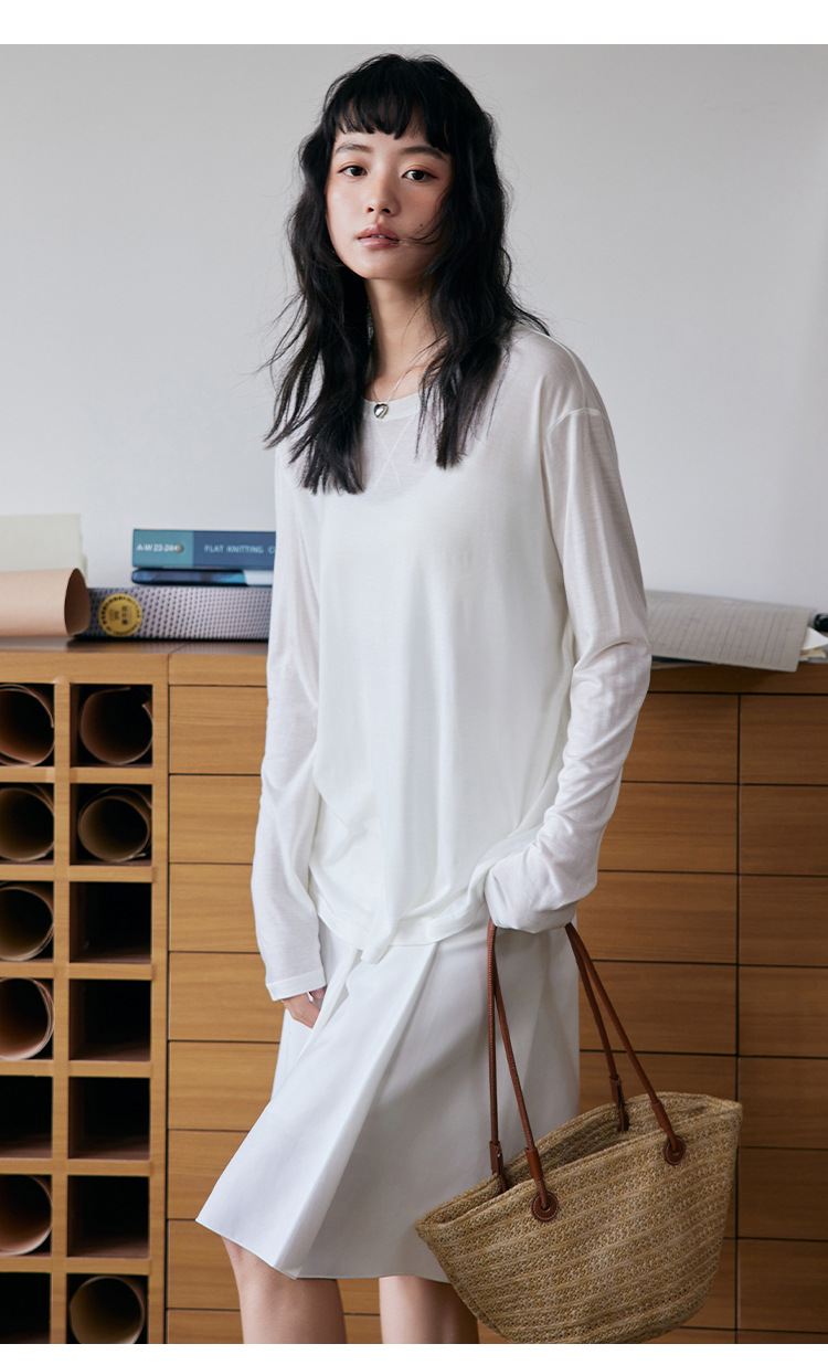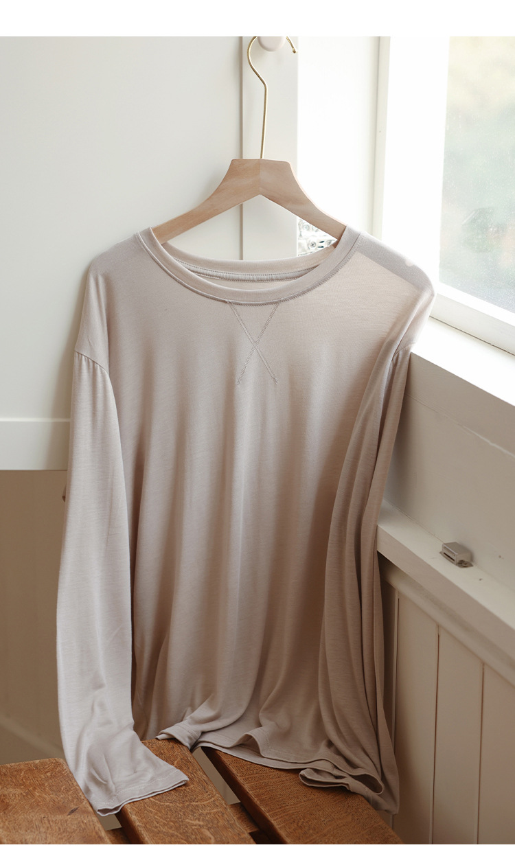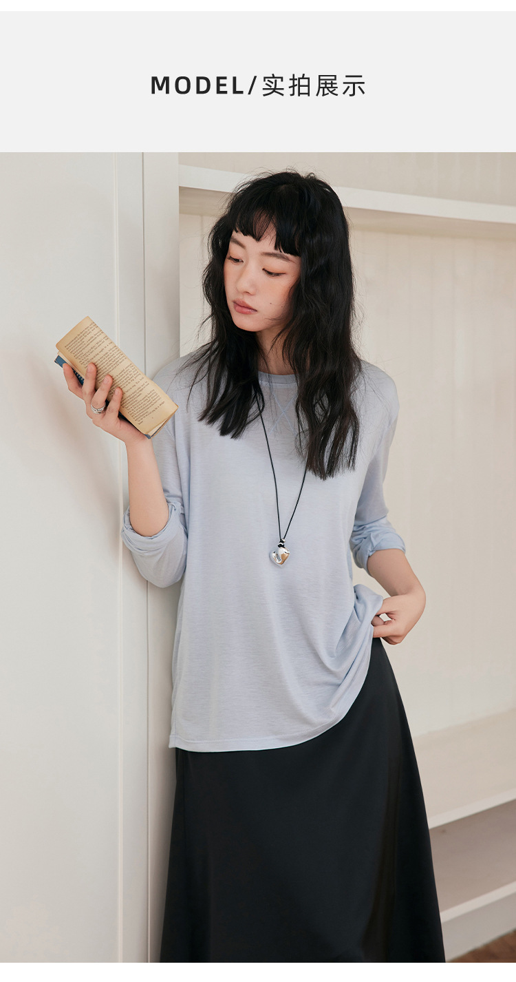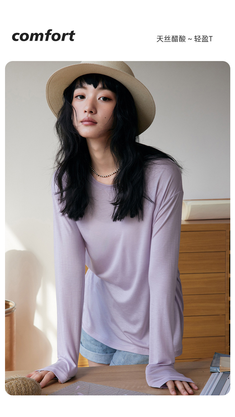 天丝醋酸莱赛尔打底衫女2025春夏内搭圆领罩衫宽松绵羊毛长袖上衣