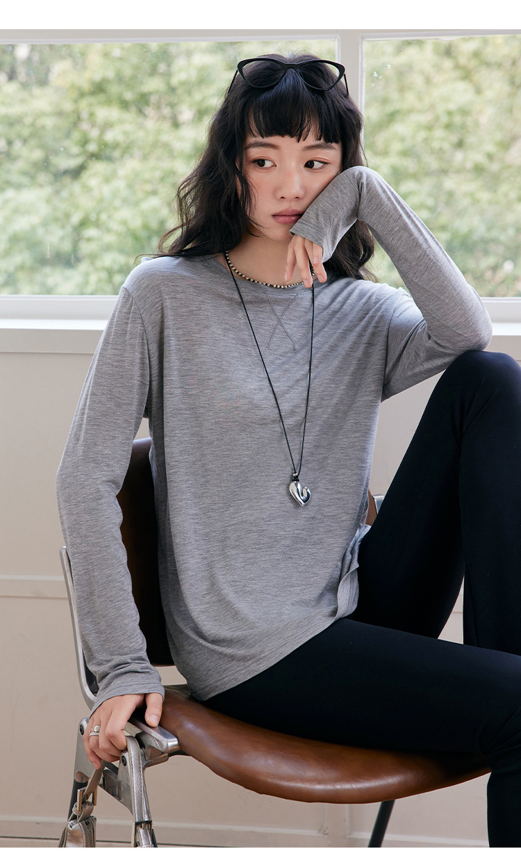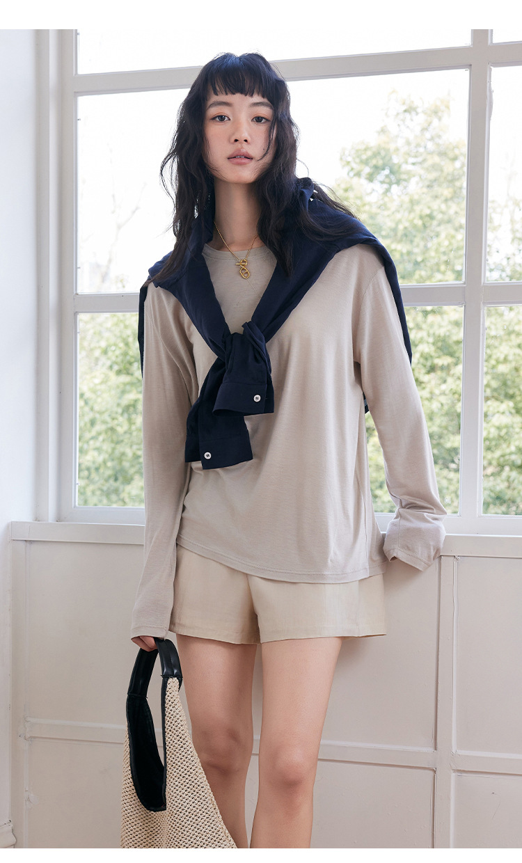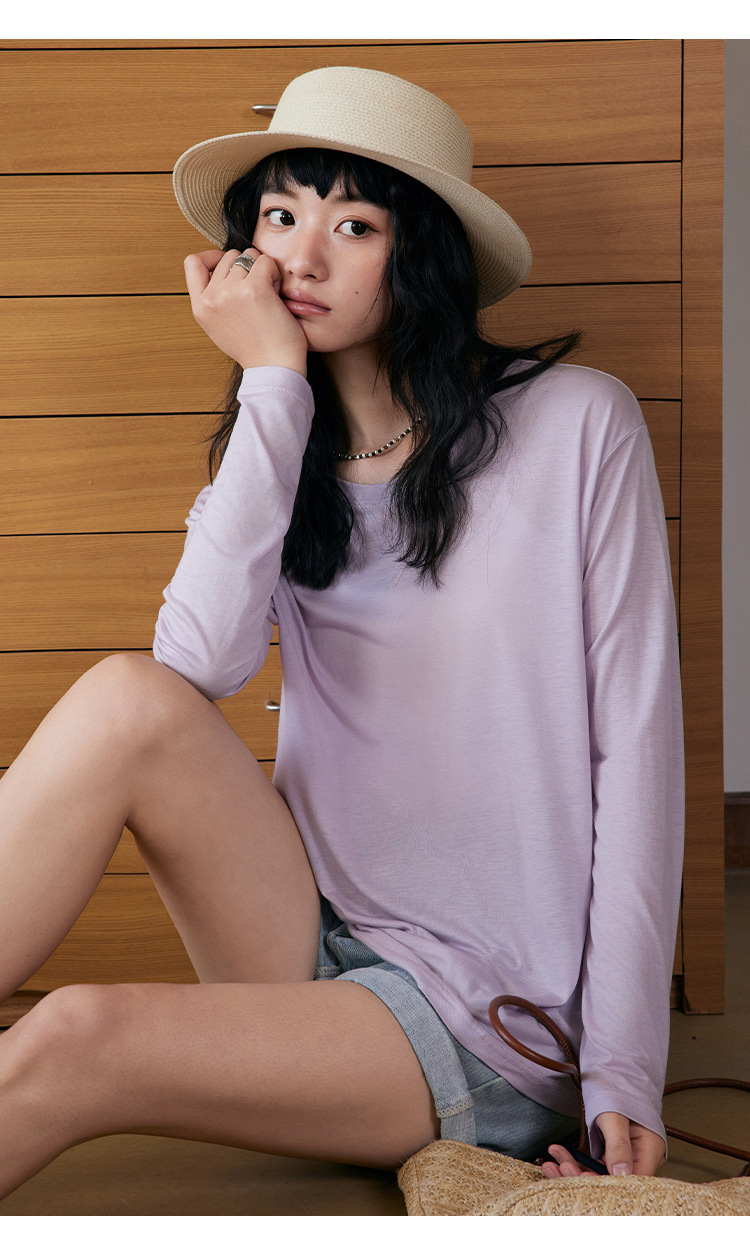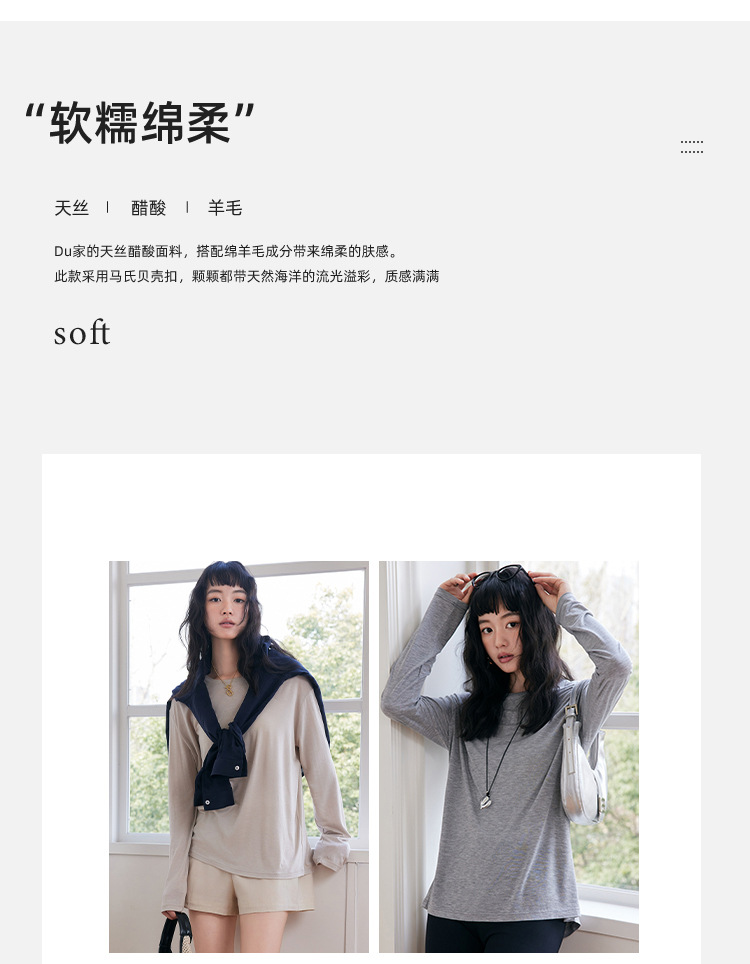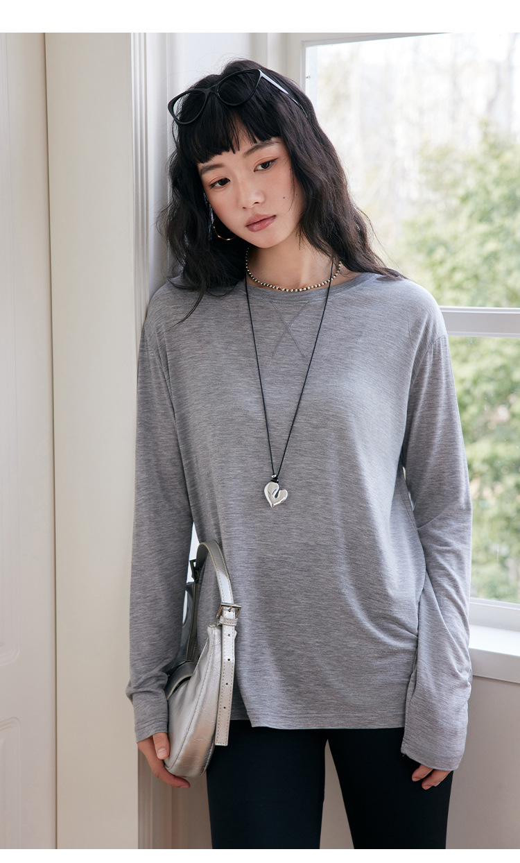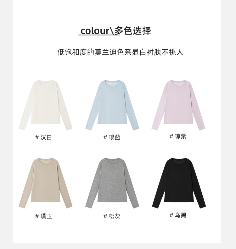 天丝醋酸莱赛尔打底衫女2025春夏内搭圆领罩衫宽松绵羊毛长袖上衣