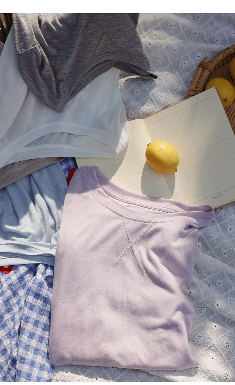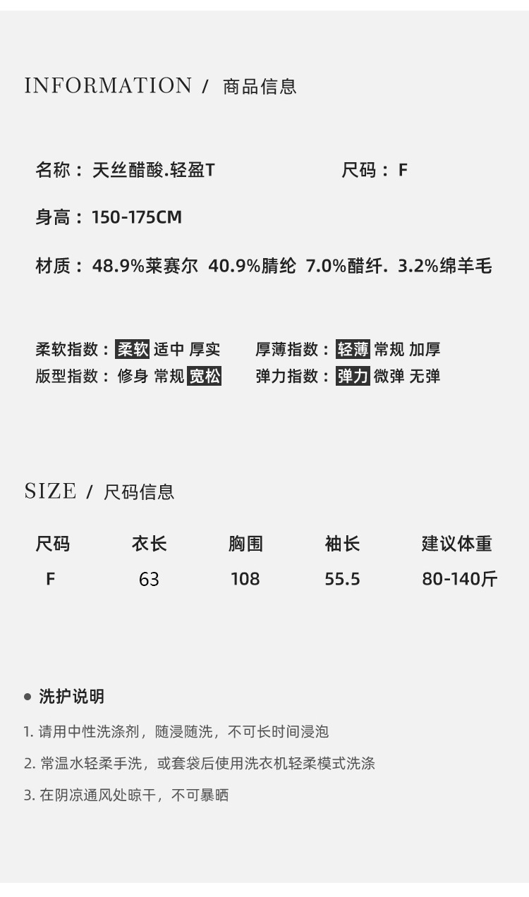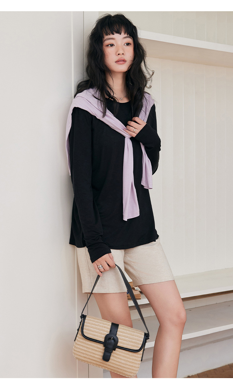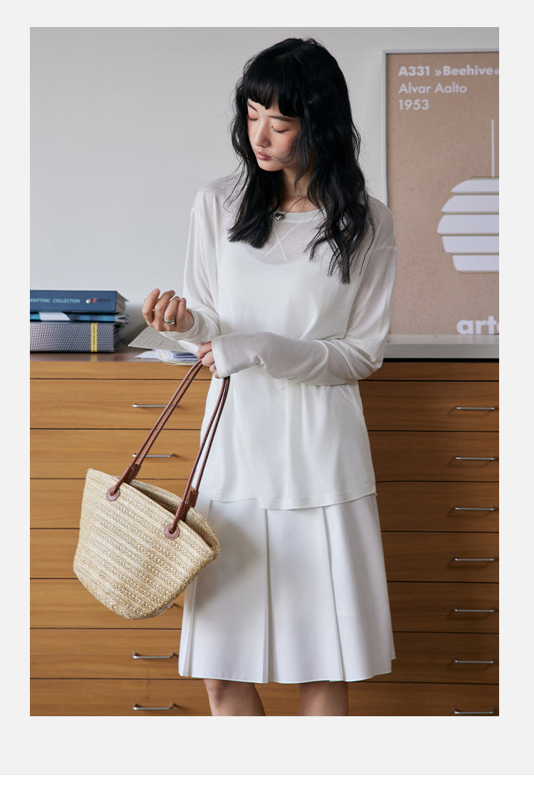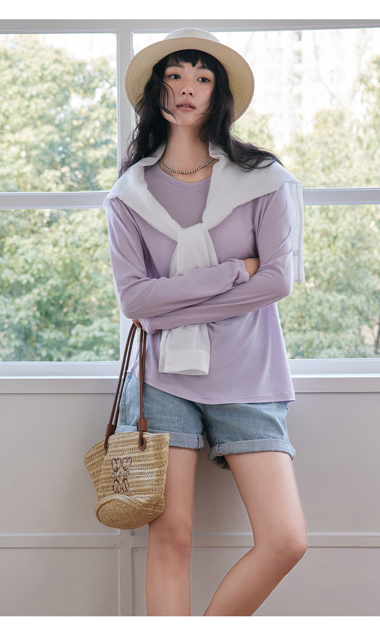天丝醋酸莱赛尔打底衫女2025春夏内搭圆领罩衫宽松绵羊毛长袖上衣