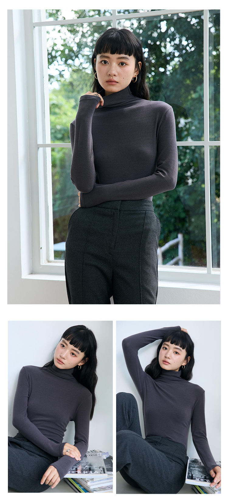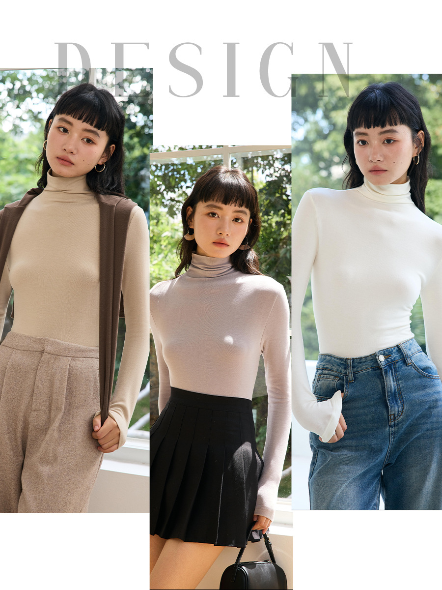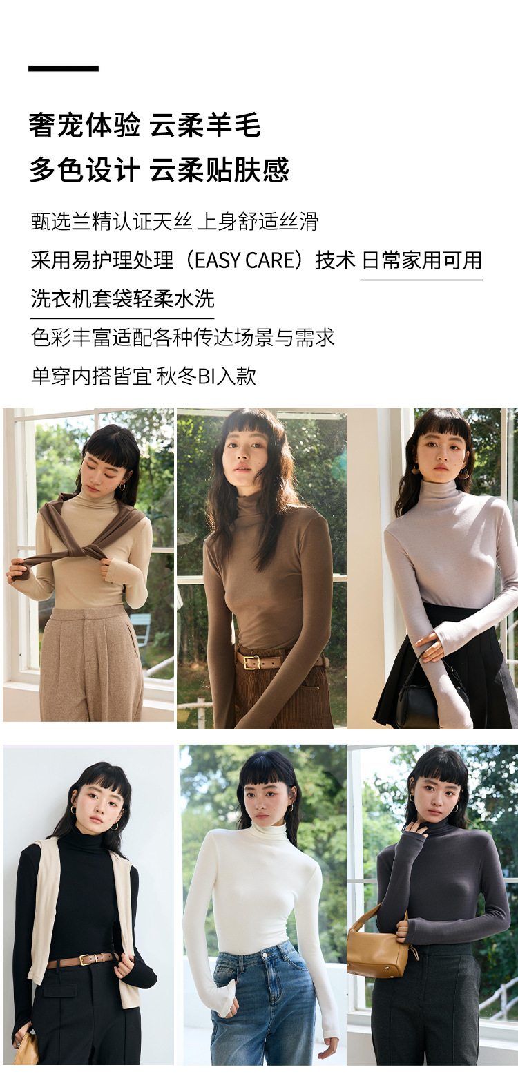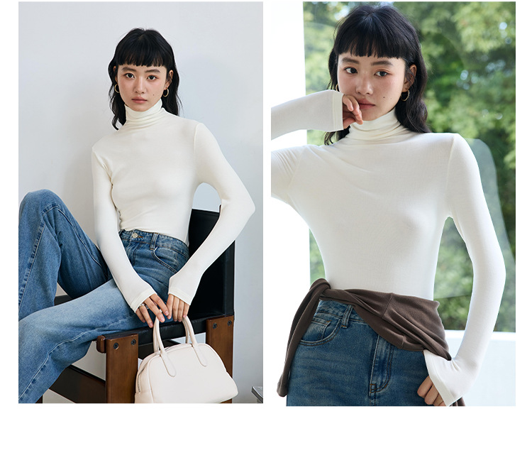 莱赛尔高领打底衫女秋冬兰精天丝显瘦百搭针织衫羊毛保暖长袖上衣