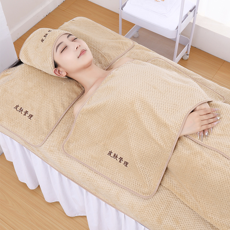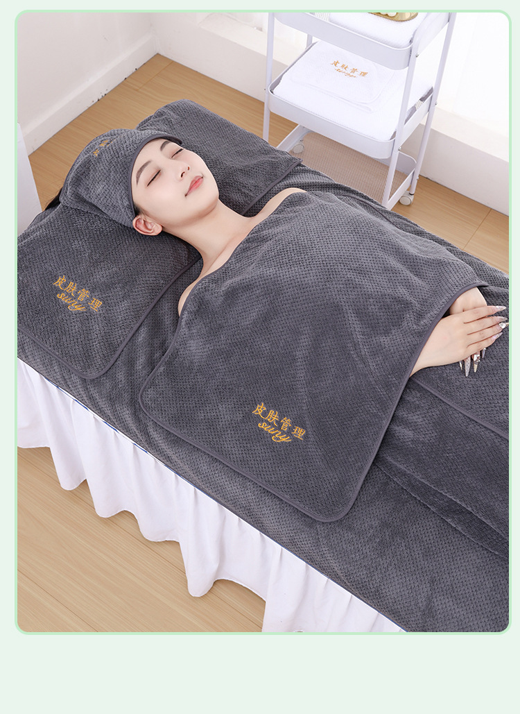 珊瑚绒美容院毛巾批发logo菠萝格魔术贴包头巾铺床浴巾浴裙套装