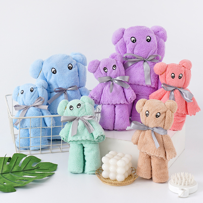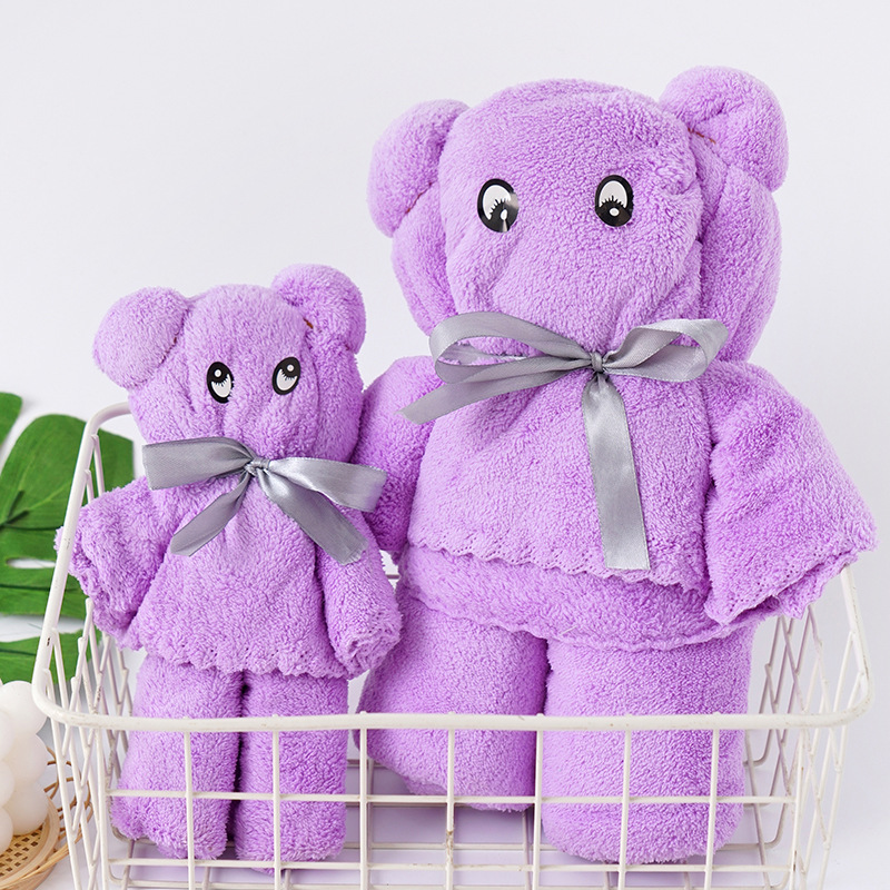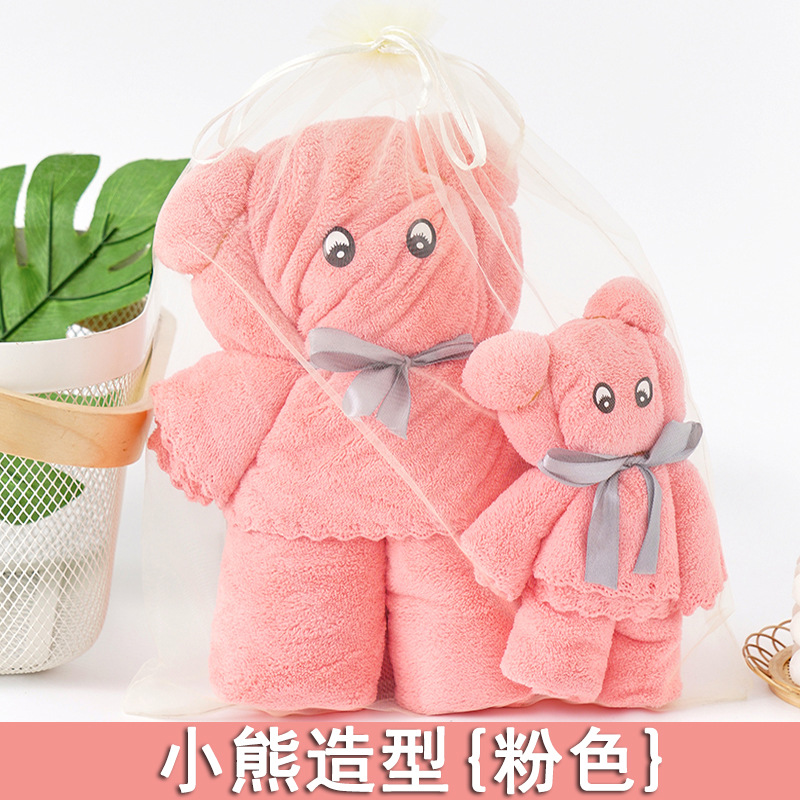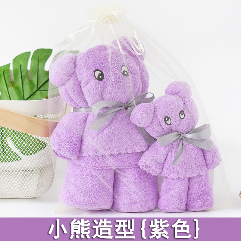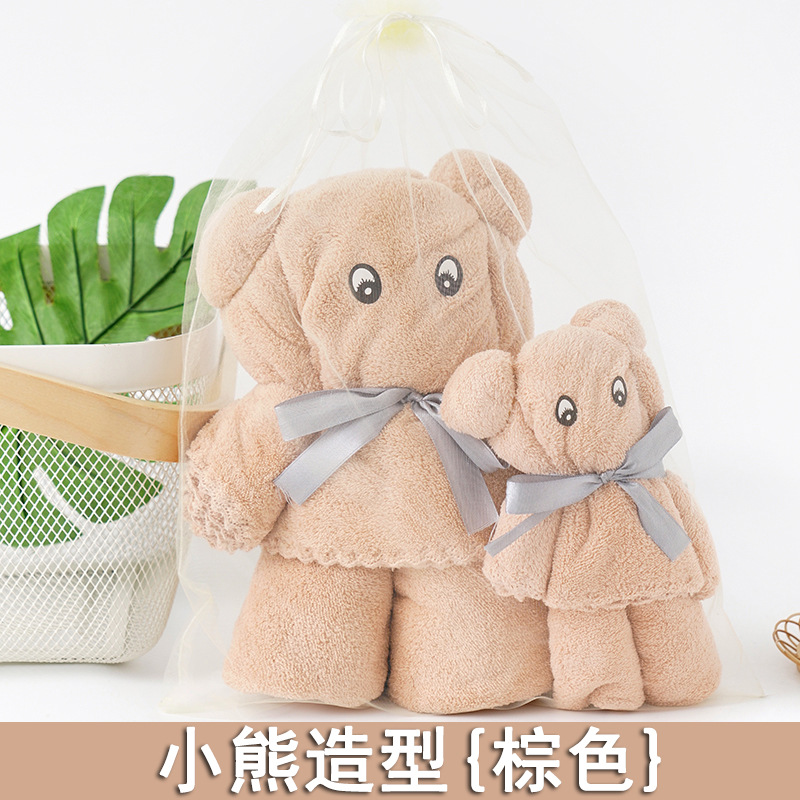 小熊造型毛巾珊瑚绒加厚吸水创意礼品套装珊瑚绒子母巾伴手礼套装