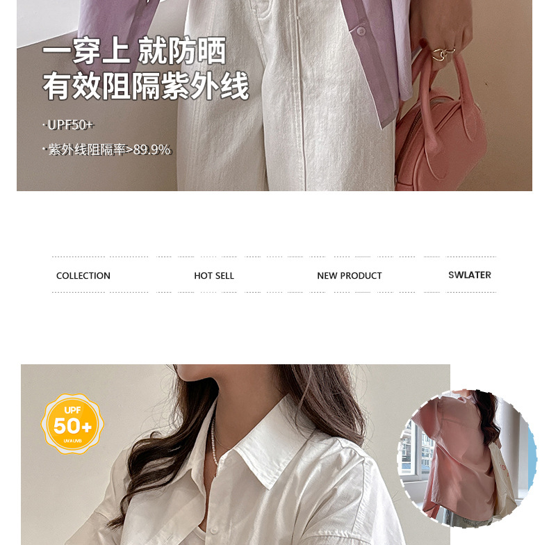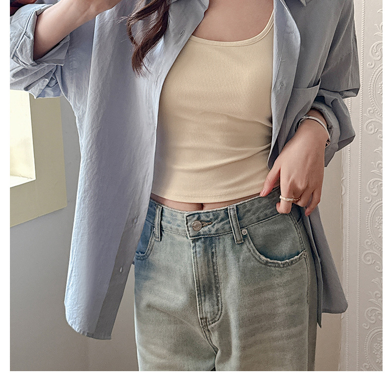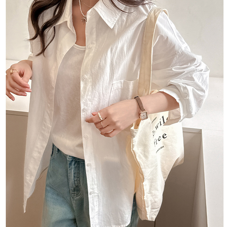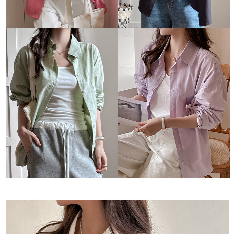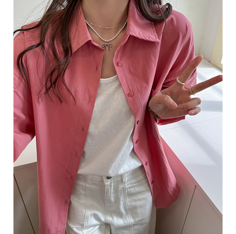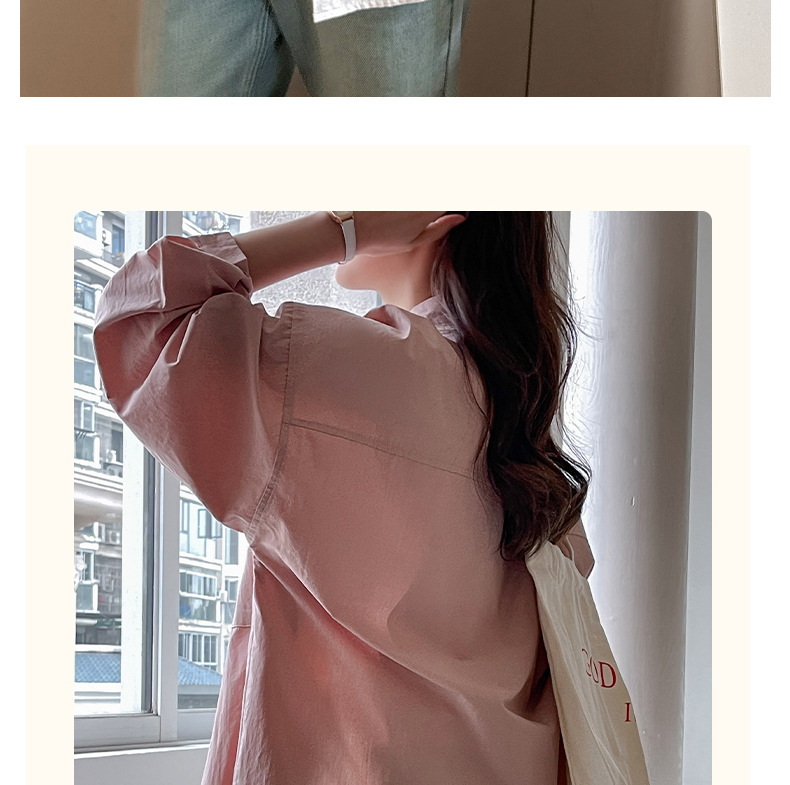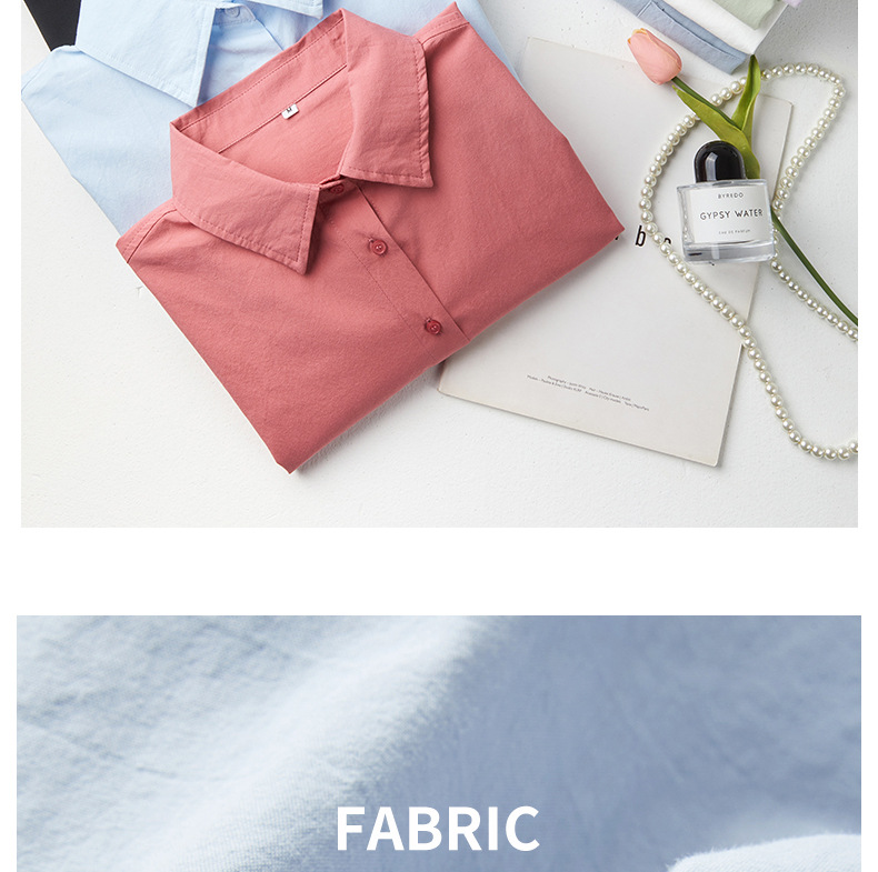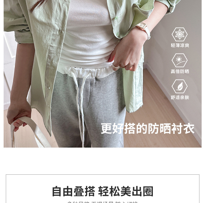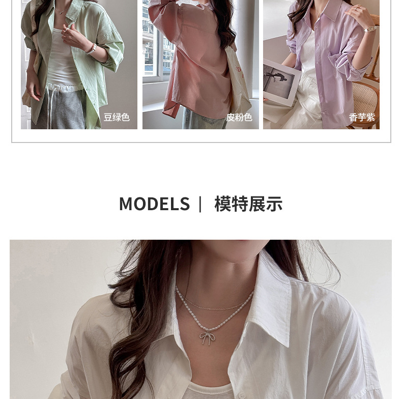 防晒100%砂洗纯棉长袖女式夏季衬衫蓝色高级感上衣薄外套宽松开衫