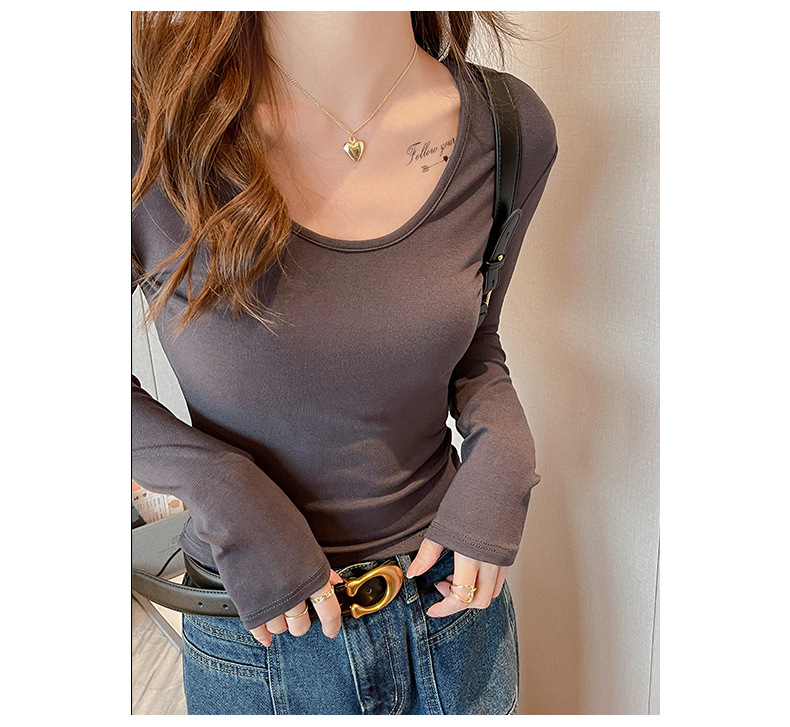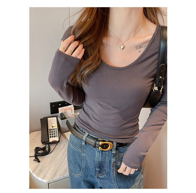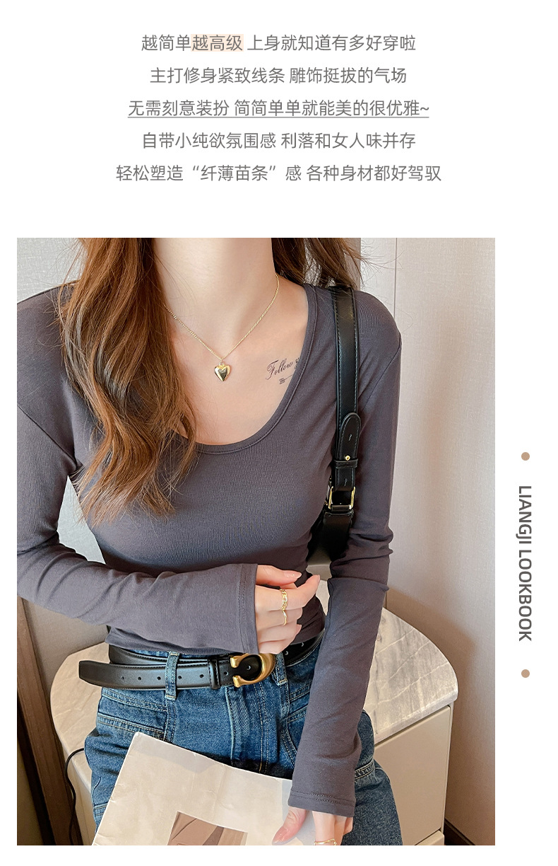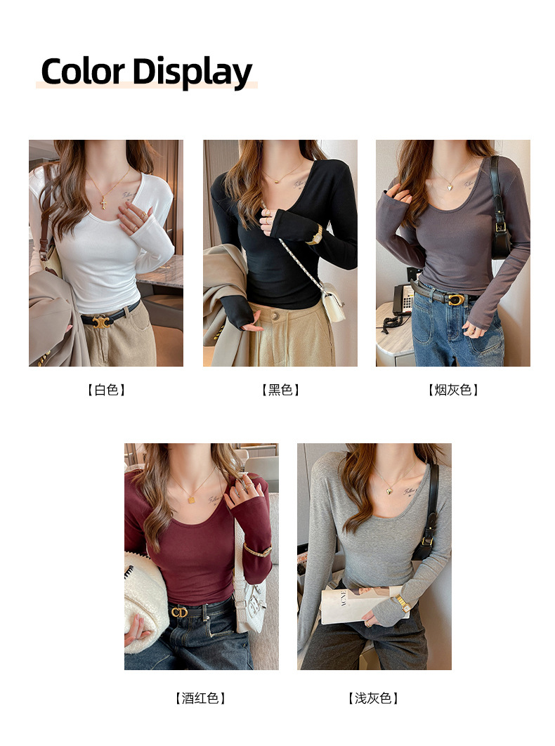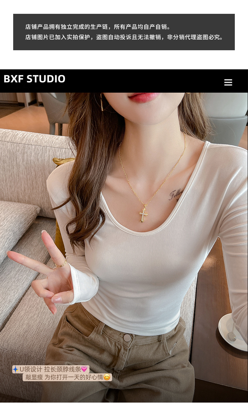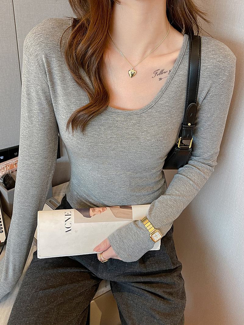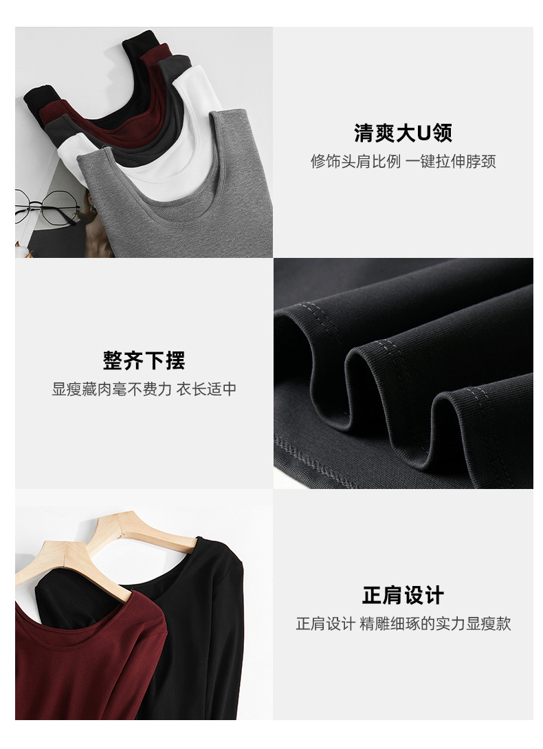 莫代尔正肩V领修身内搭打底衫女士紧身长袖春秋冬季可外穿t恤上衣