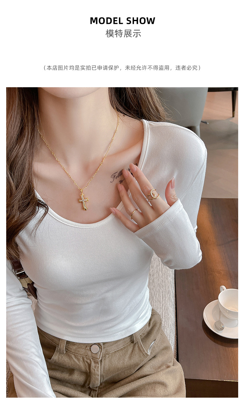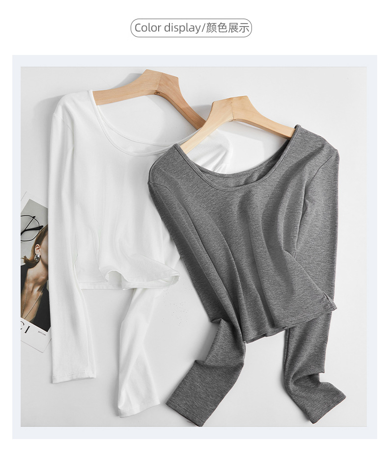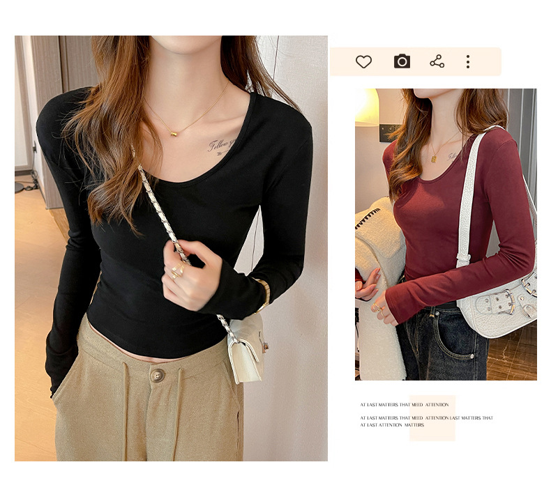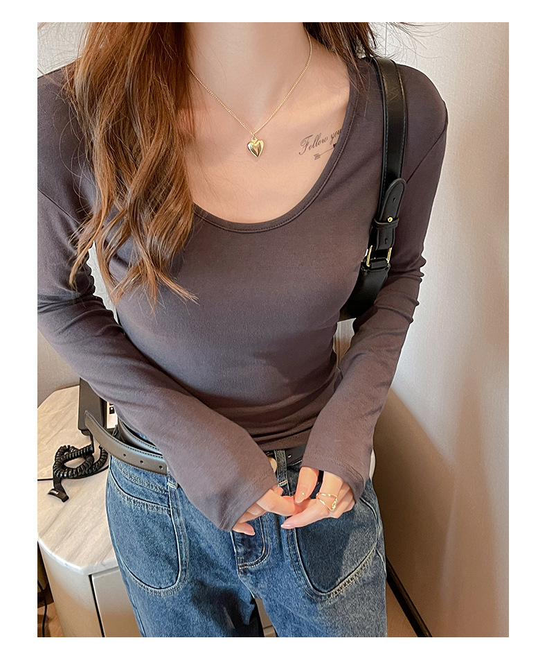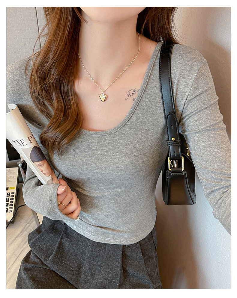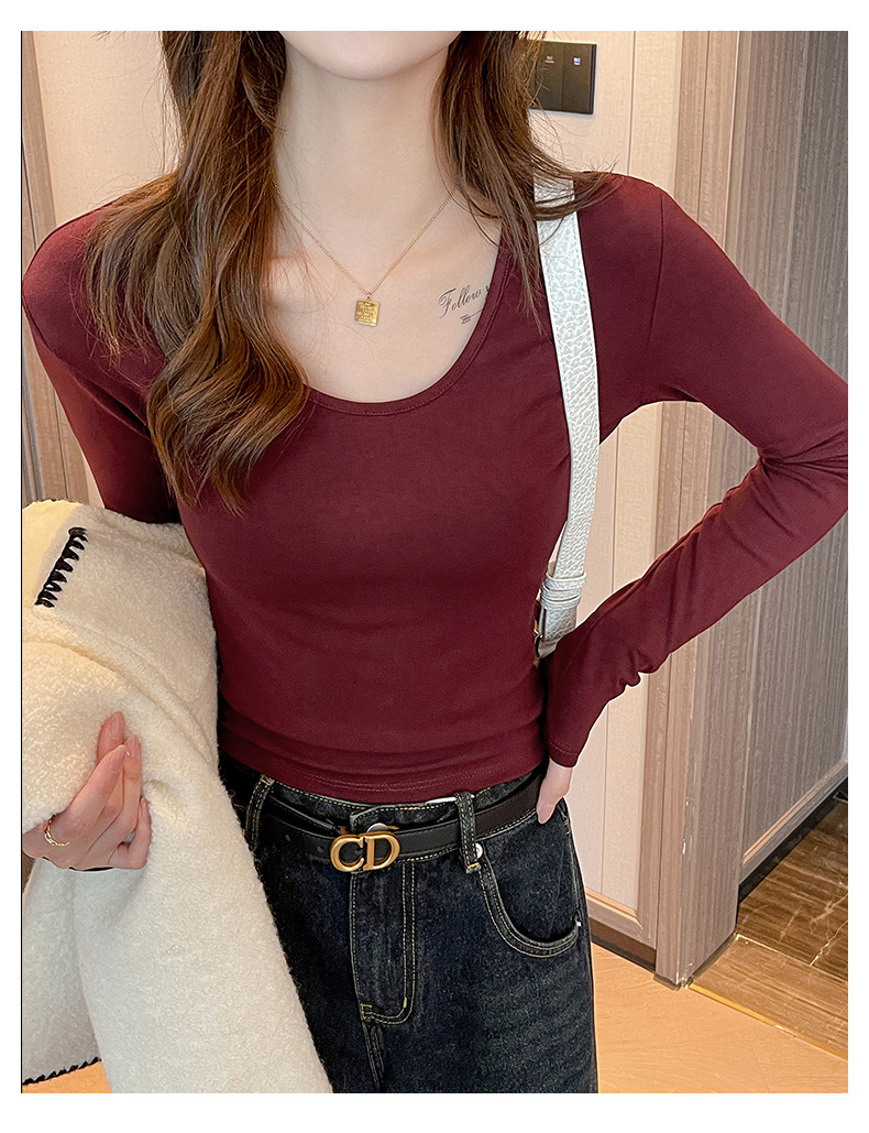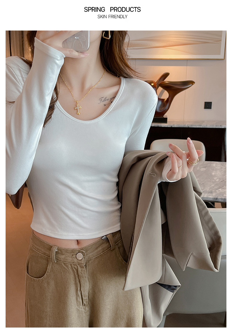 莫代尔正肩V领修身内搭打底衫女士紧身长袖春秋冬季可外穿t恤上衣