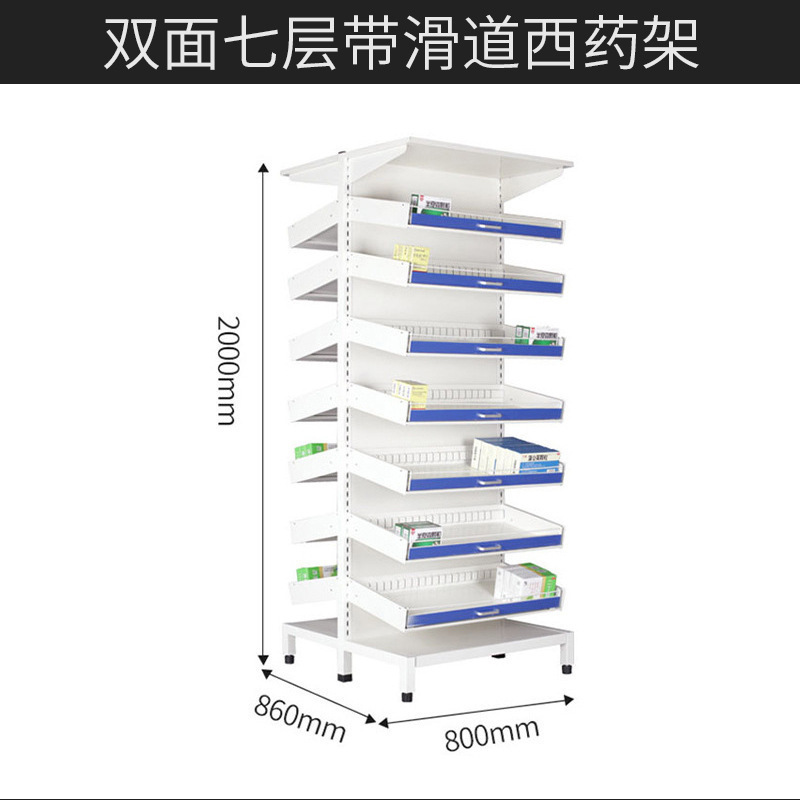 专供出口药房医院诊所钢制双面药盘架不锈钢旋转药架药品架