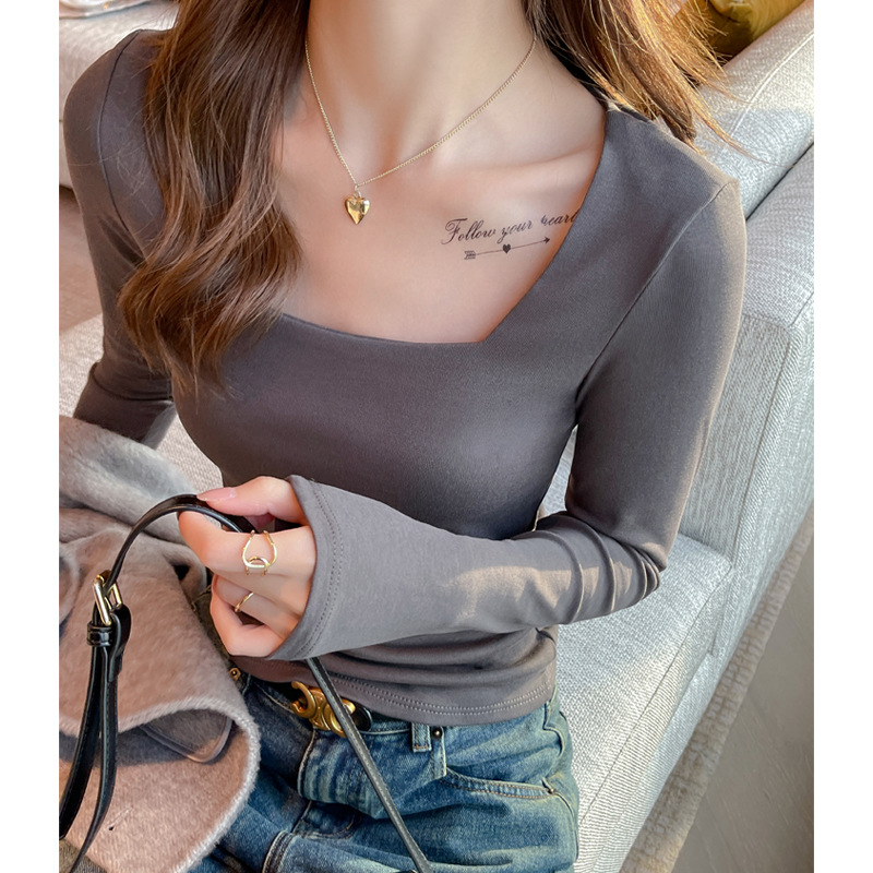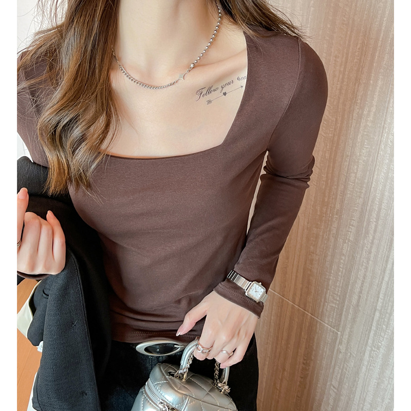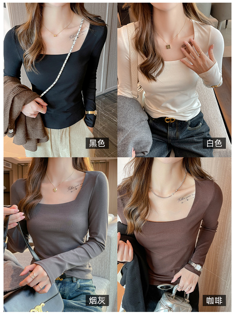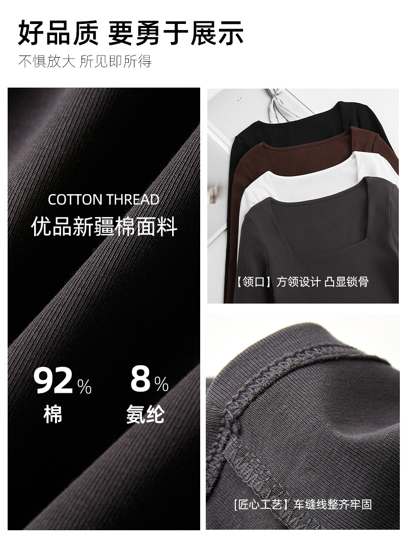 纯棉长袖t恤春秋季新款打底衫女士内搭修身方领高级感可外穿上衣