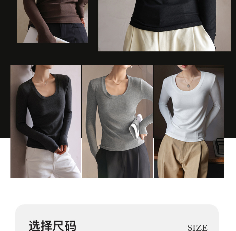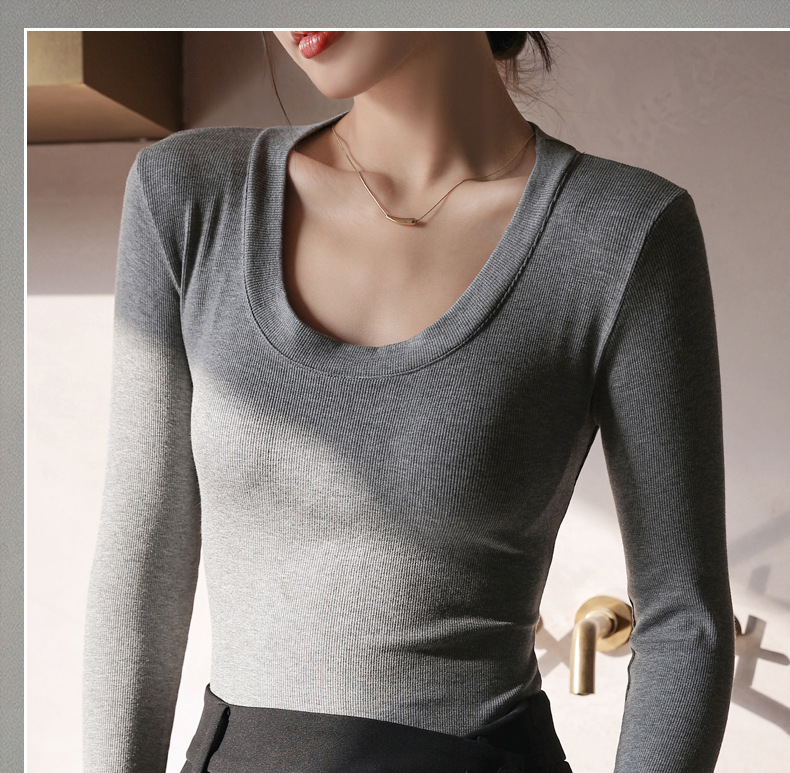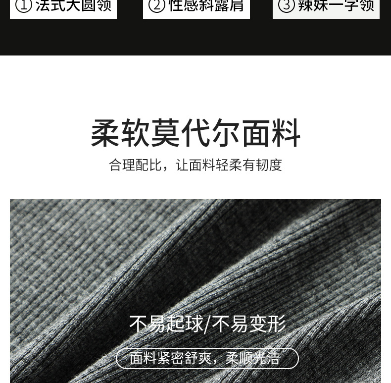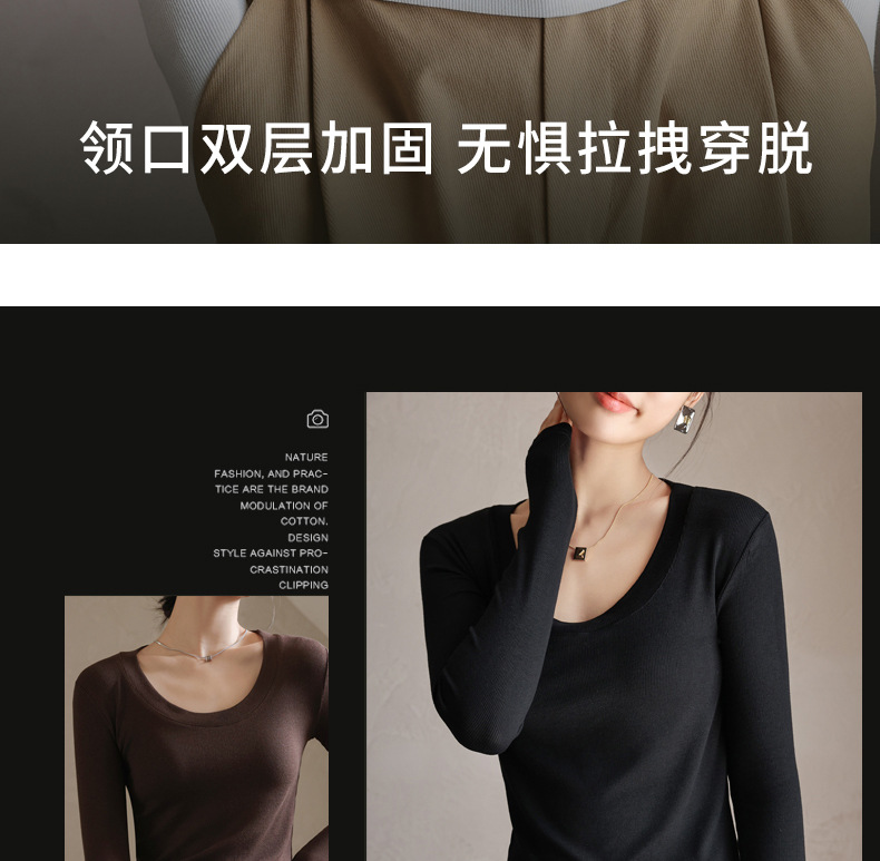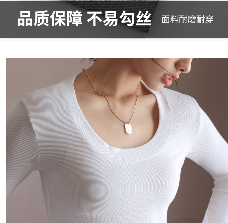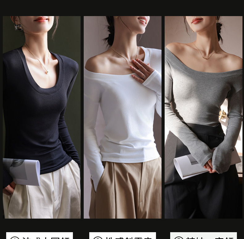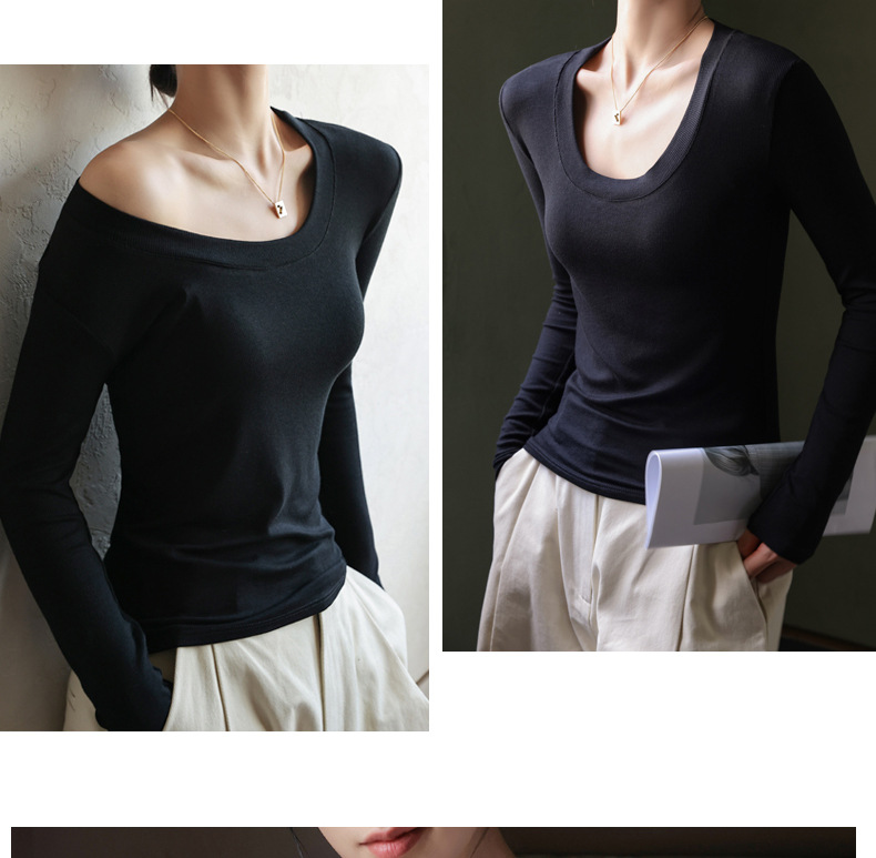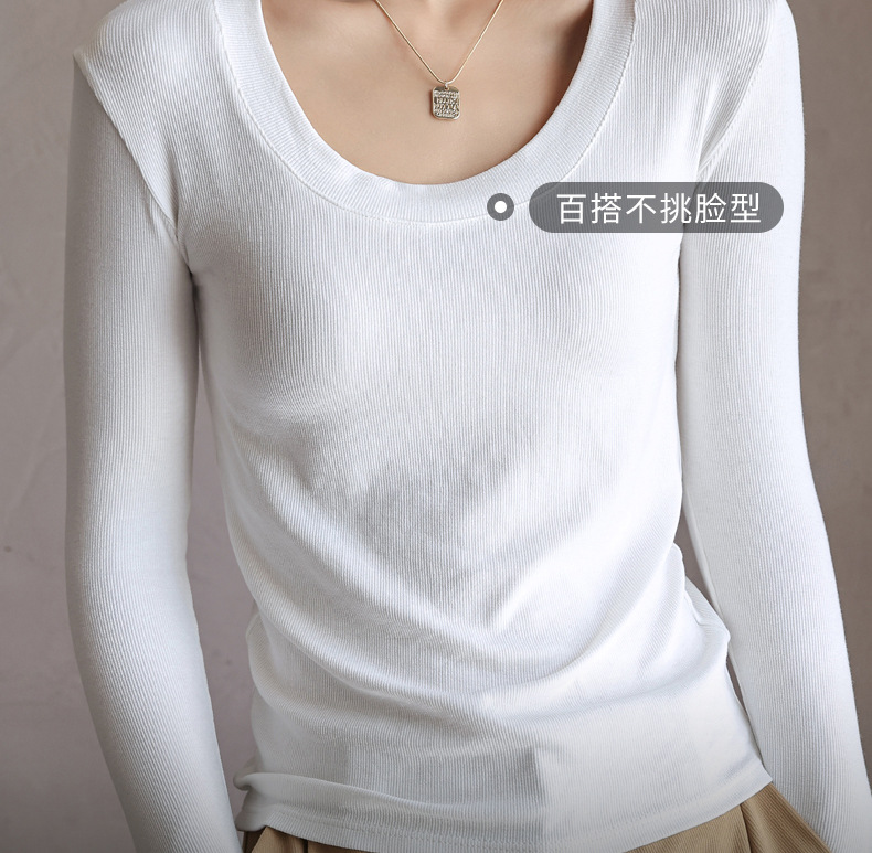 螺纹莫代尔纯色大圆领长袖打底衫女秋季显瘦修身内搭上衣正肩t恤